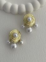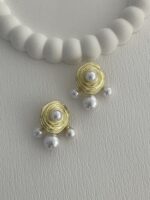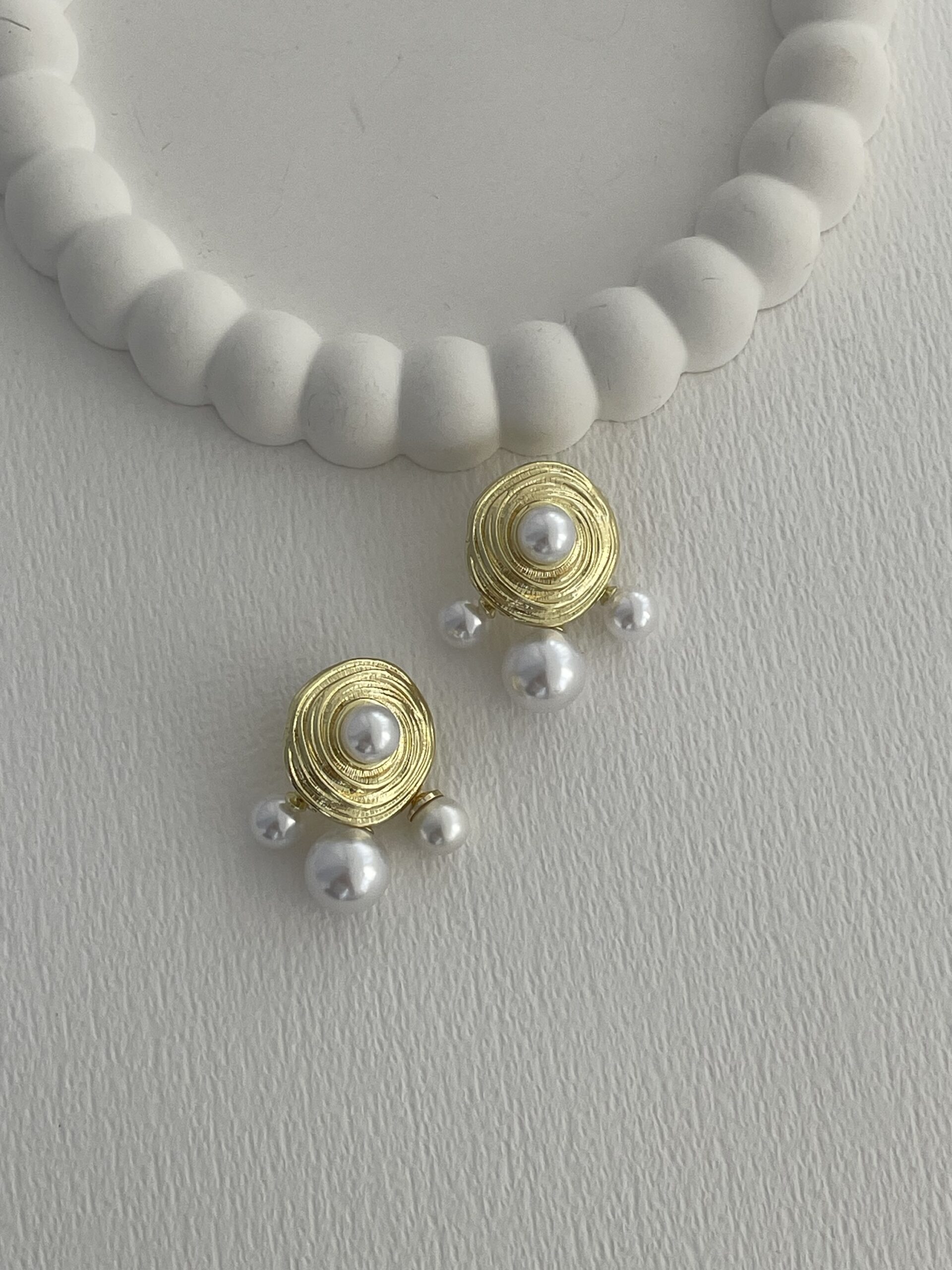 Özel Seri İnci Detay Yuvarlak Tasarım Gold Küpe