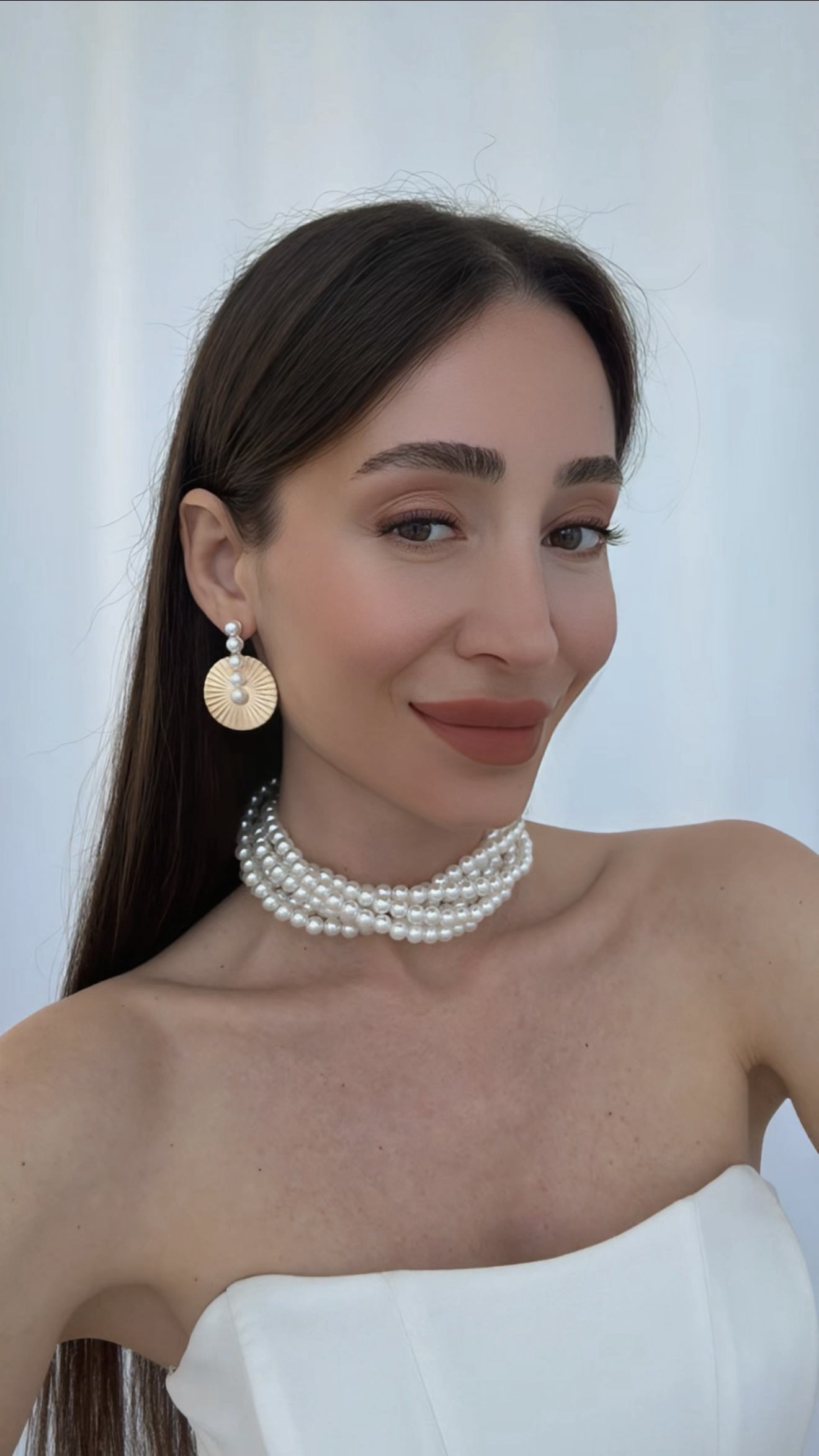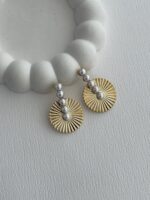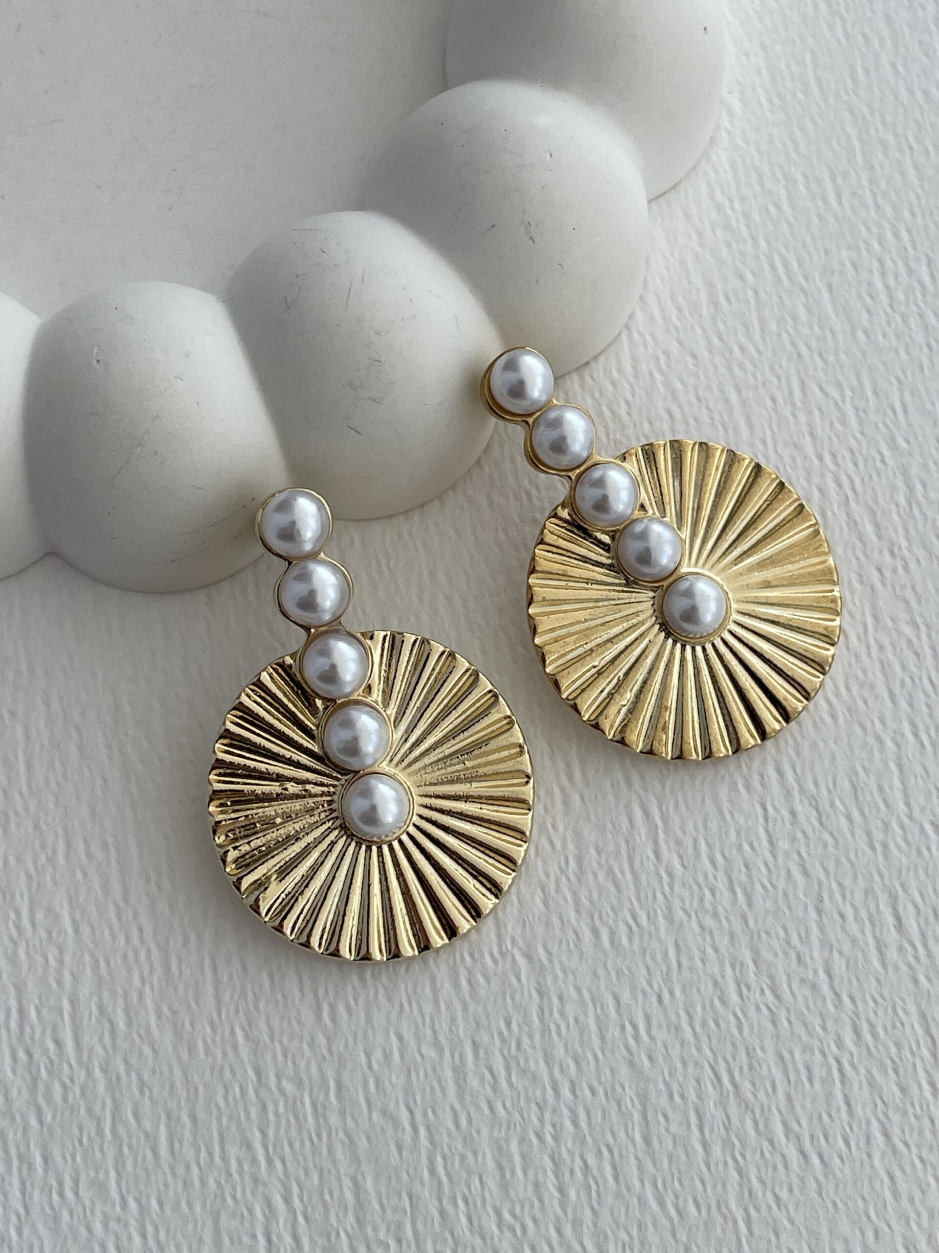 Özel Seri inci Detay Yuvarlak Tırtık Desen Gold Küpe