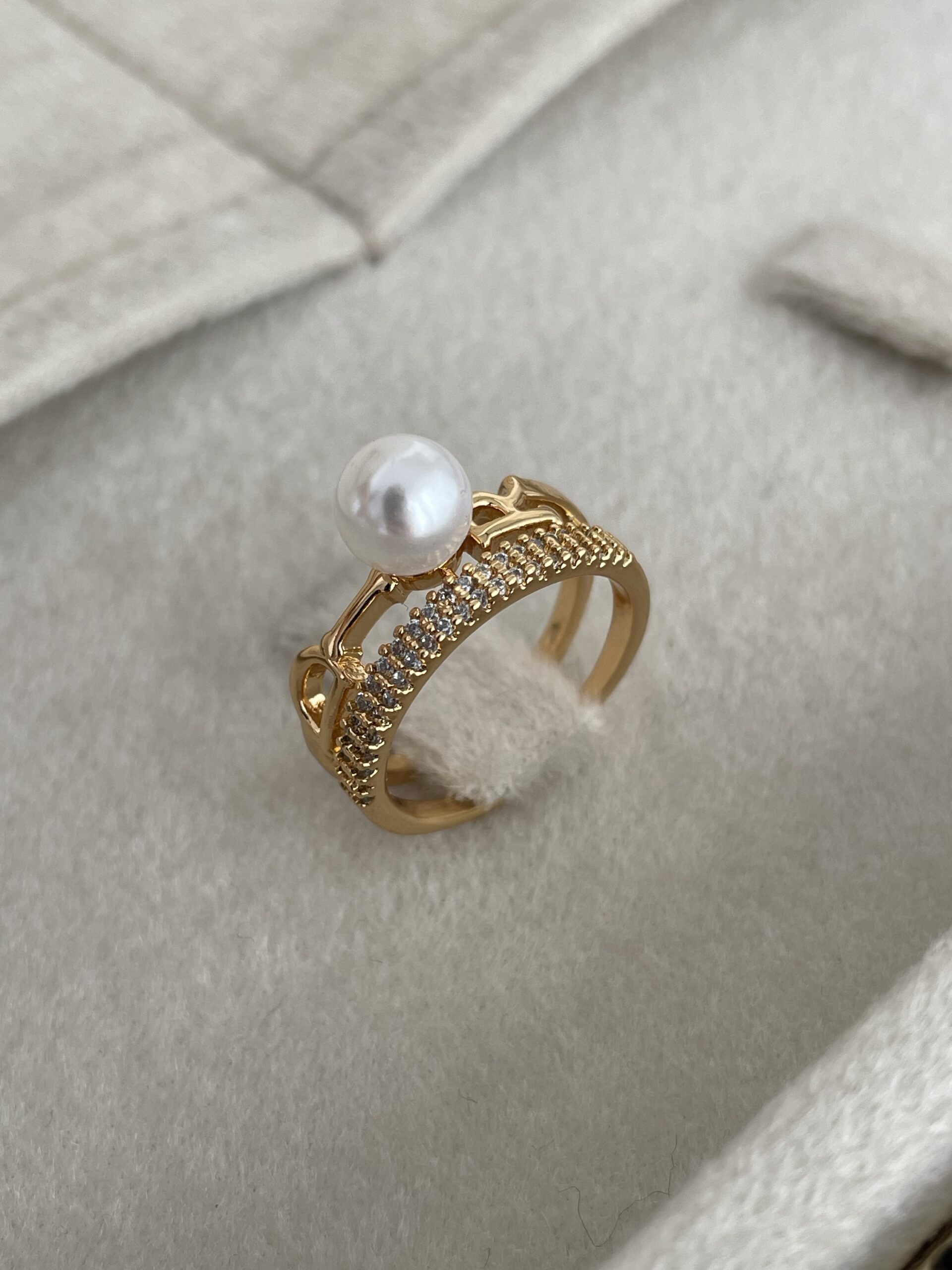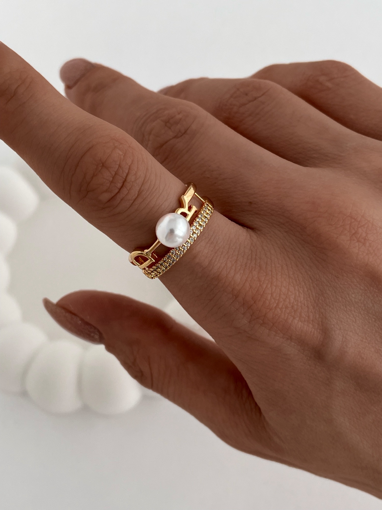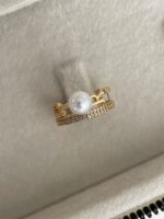 Özel Seri İnci Detaylı Gold Ayarlanabilir Marka Yüzük