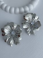 Özel Seri Tek Taş Detaylı Gümüş Çiçek Küpe 6cm