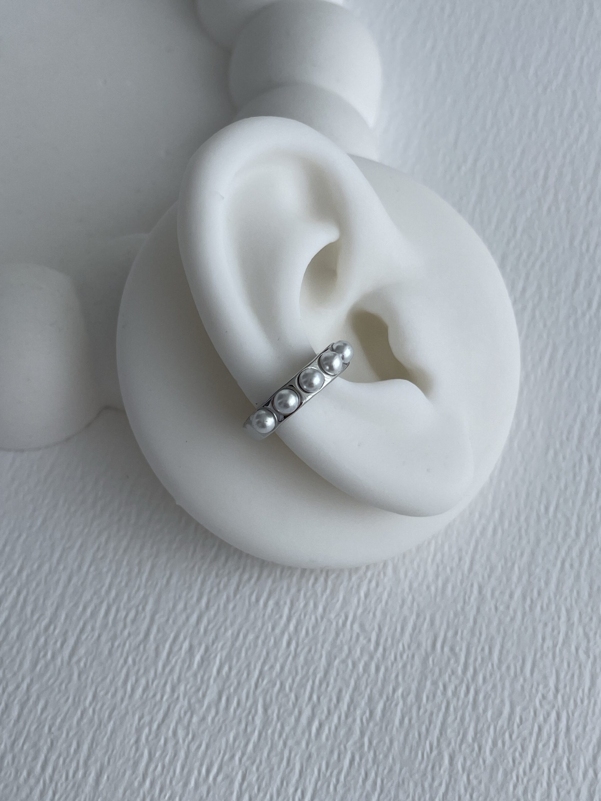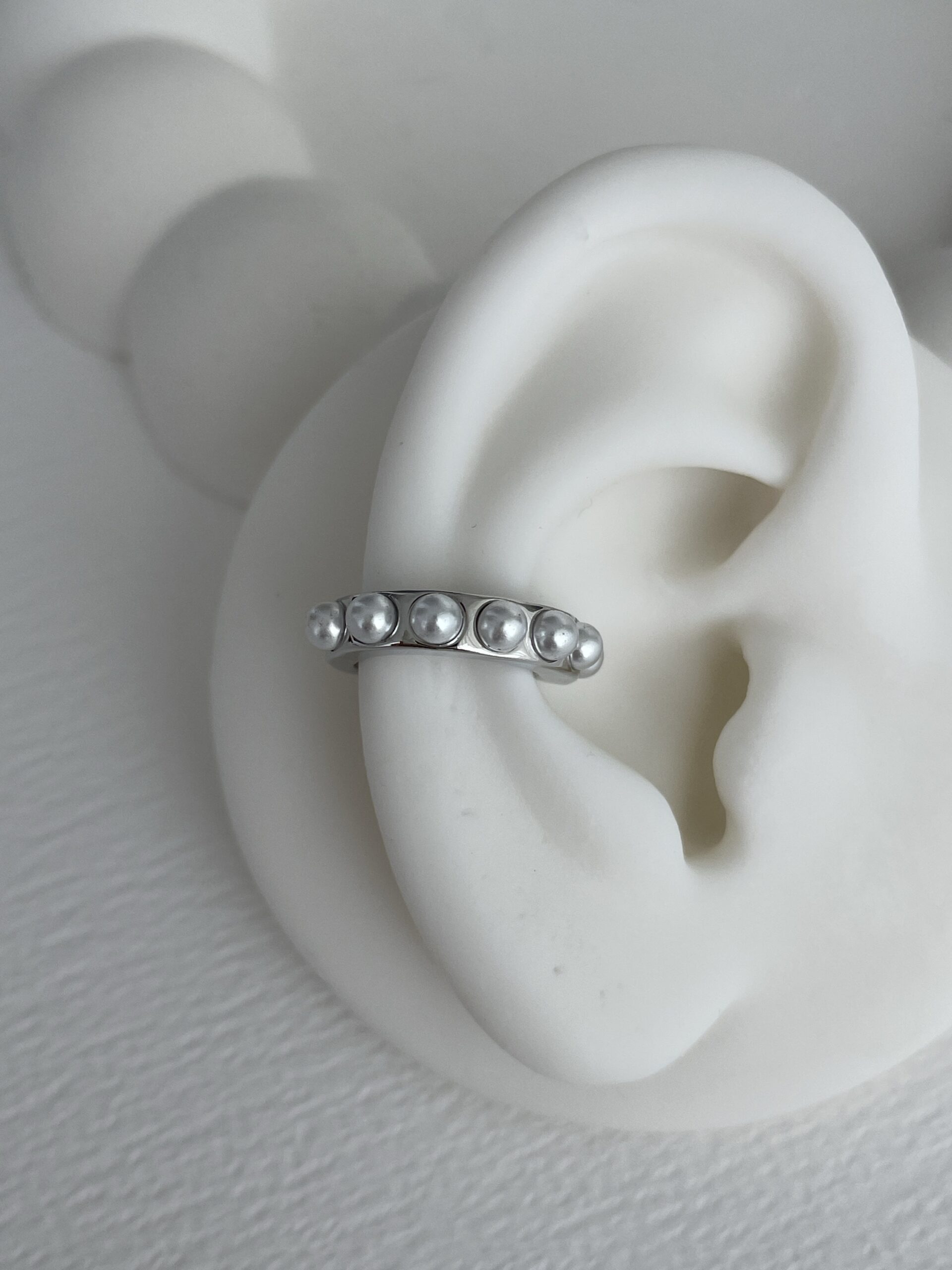 Özel Seri İnci Detaylı Gümüş Halka Earcuff