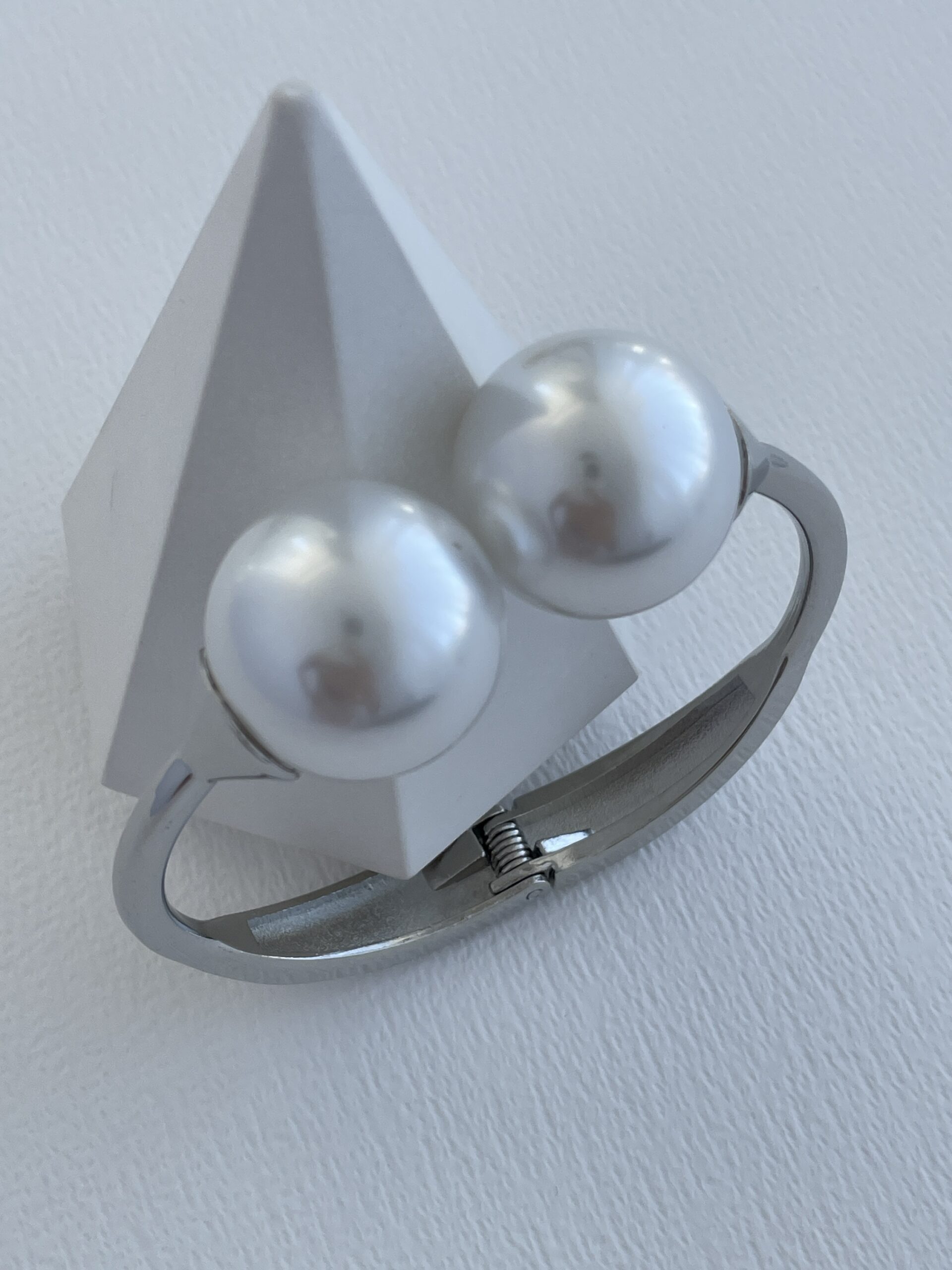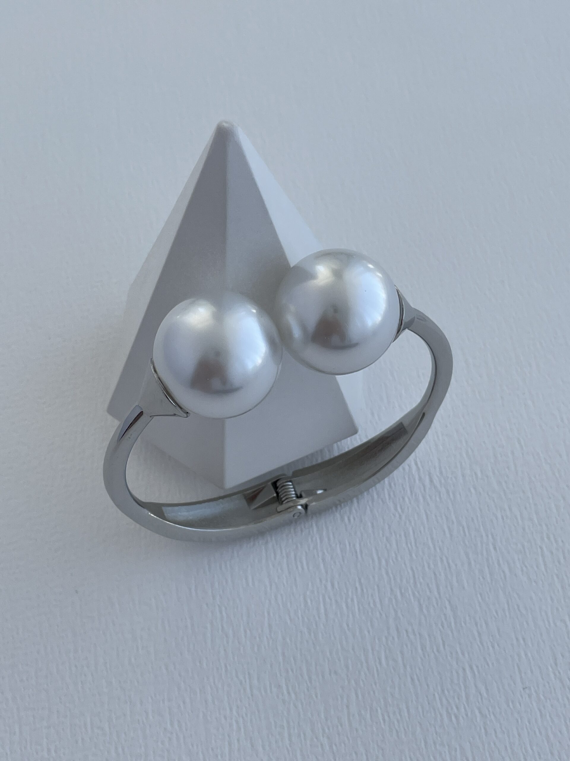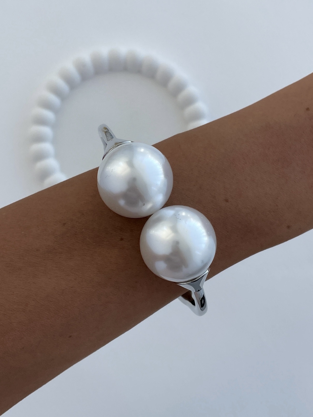 Özel Seri İnci Detaylı Gümüş Kelepçe Bileklik