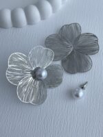 Özel Seri İnci Detaylı Gümüş Tel Çiçek Küpe 5cm