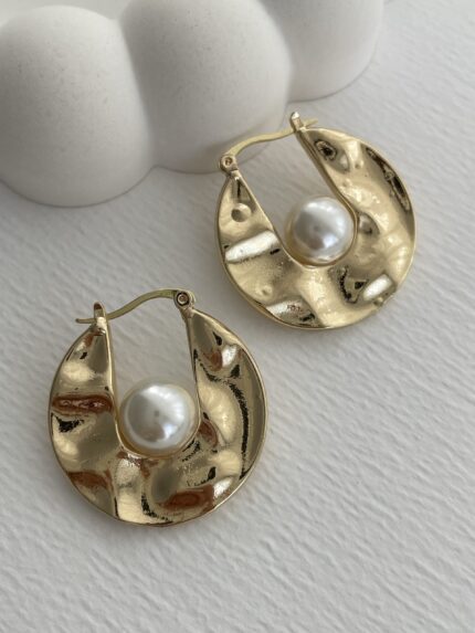 Özel Seri İnci Detaylı Soyut Tasarım Gold Küpe