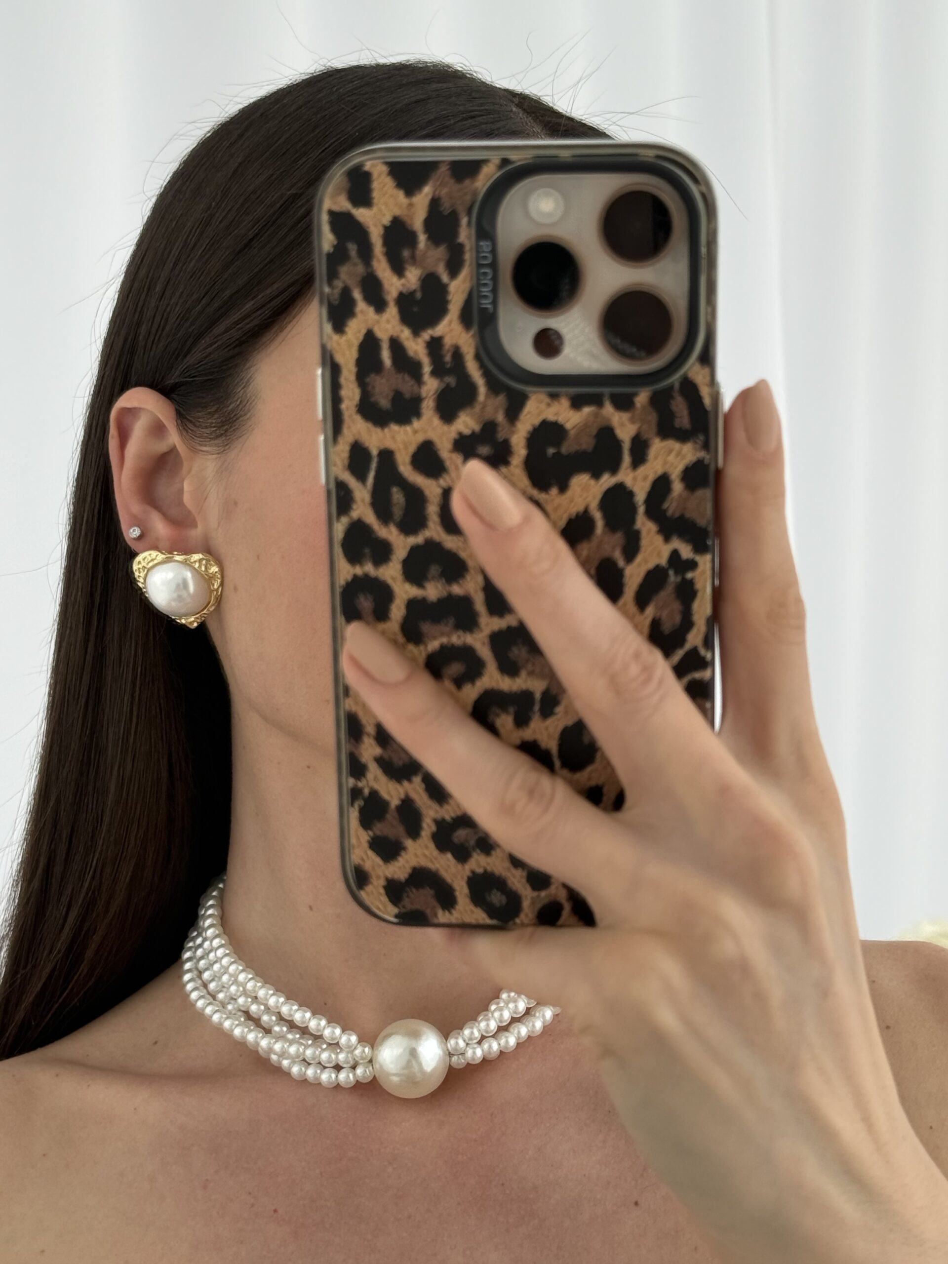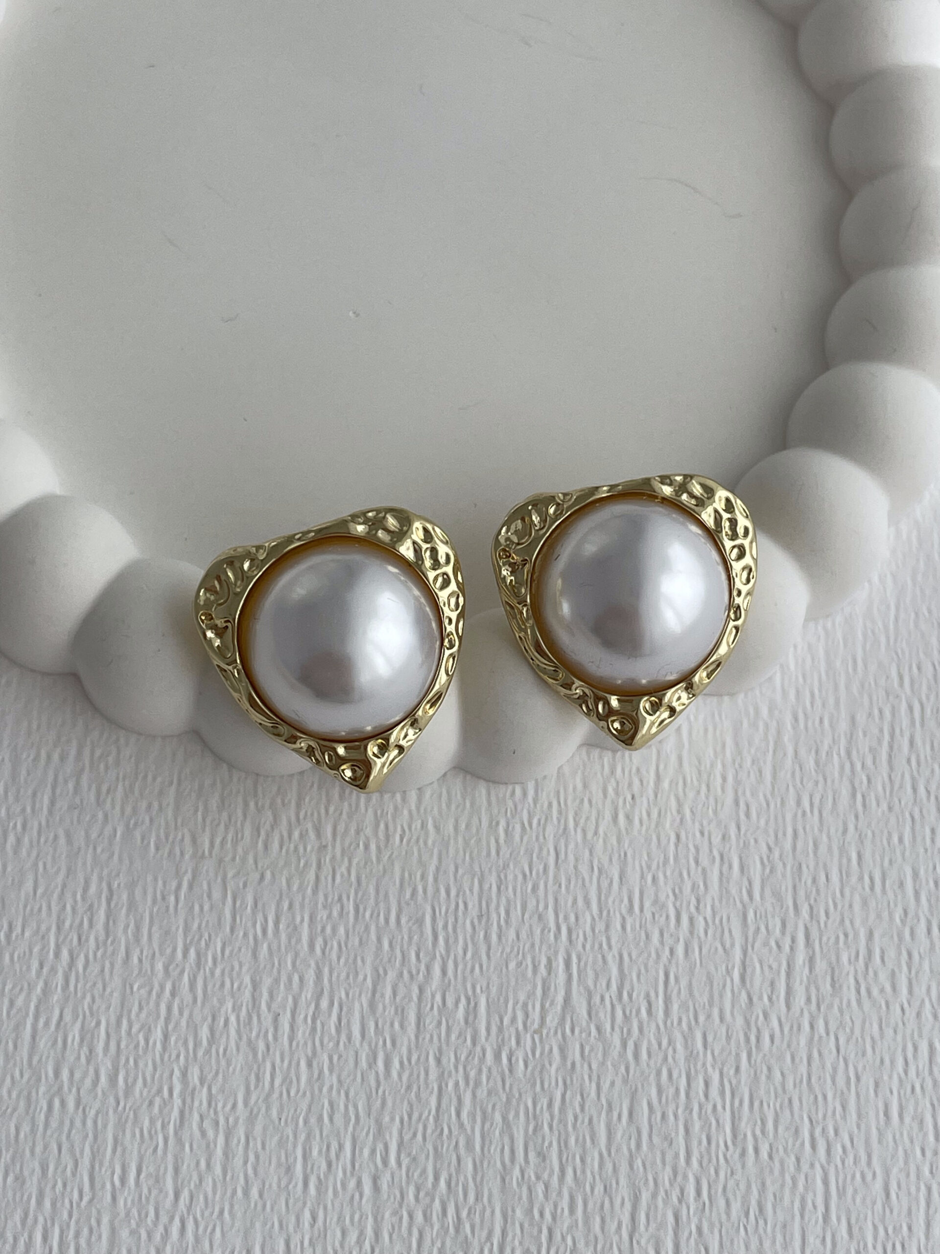 Özel Seri İnci Top Detay Etrafı Desenli Gold Küpe