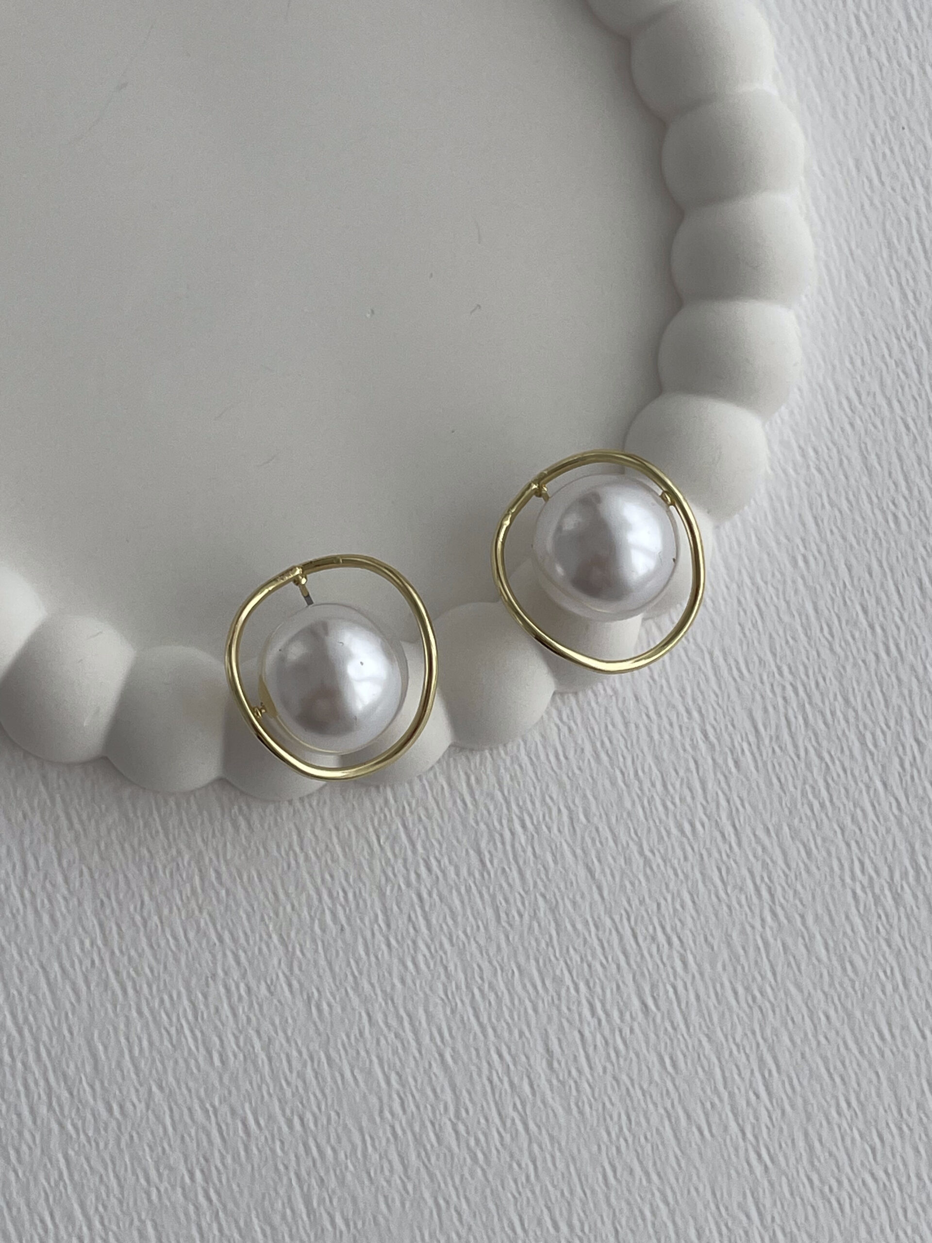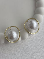 Özel Seri İnci Top Detay Gold Çerçeveli Küpe