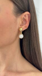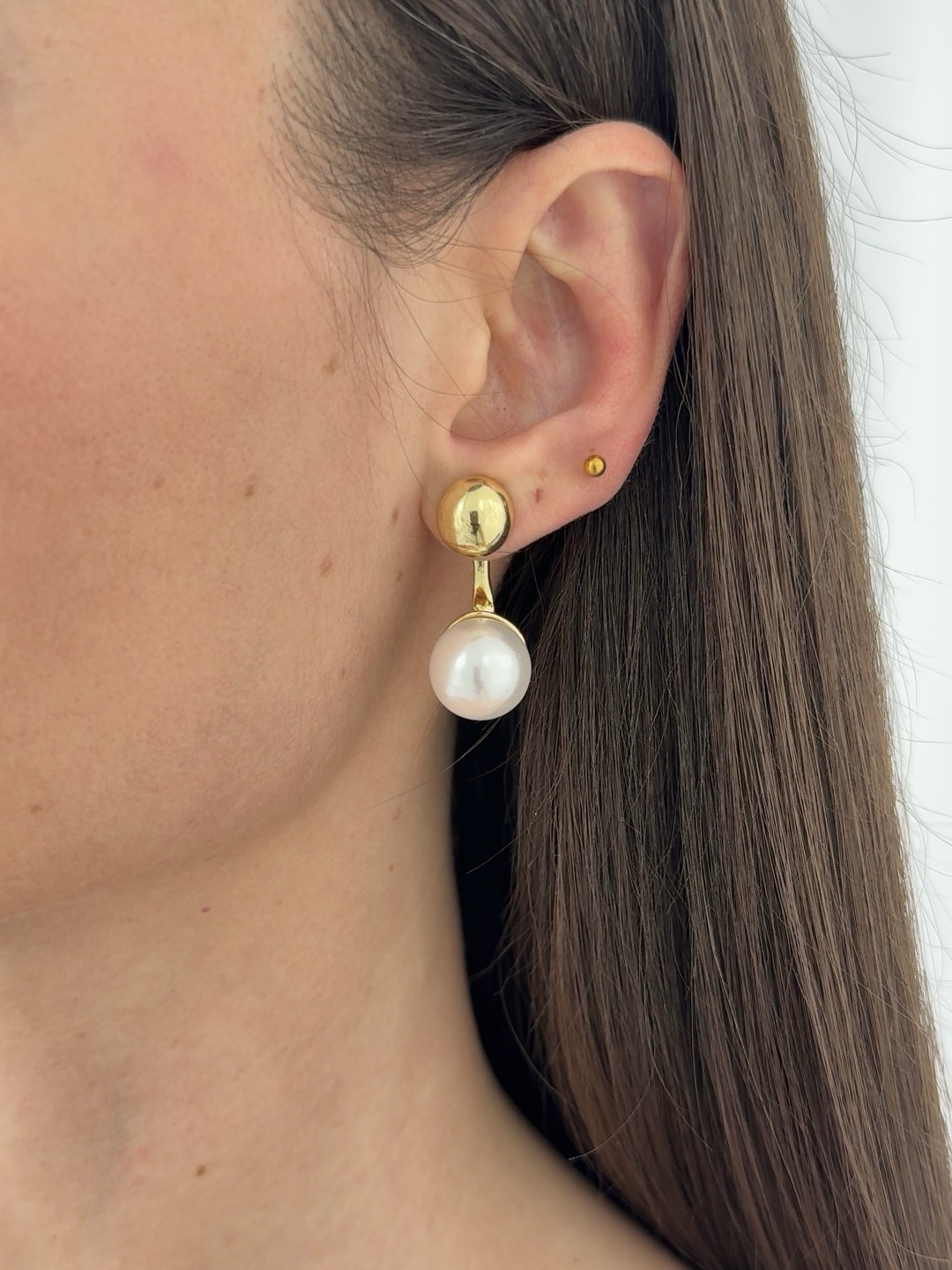 Özel Seri İnci Top Detay Gold Küpe