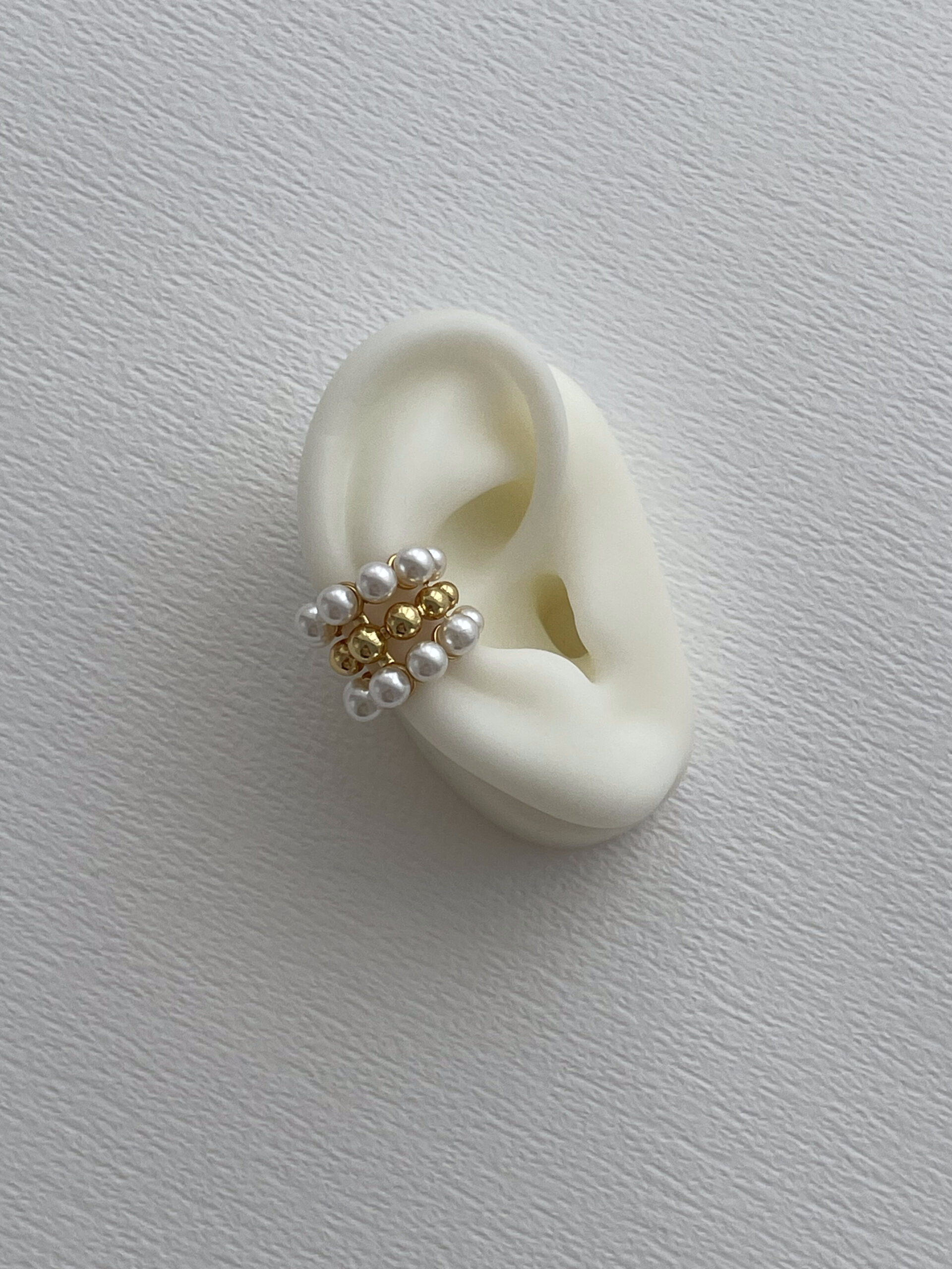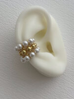 Özel Seri İnci Top Detay Üçlü Tasarım Gold Earcuff Küpe