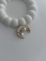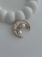 Özel Seri İnci & Zirkon Taşlı Ay Tasarım Gold Broş