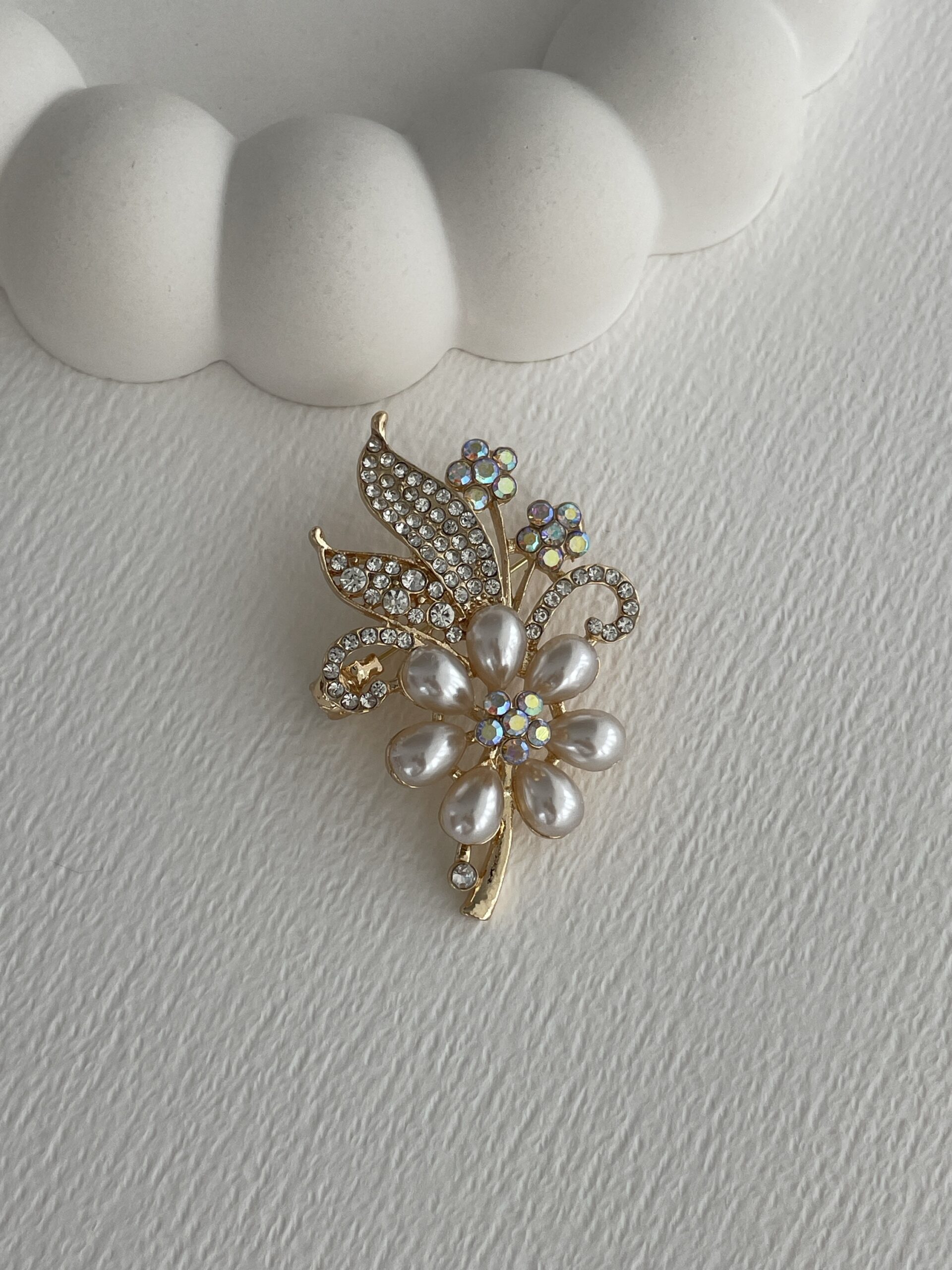 Özel Seri İncili Yaprak & Çiçek Tasarım Gold Broş