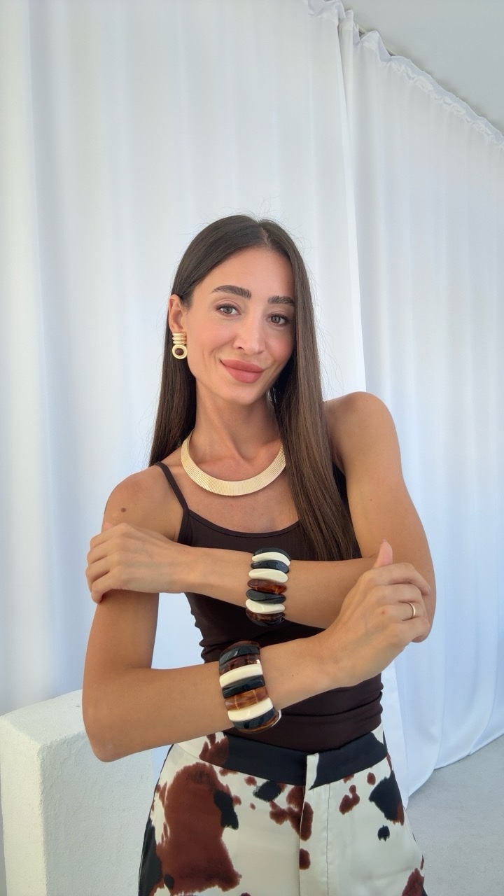 Özel Seri Kahve & Krem Kemik Tasarım Lastikli Bileklik