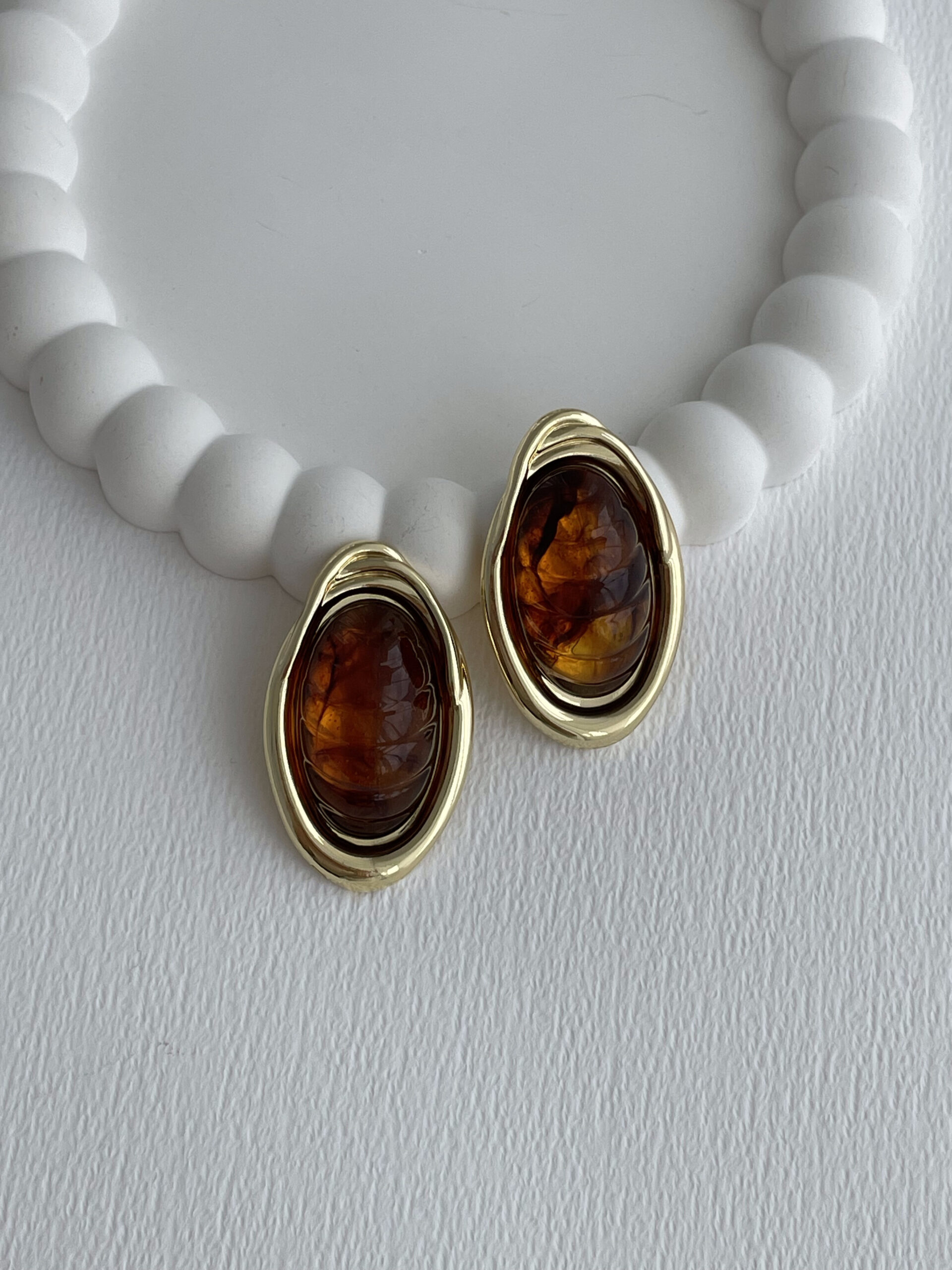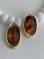 Özel Seri Kahverengi Akrilik Taş Oval Tasarım Gold Küpe