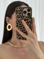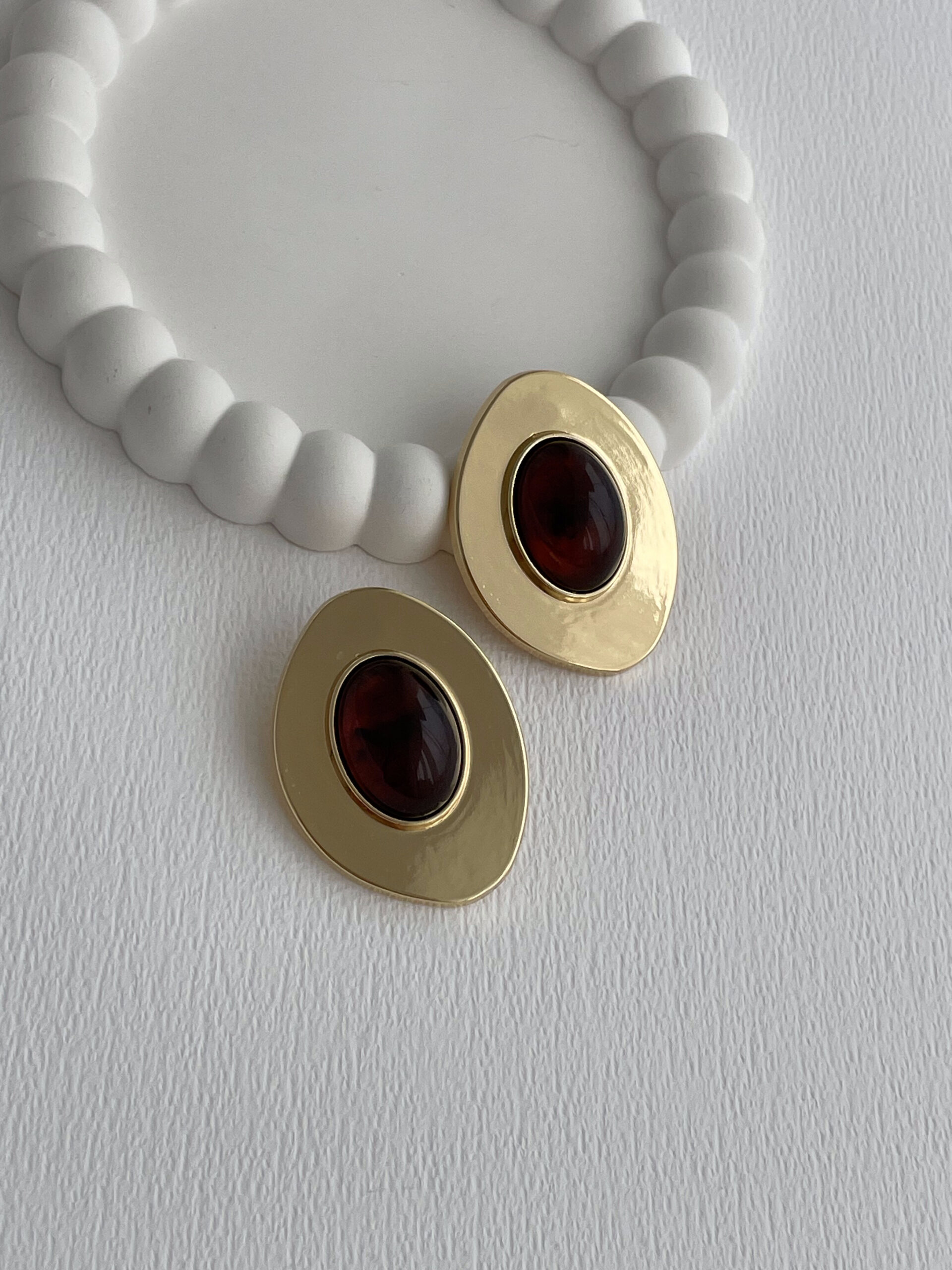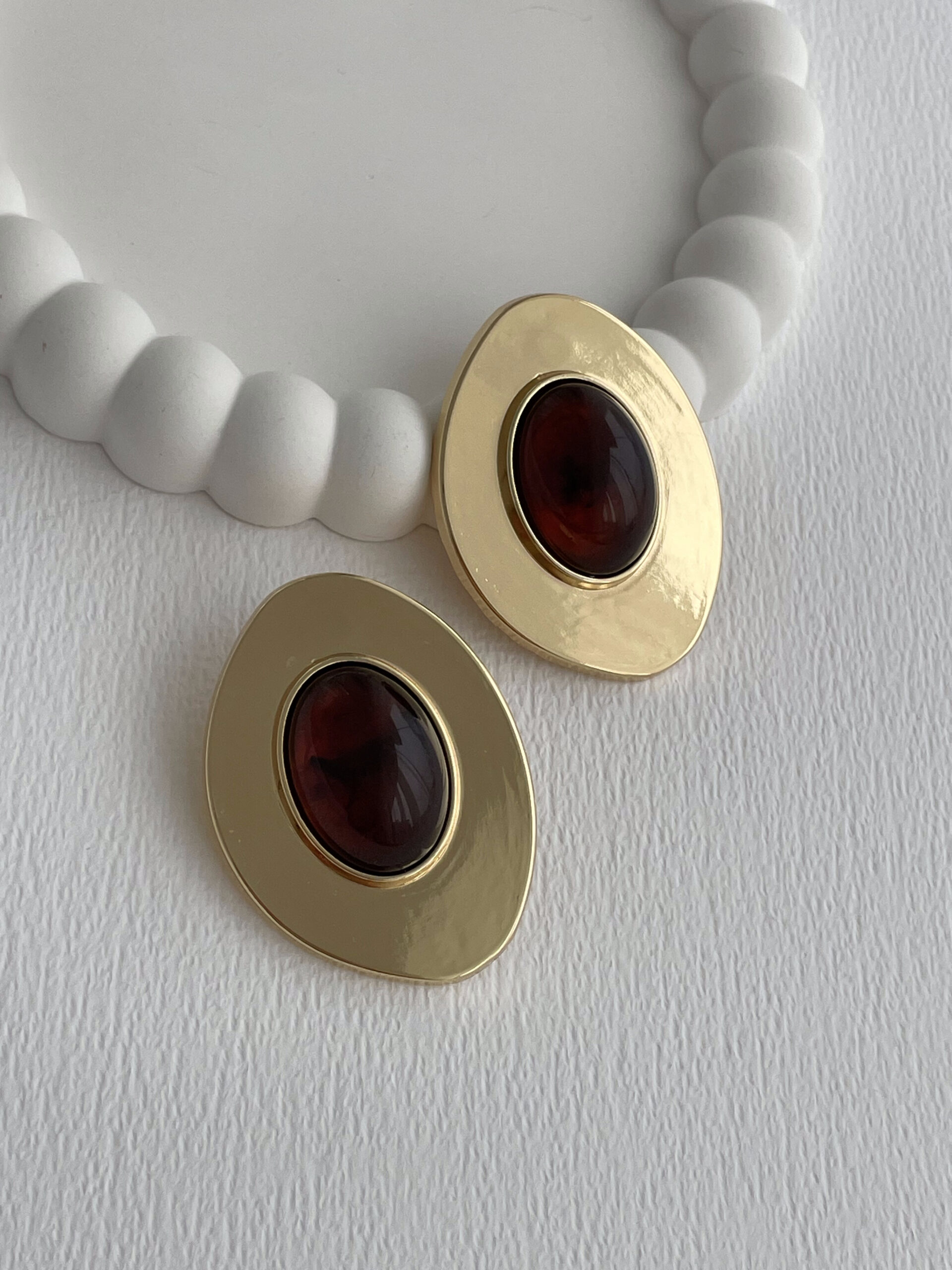 Özel Seri Kahverengi Akrilik Taş Oval Tasarım Maksi Gold Küpe