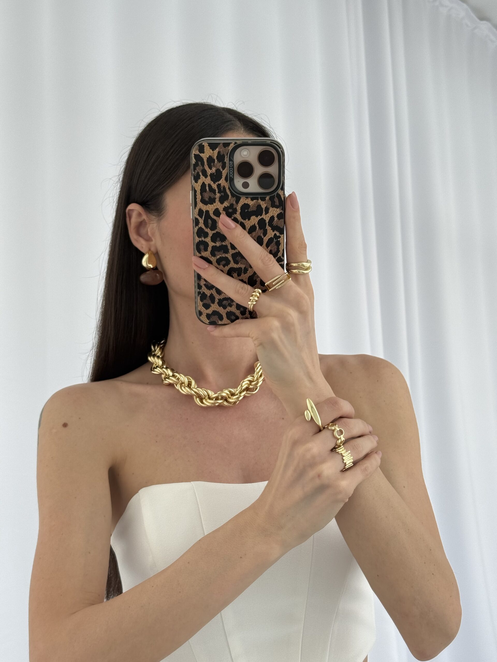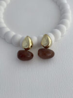 Özel Seri Kahverengi Aktilik Taş Detay İkili Gold Küpe
