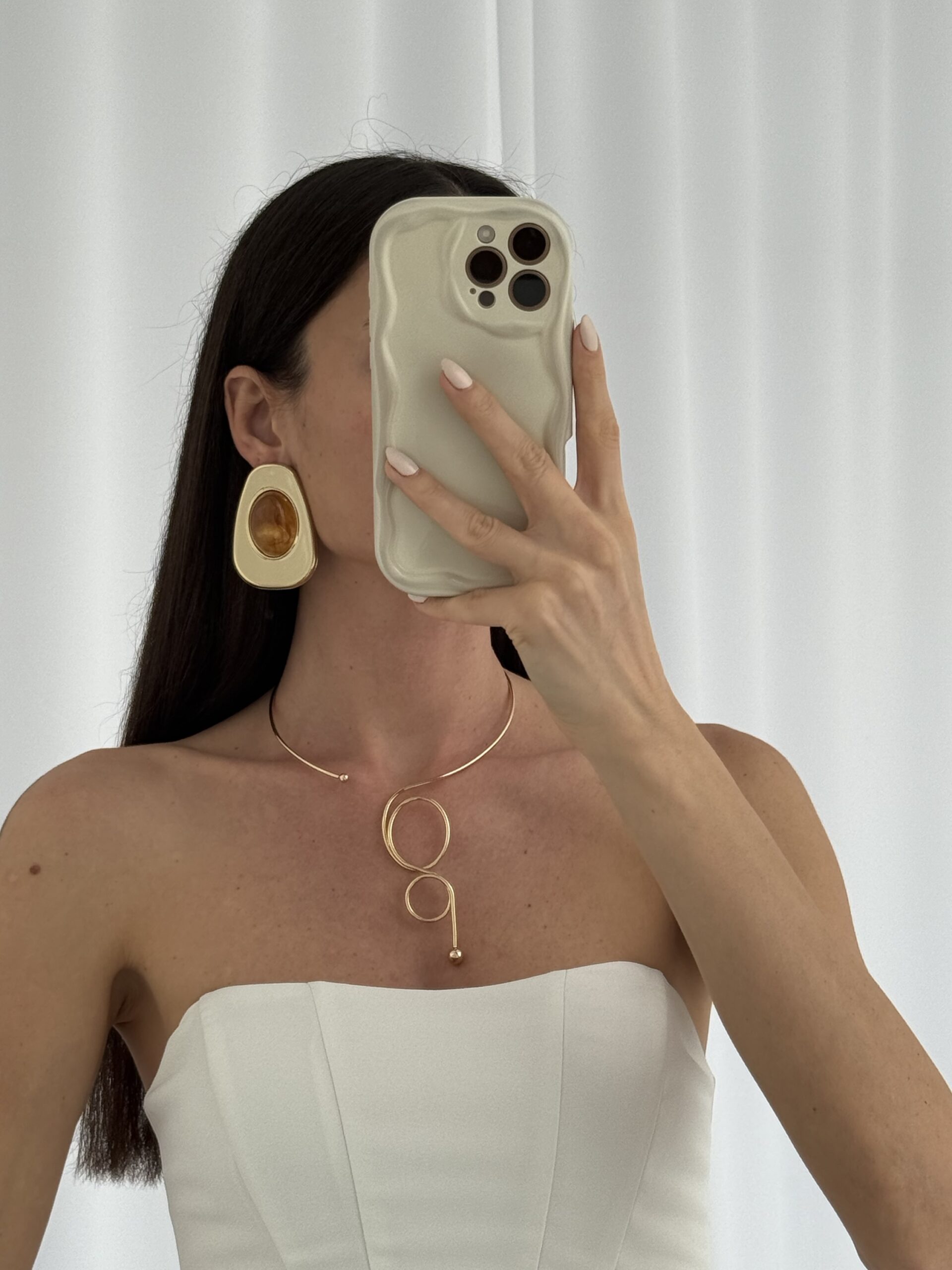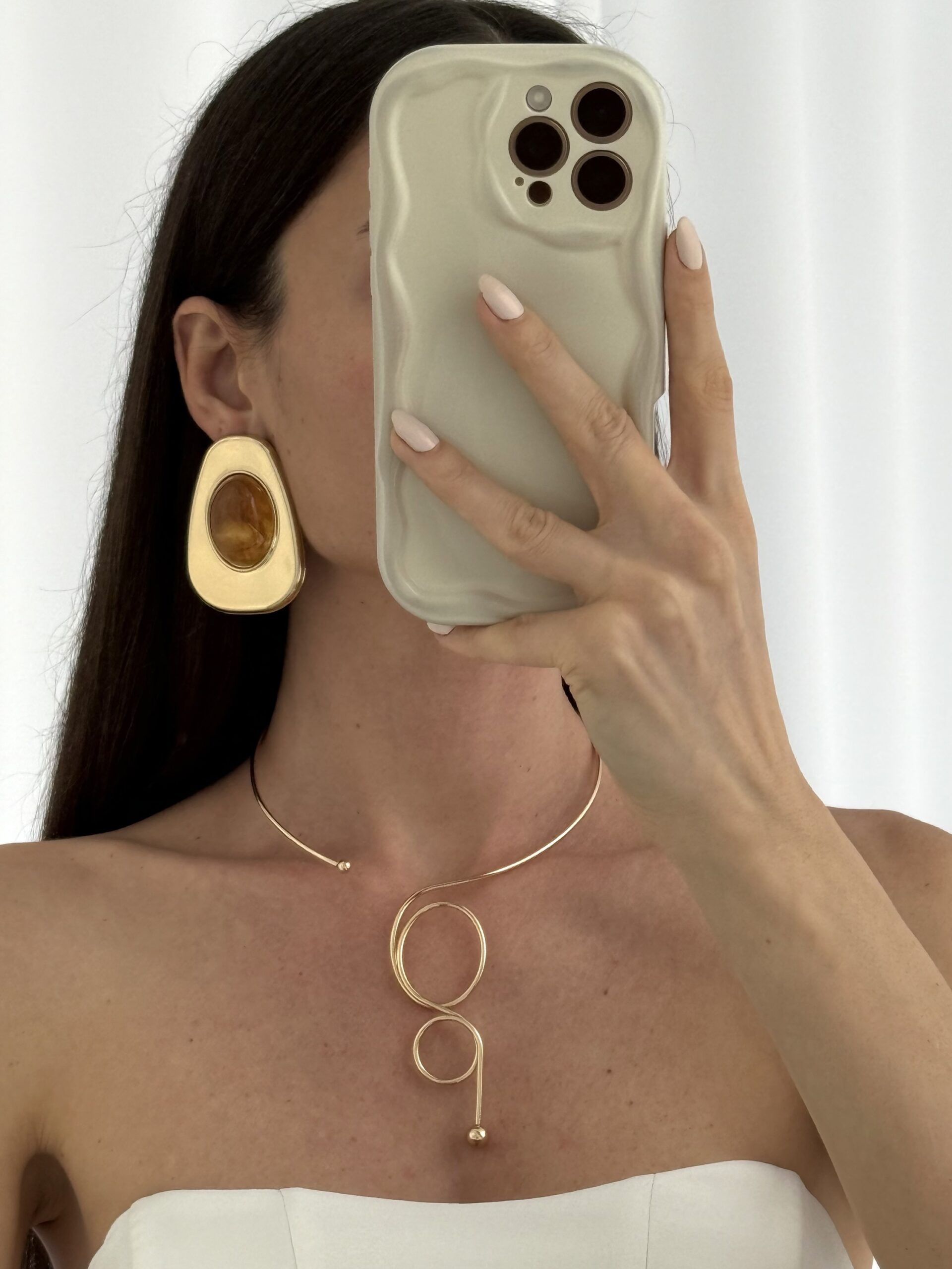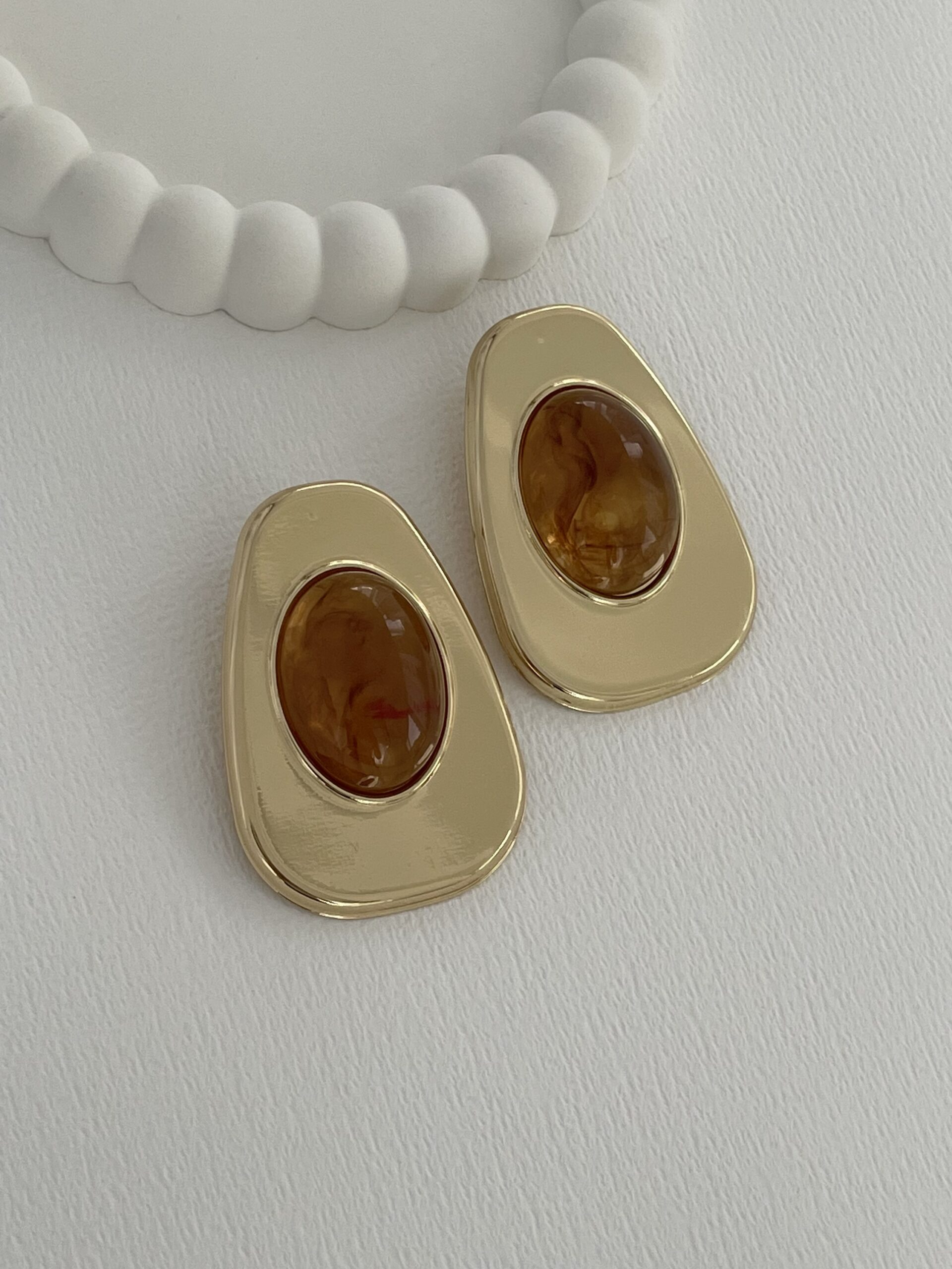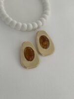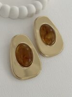Özel Seri Kahverengi Kemik Büyük Oval Tasarım Gold Küpe