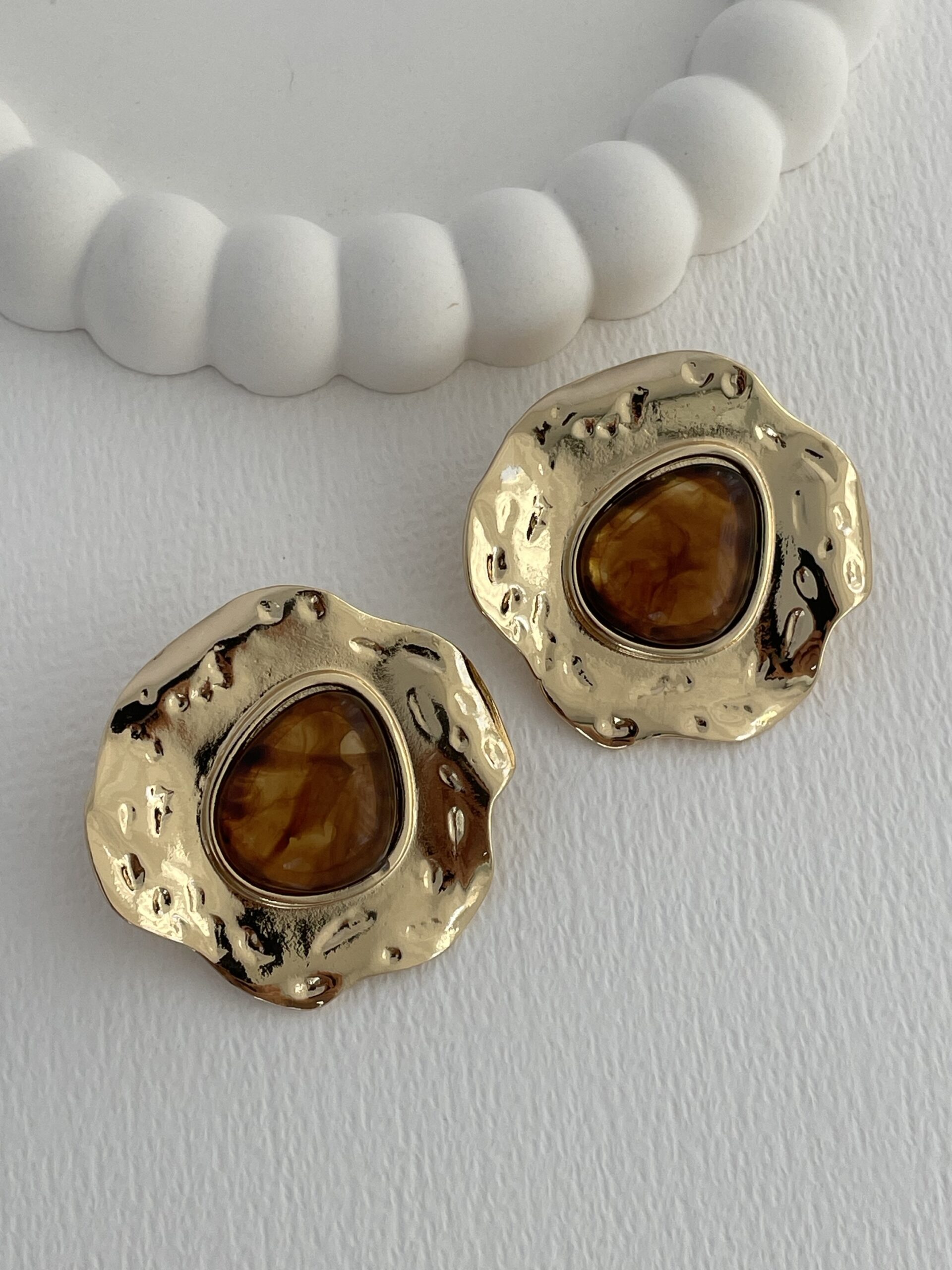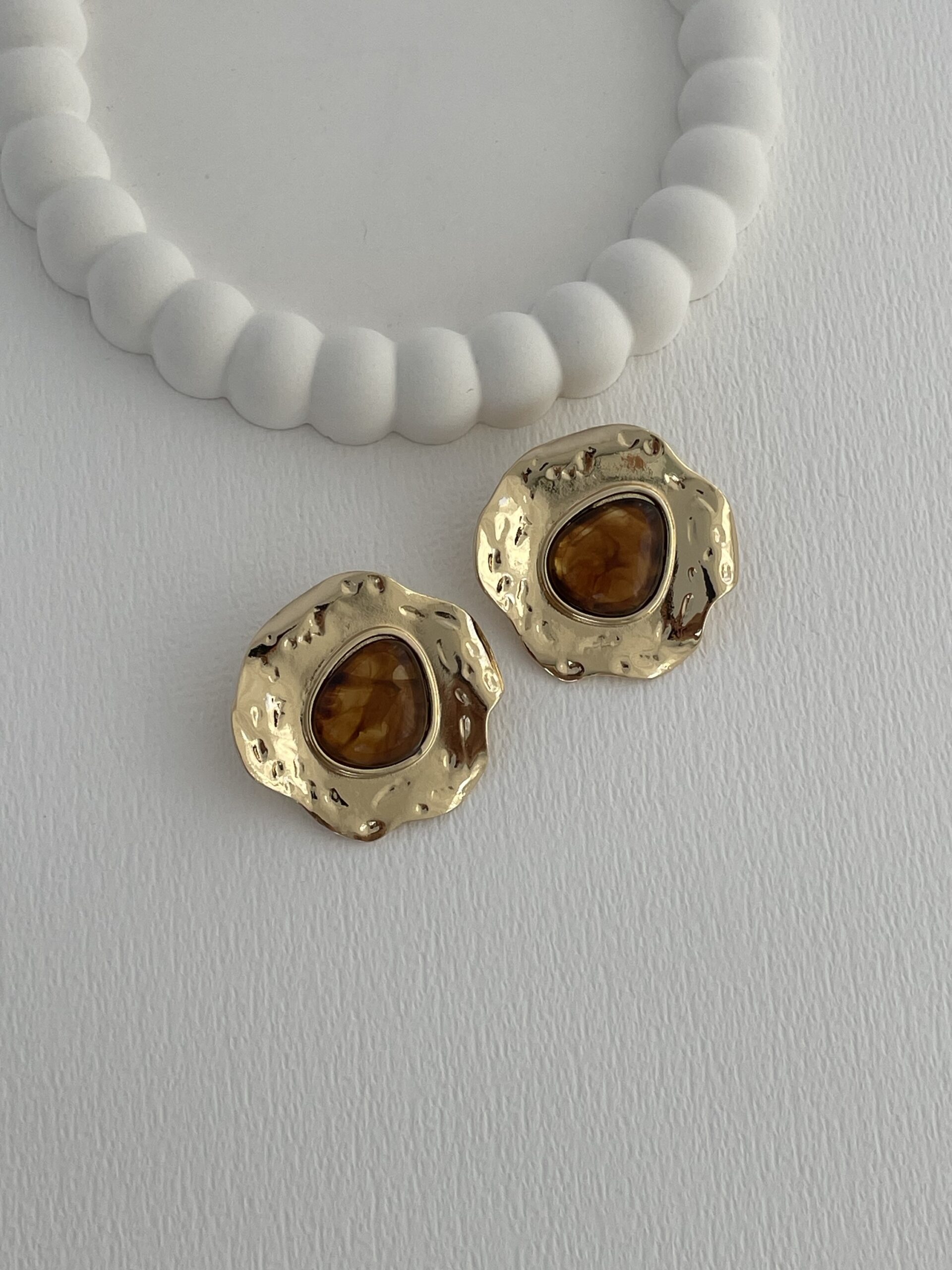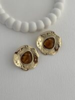 Özel Seri Kahverengi Kemik Desenli Soyut Tasarım Gold Küpe