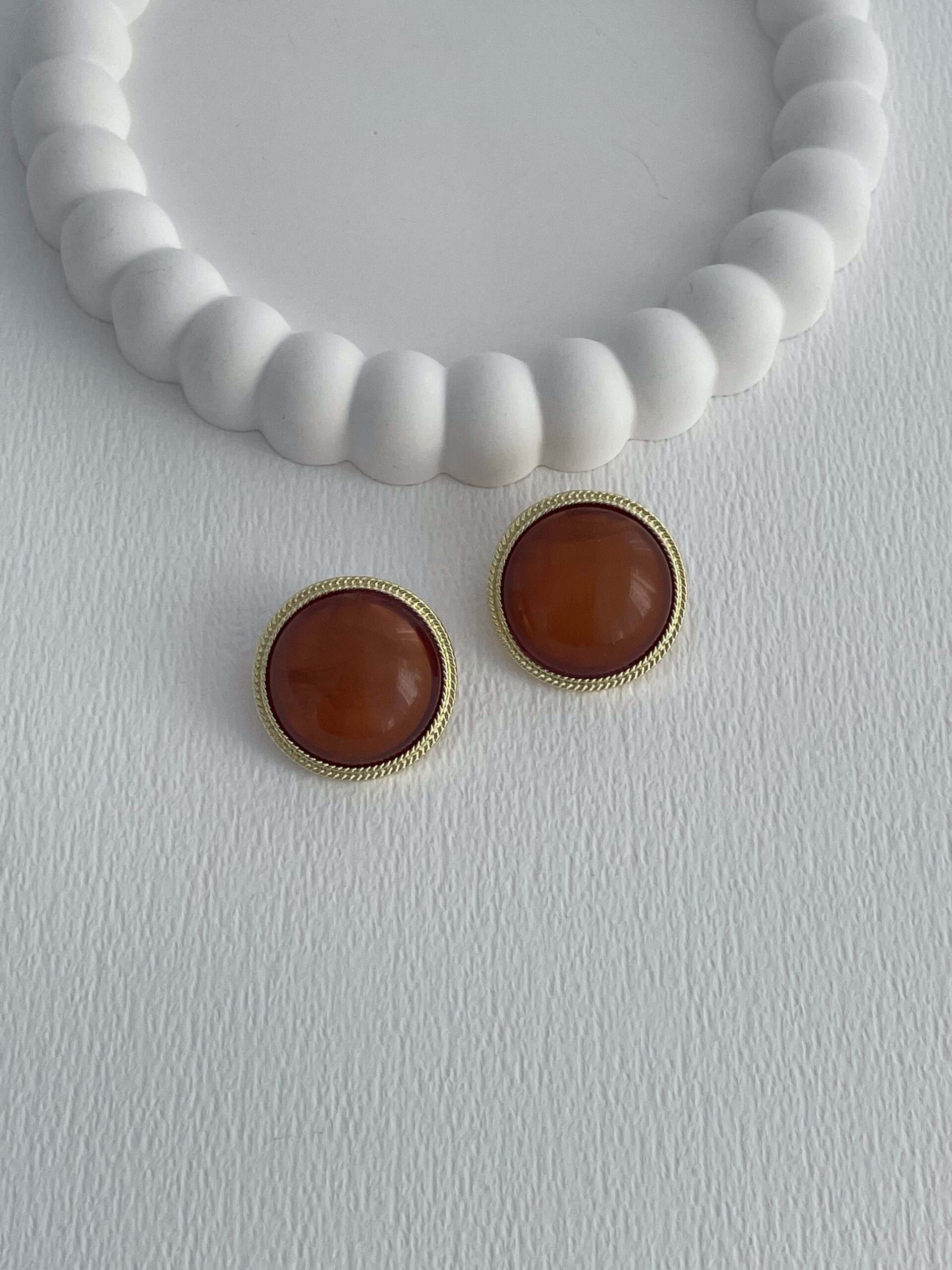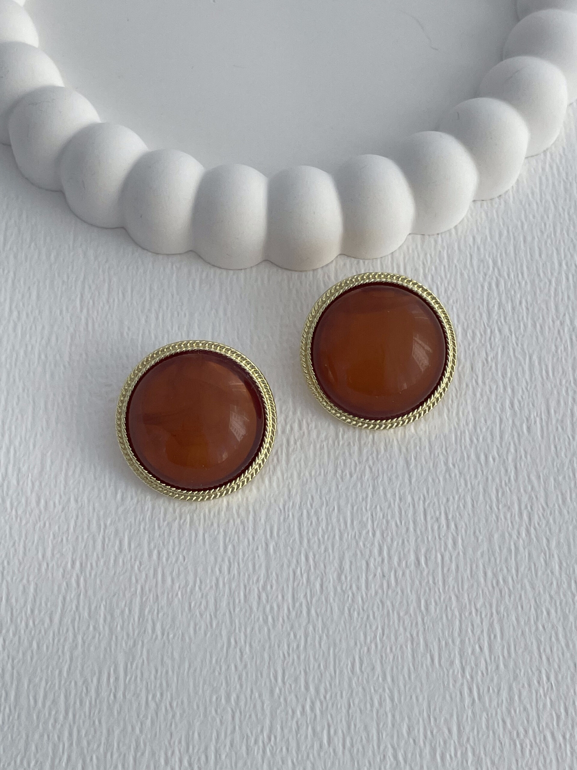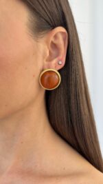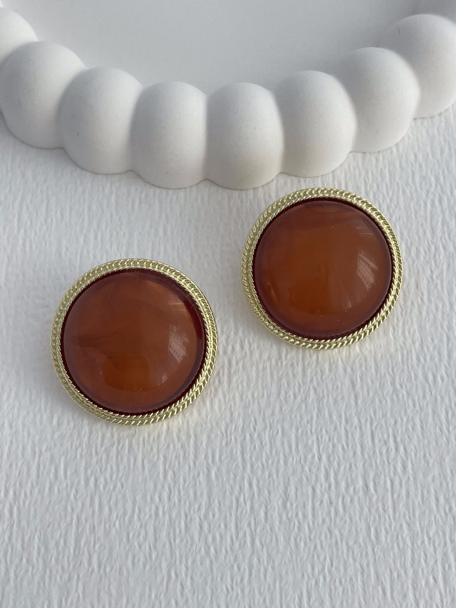 Özel Seri Kahverengi Kemik Detay Desenli Kenar Tasarım Yuvarlak Gold Küpe