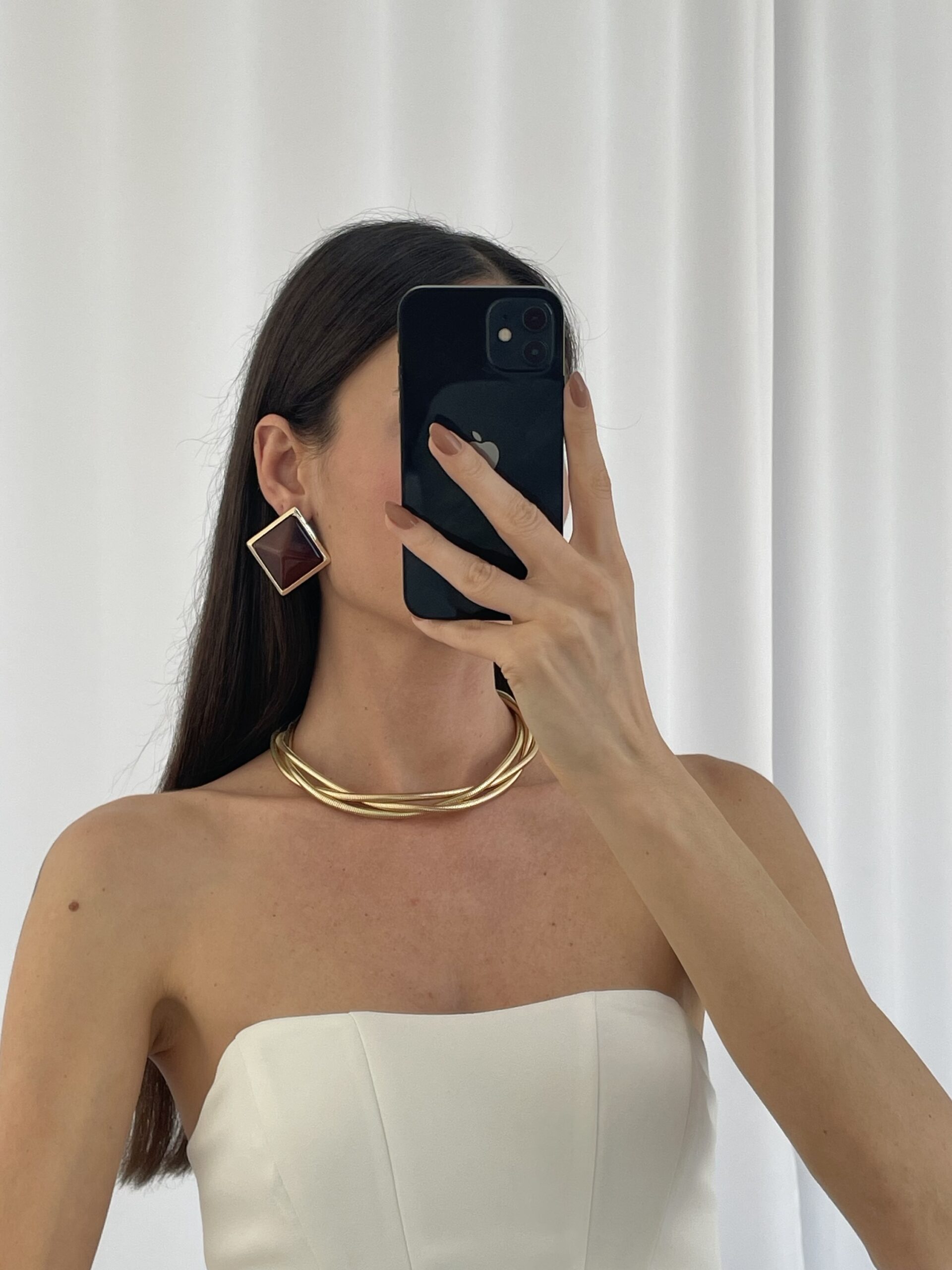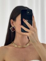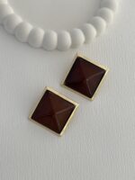 Özel Seri Kahverengi Kemik Detay Kare Tasarım Gold Küpe