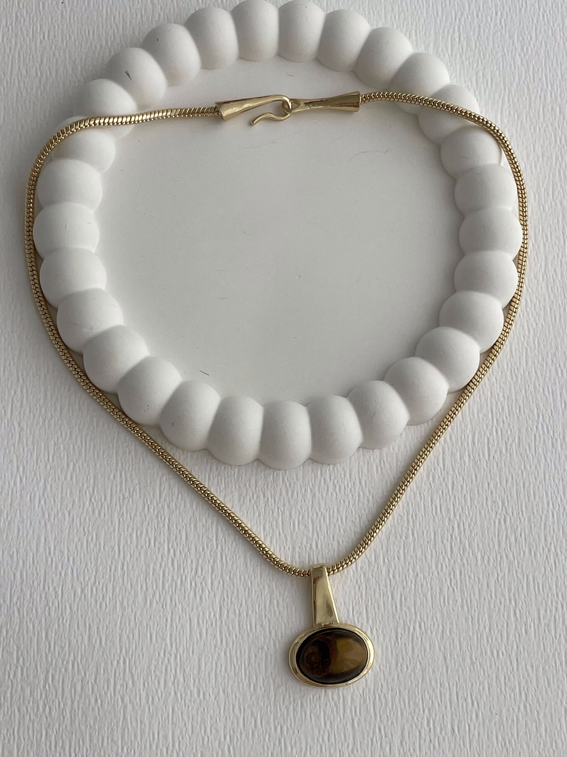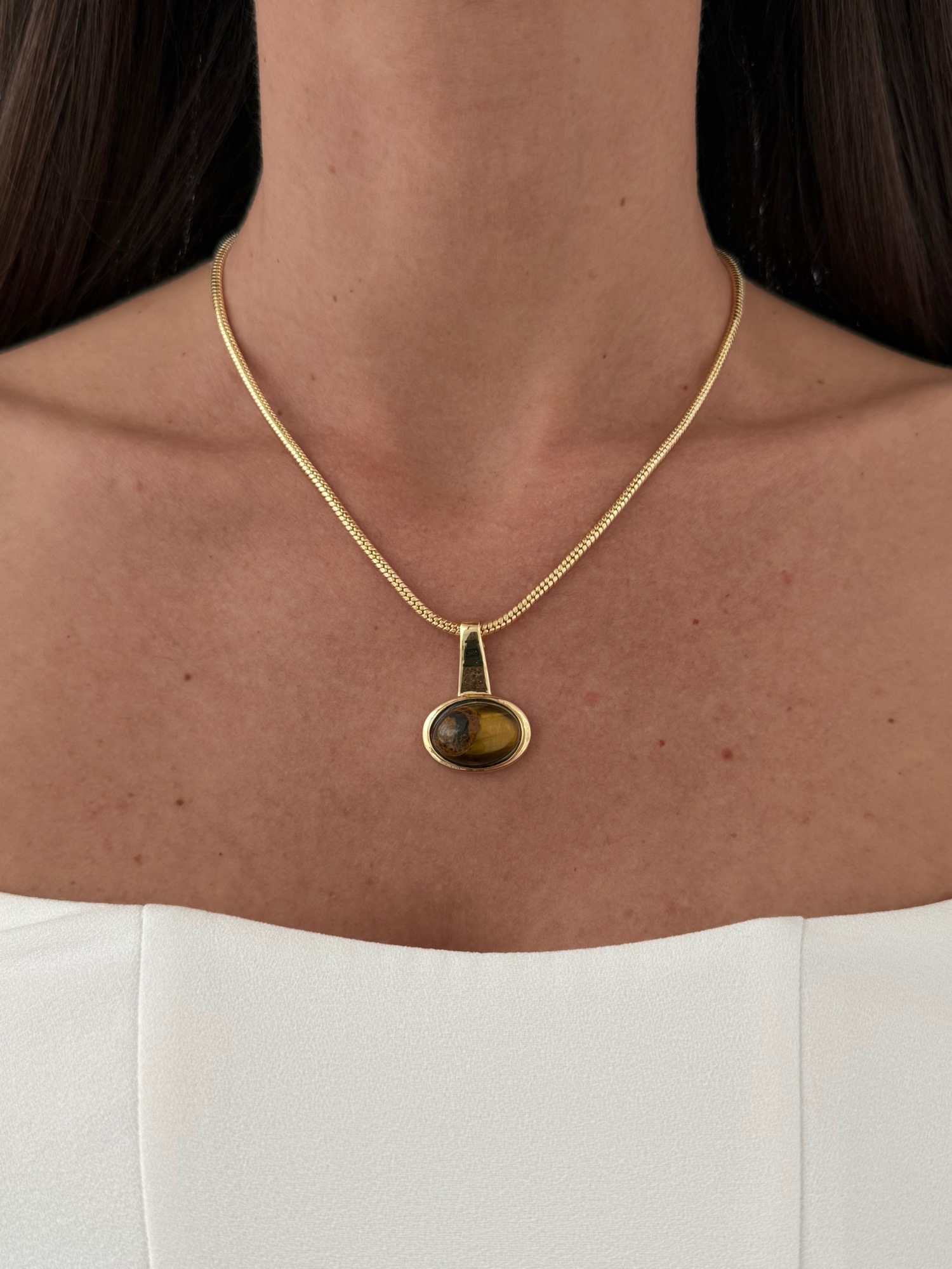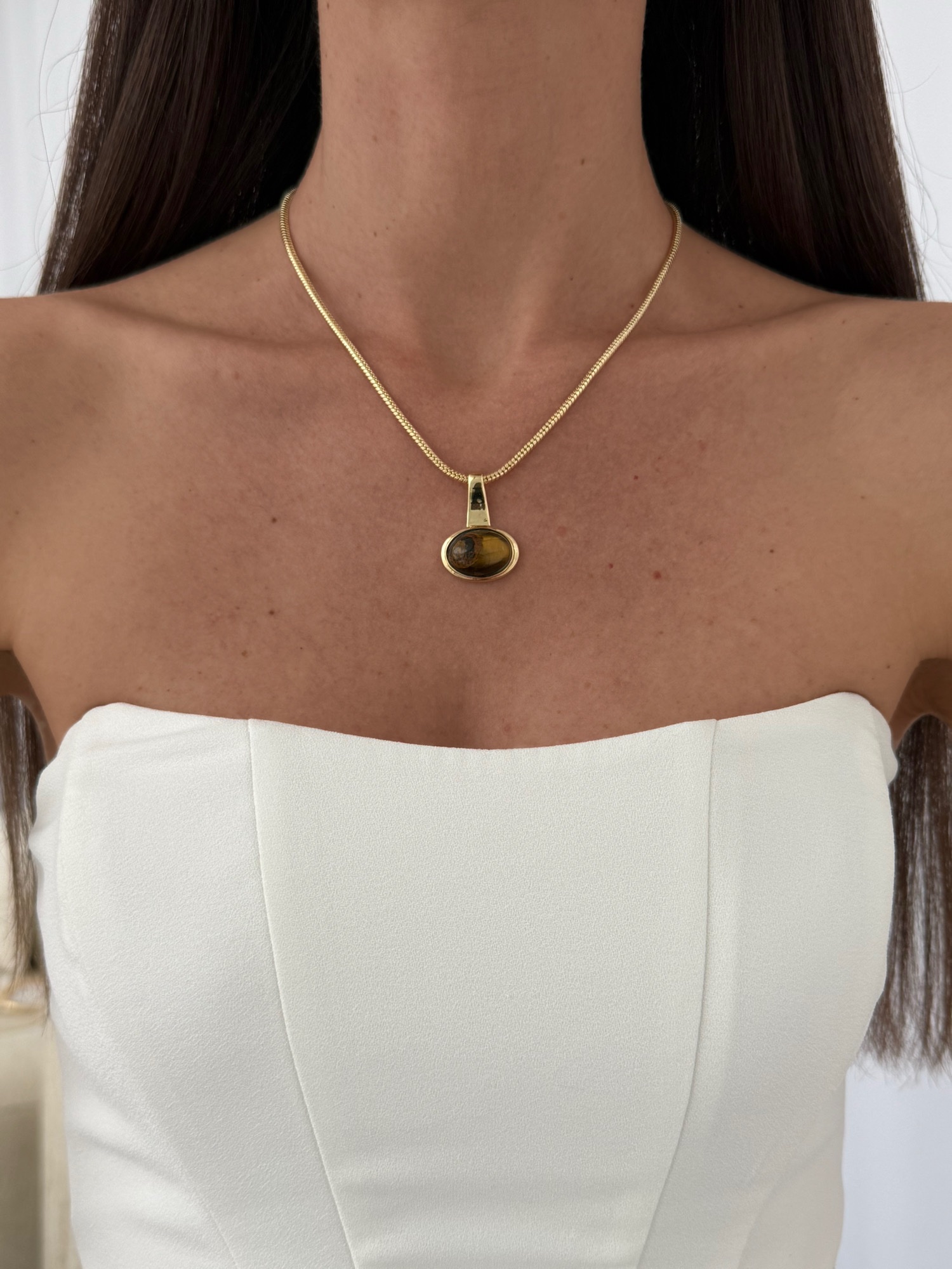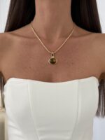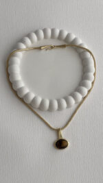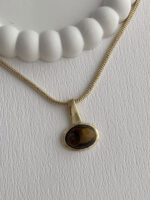 Özel Seri Kahverengi Kemik Detay Oval Tasarım Gold Kolye