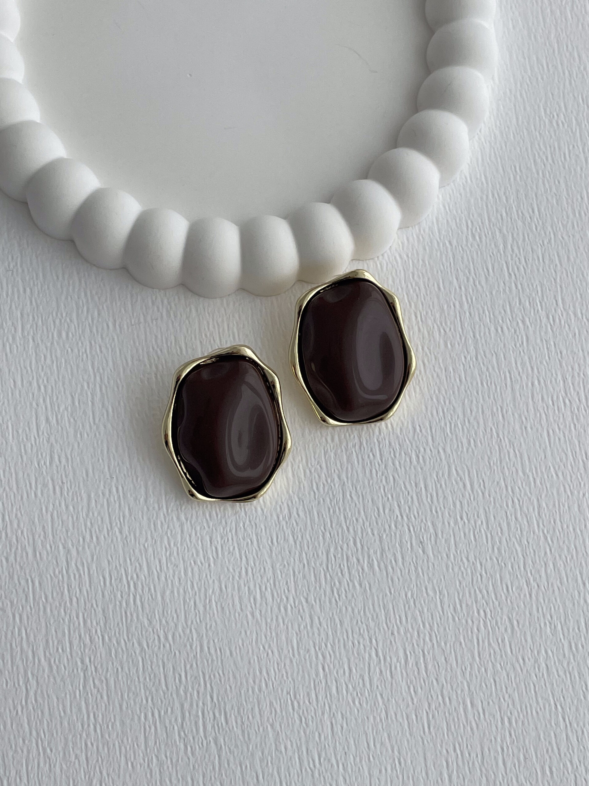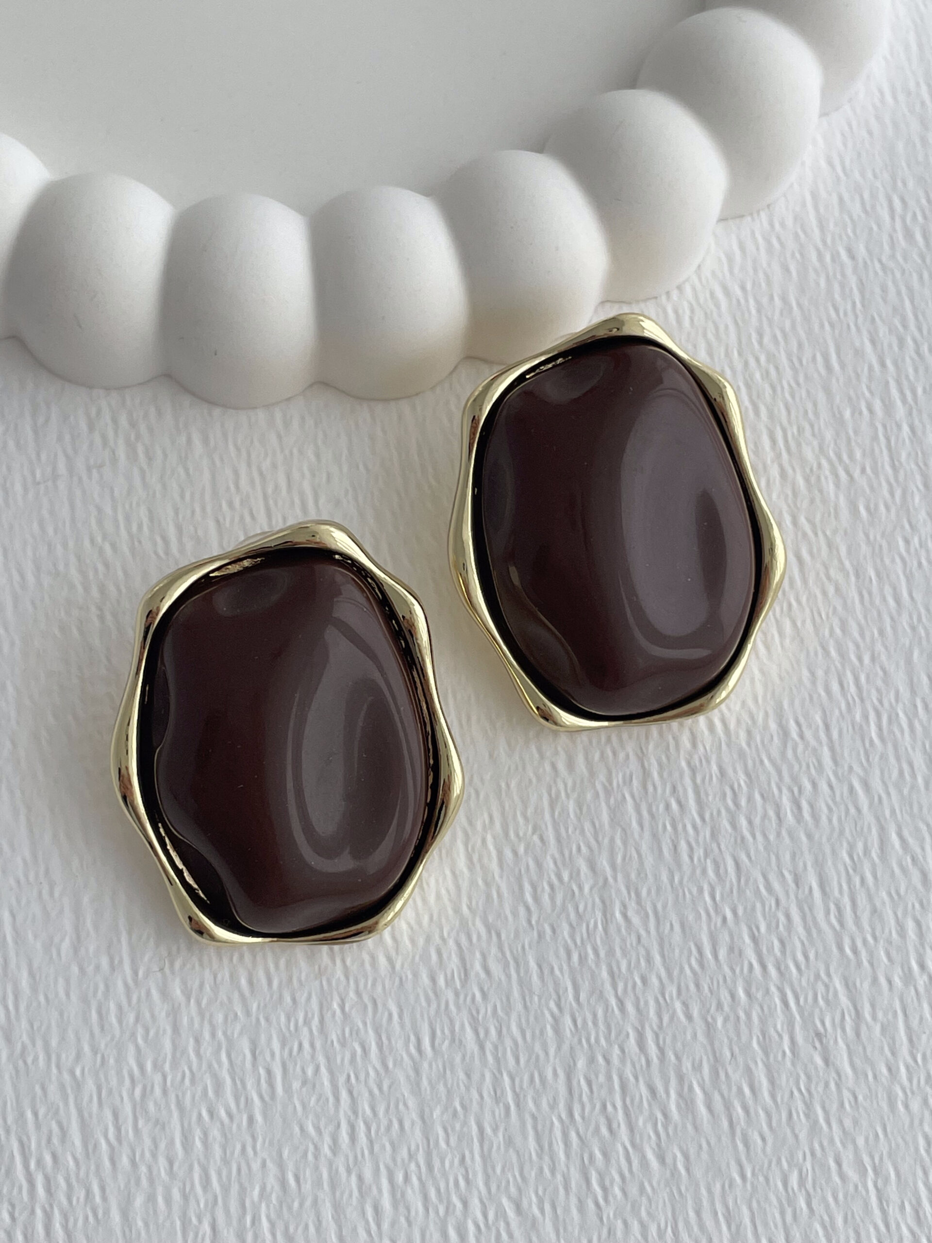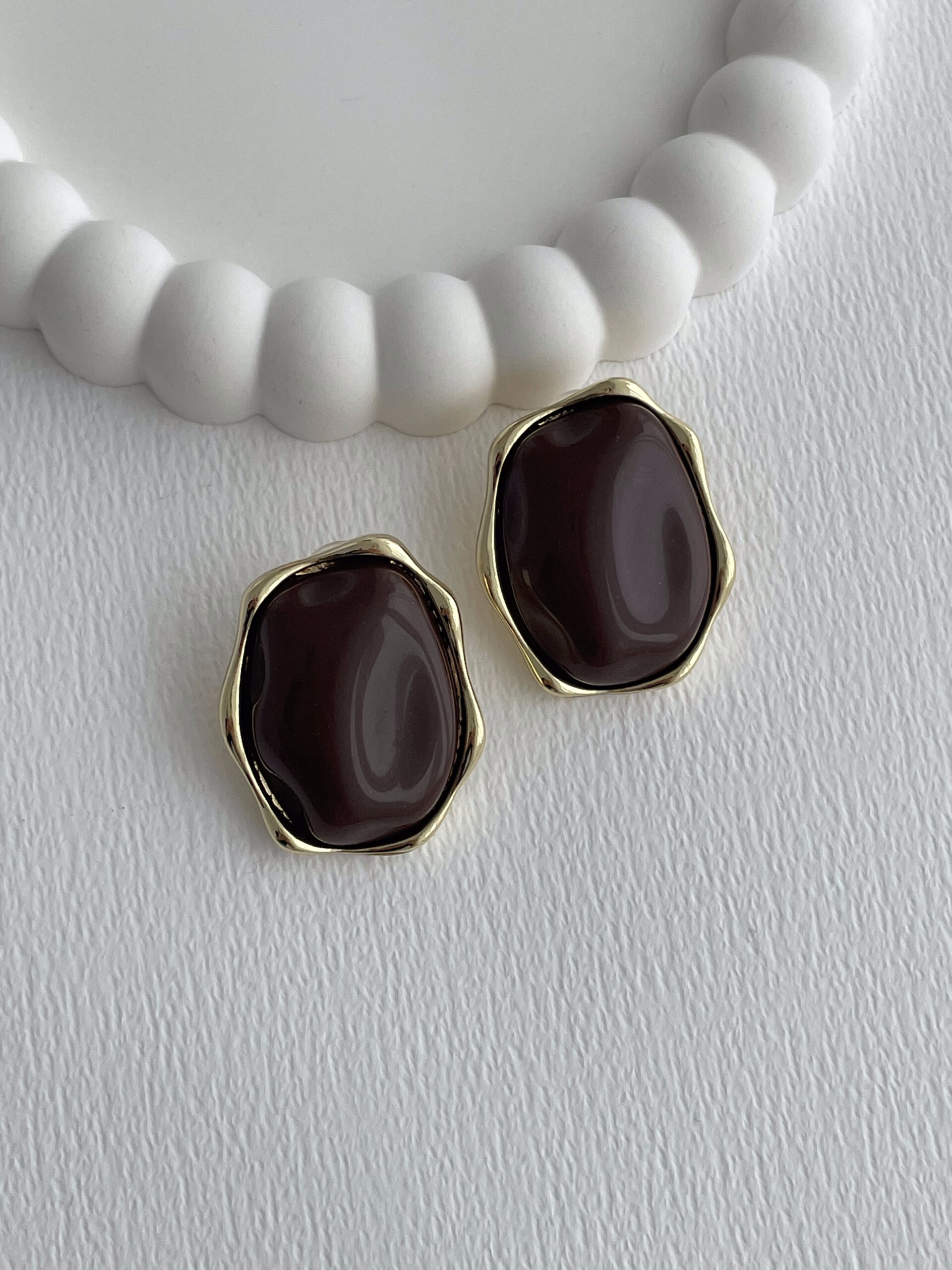 Özel Seri Kahverengi Kemik Detay Soyut Tasarım Gold Küpe