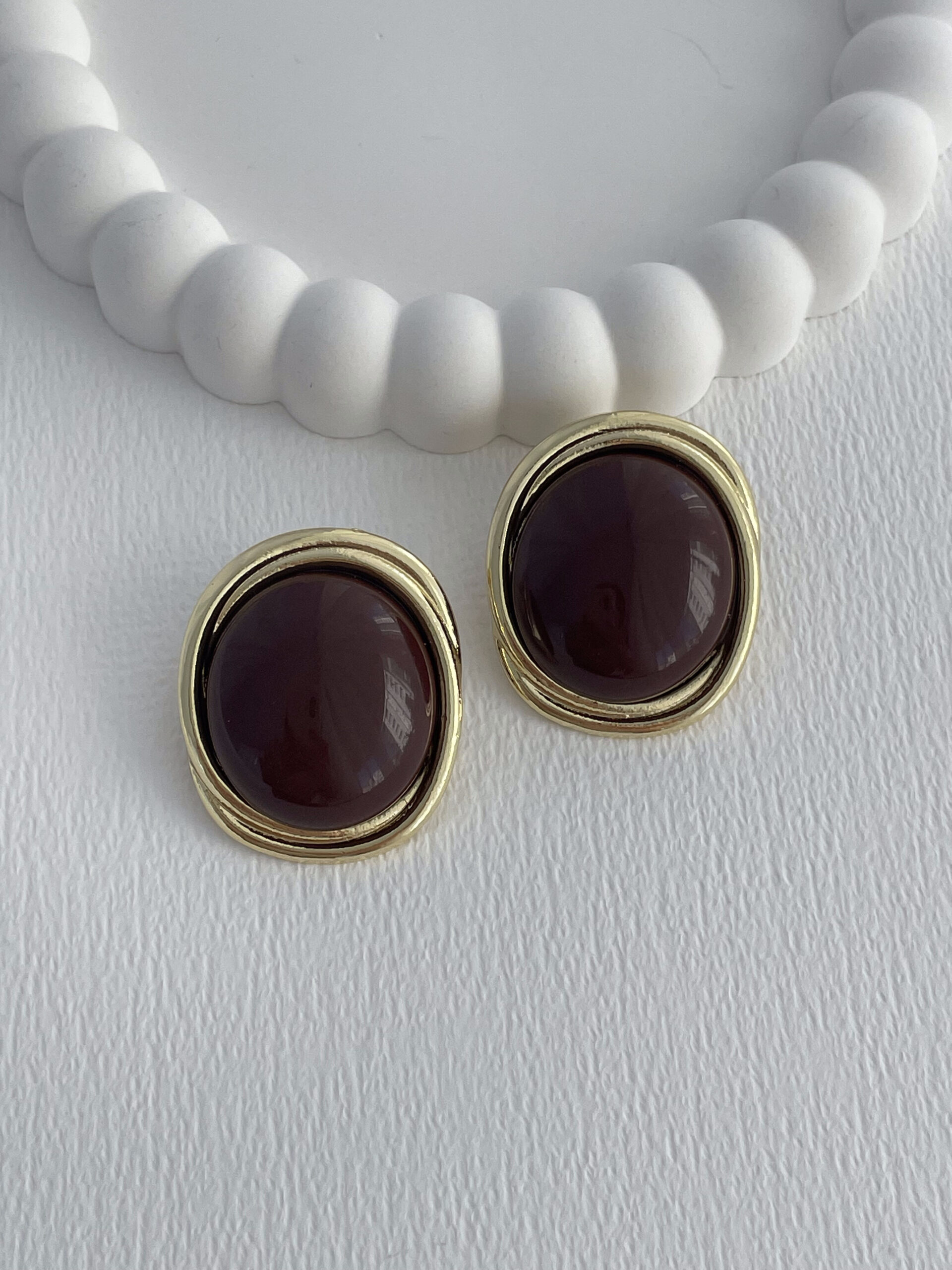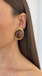 Özel Seri Kahverengi Kemik Detay Top Tasarım Gold Küpe