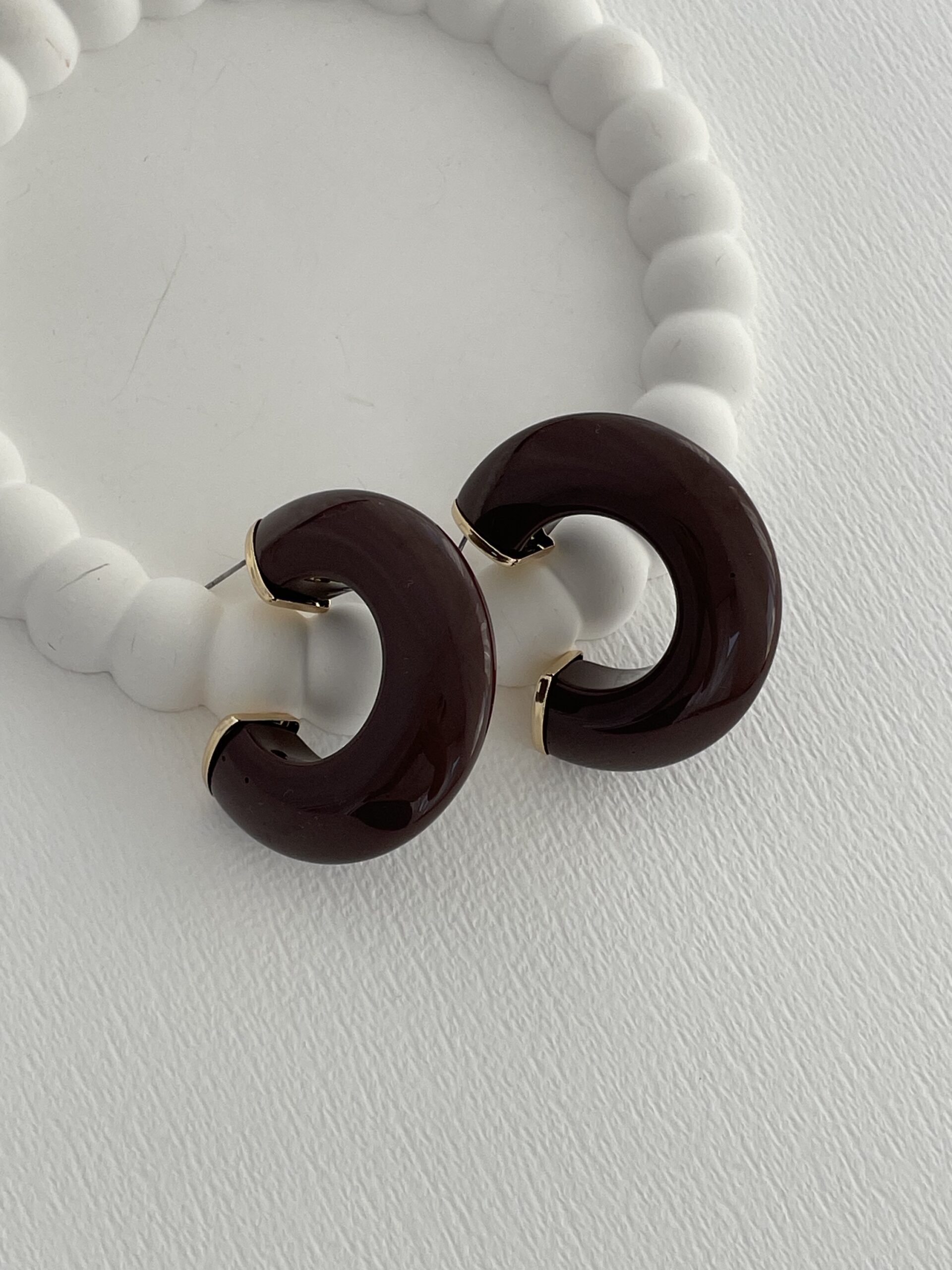 Özel Seri Kahverengi Kemik Halka Tasarım ZR Model Gold Küpe