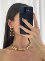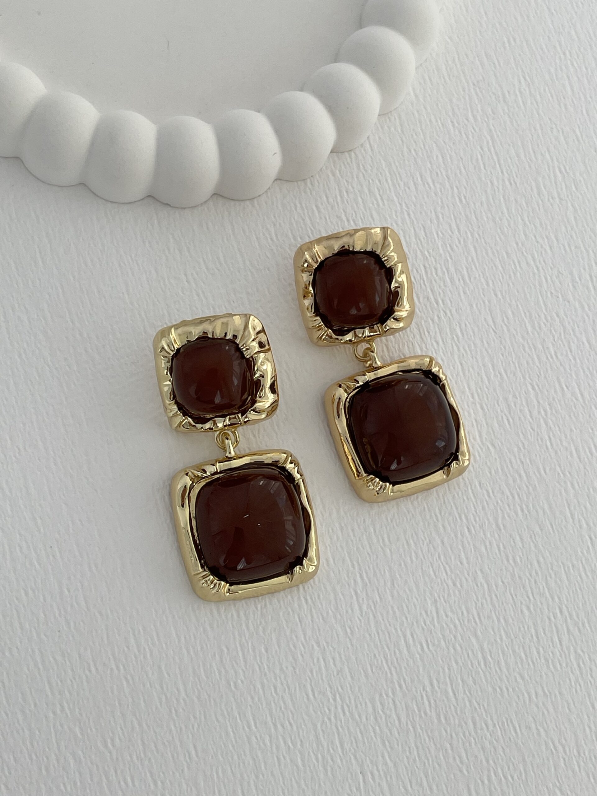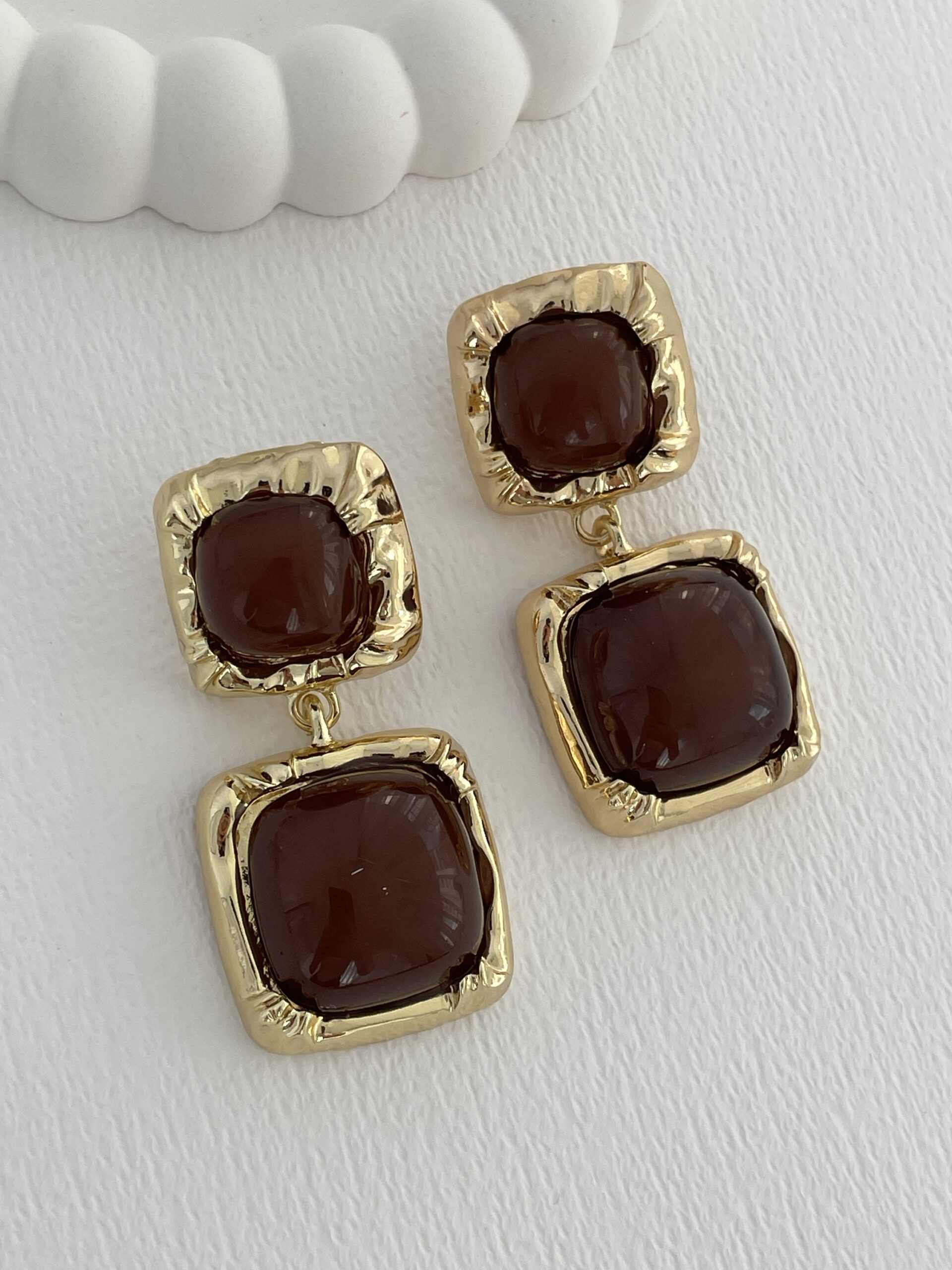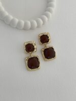 Özel Seri Kahverengi Kemik İkili Kare Tasarım Gold Küpe
