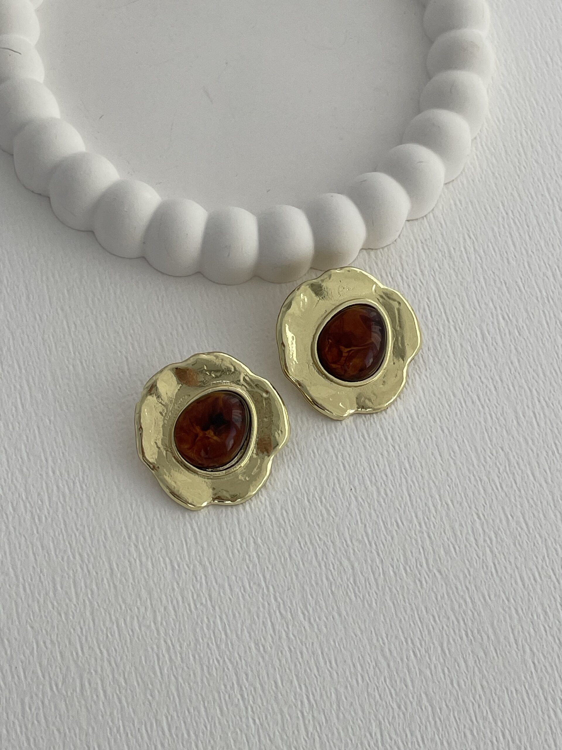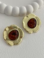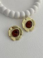 Özel Seri Kahverengi Kemik Oval Soyut Tasarım Gold Küpe