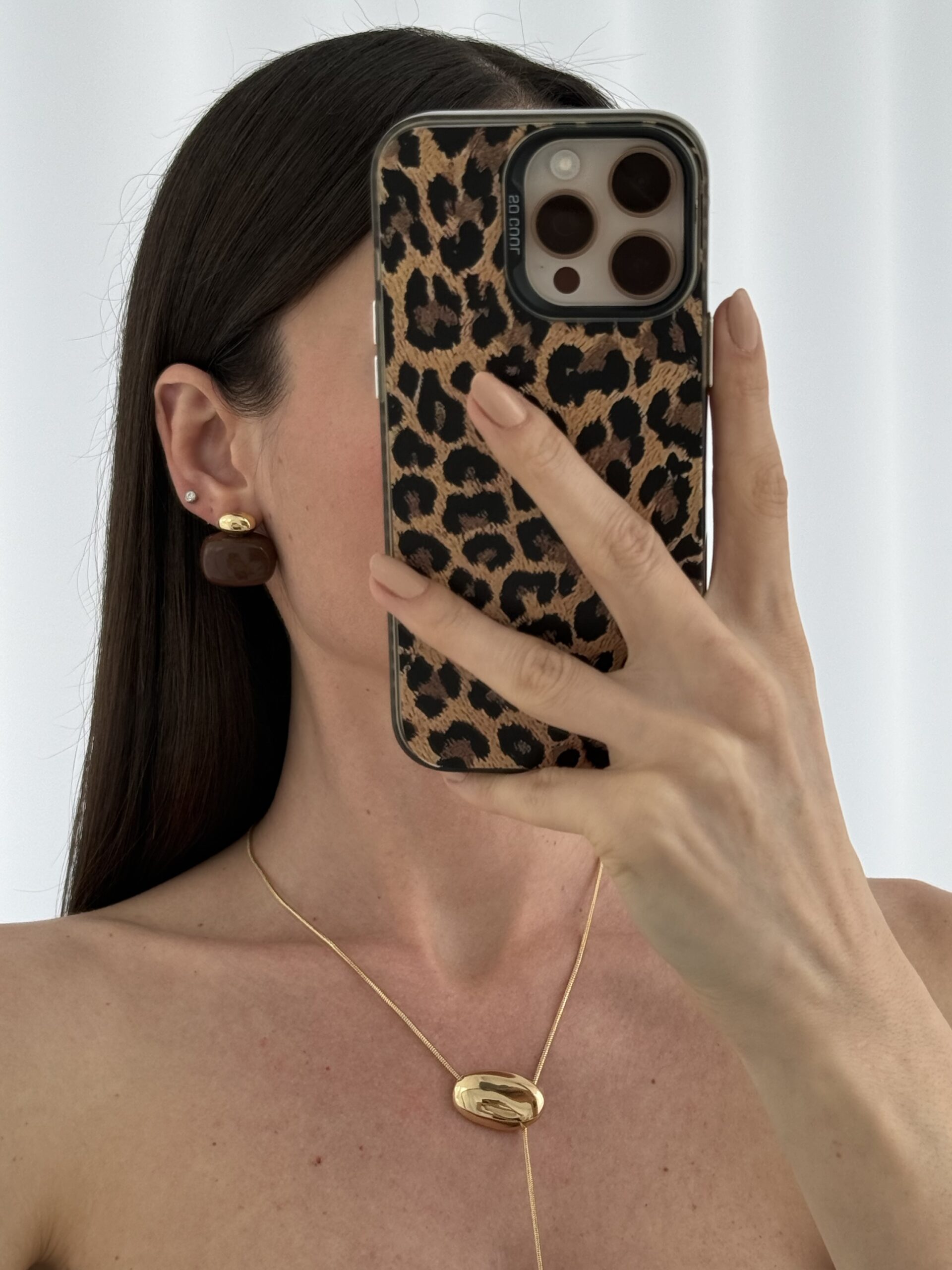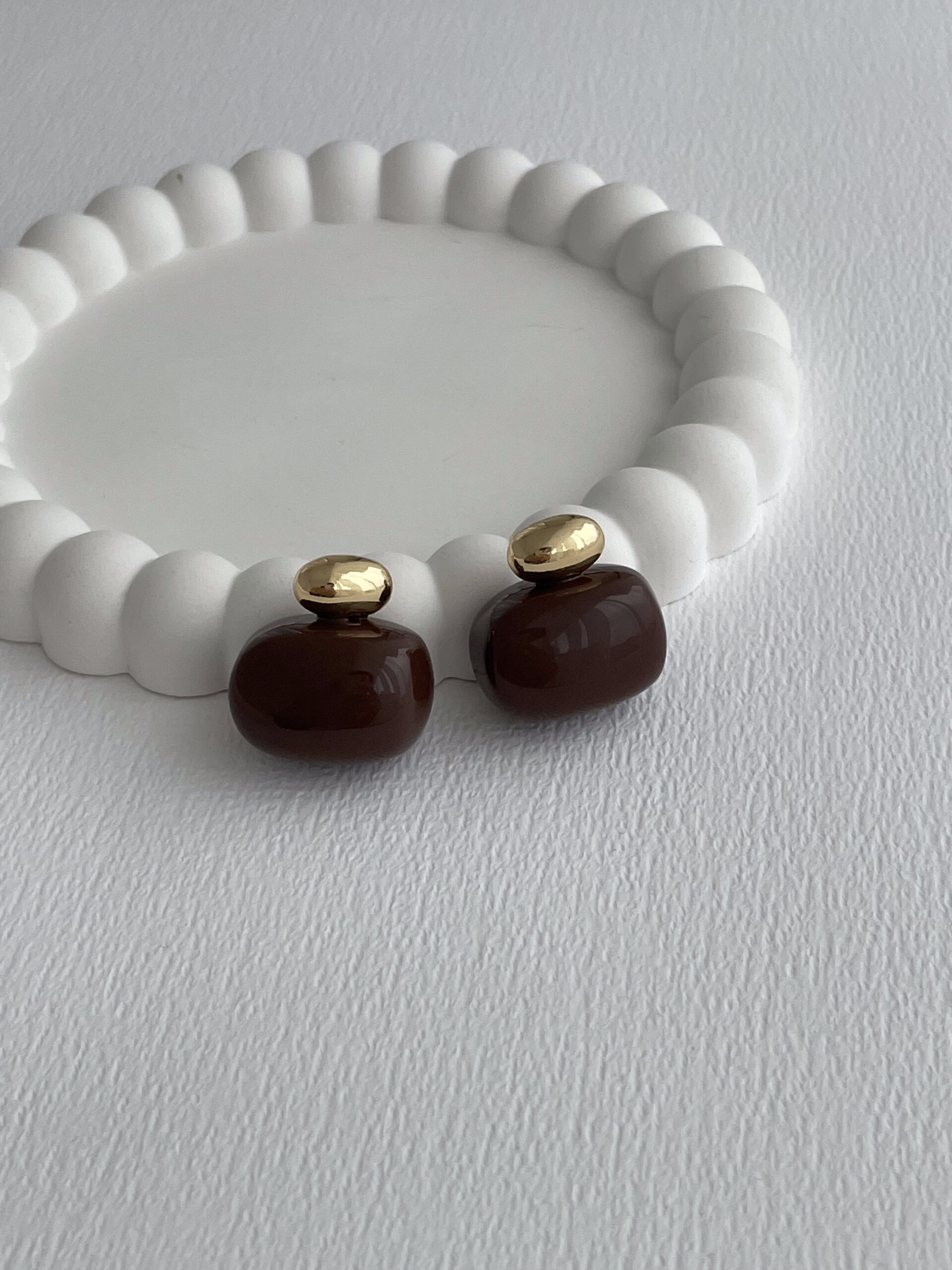 Özel Seri Kahverengi Kemik Top Detay Gold Küpe