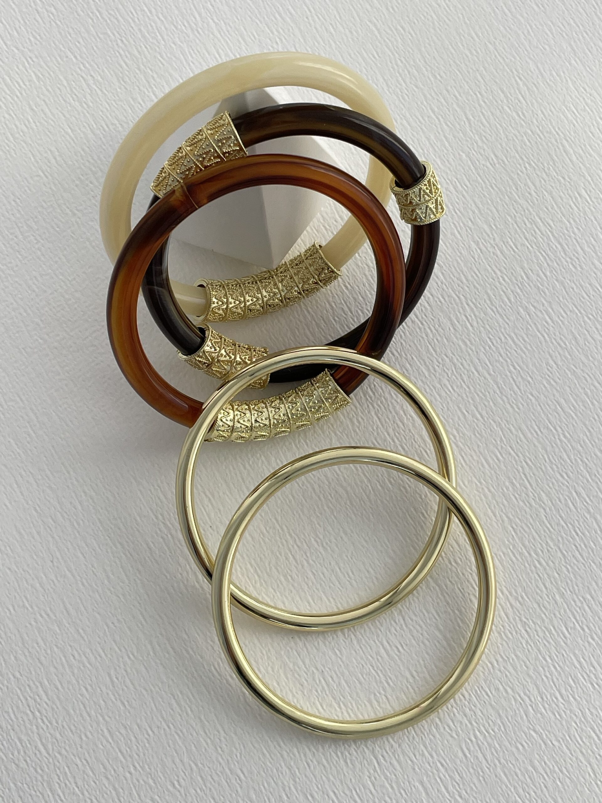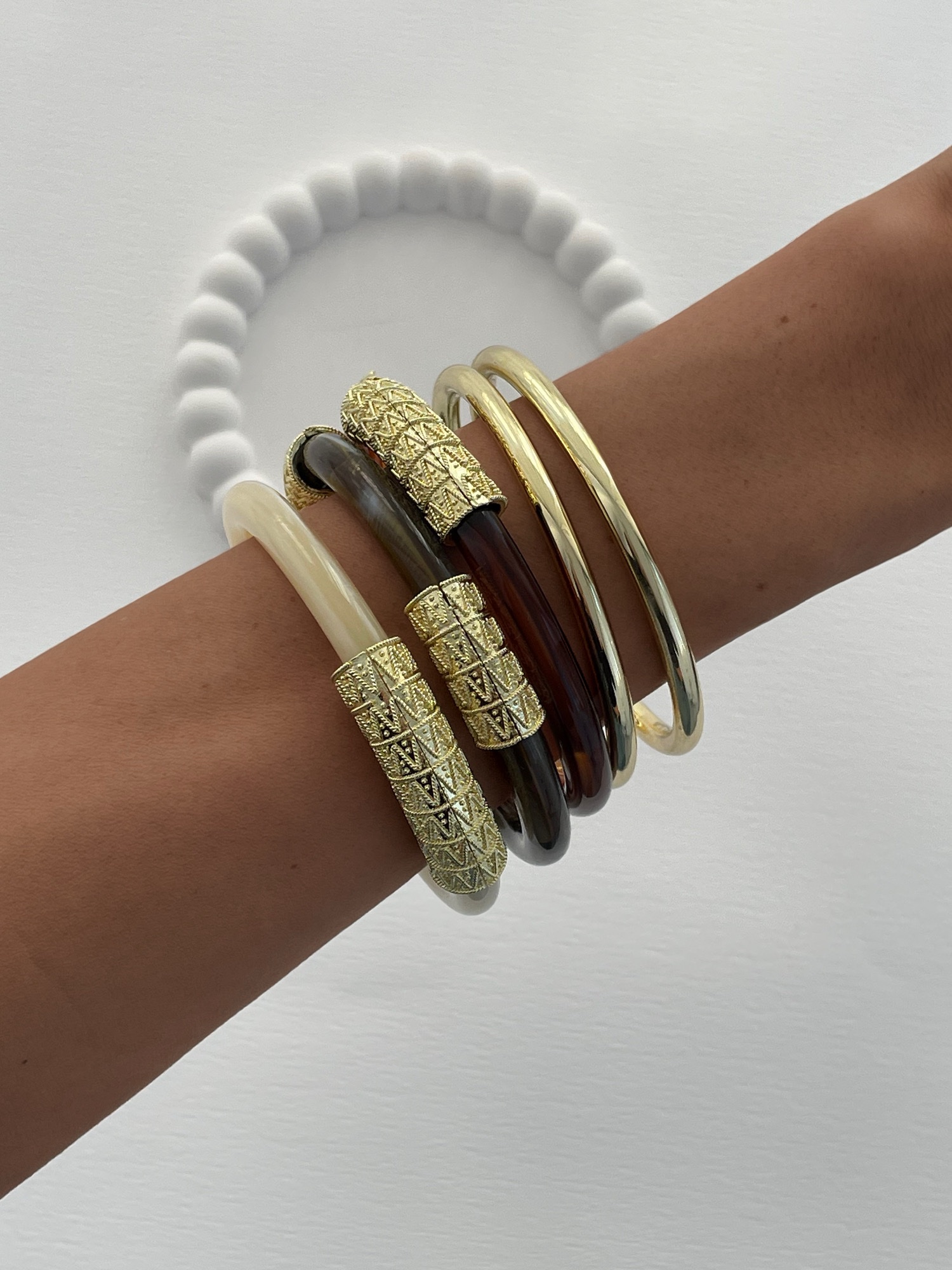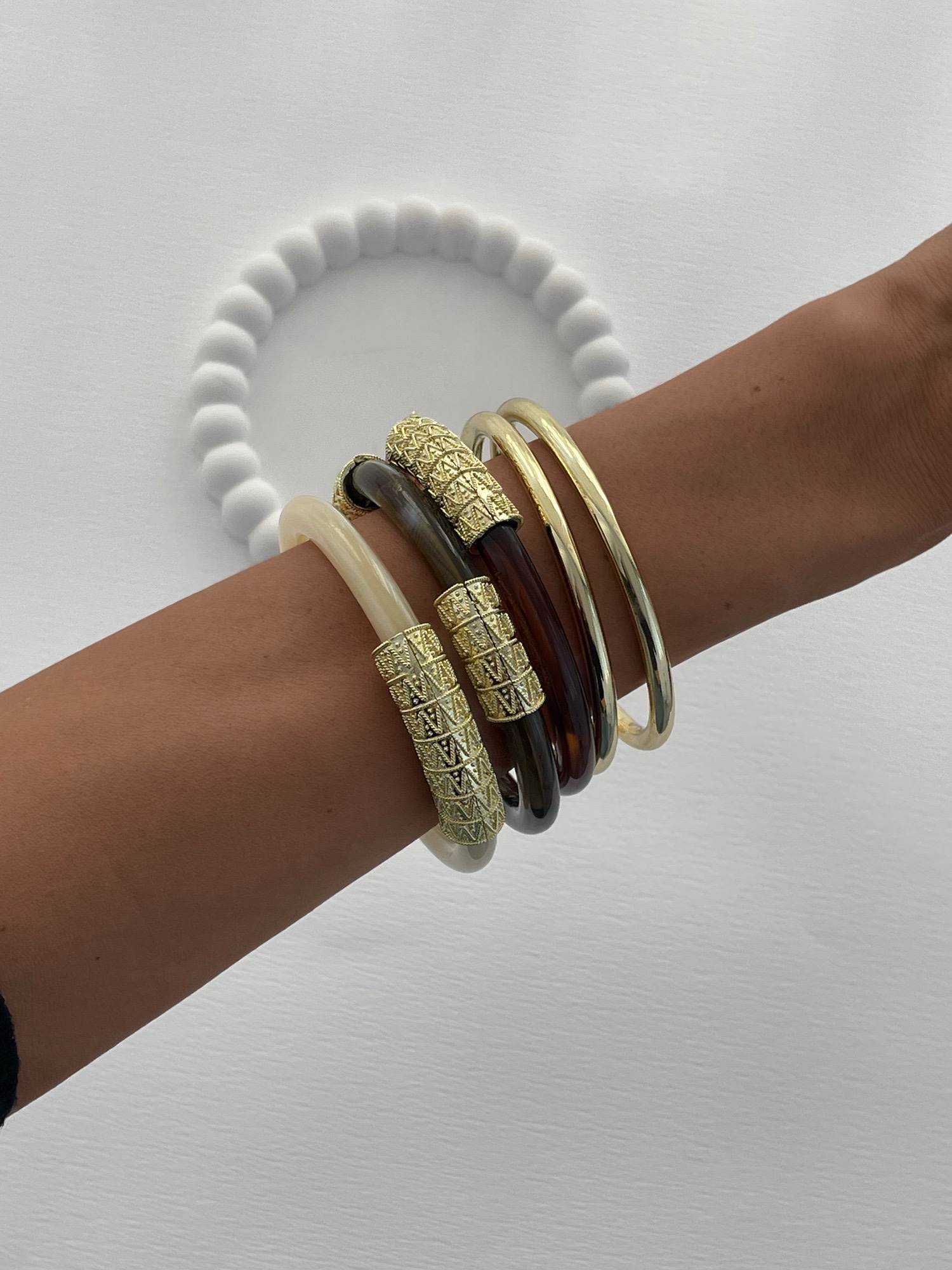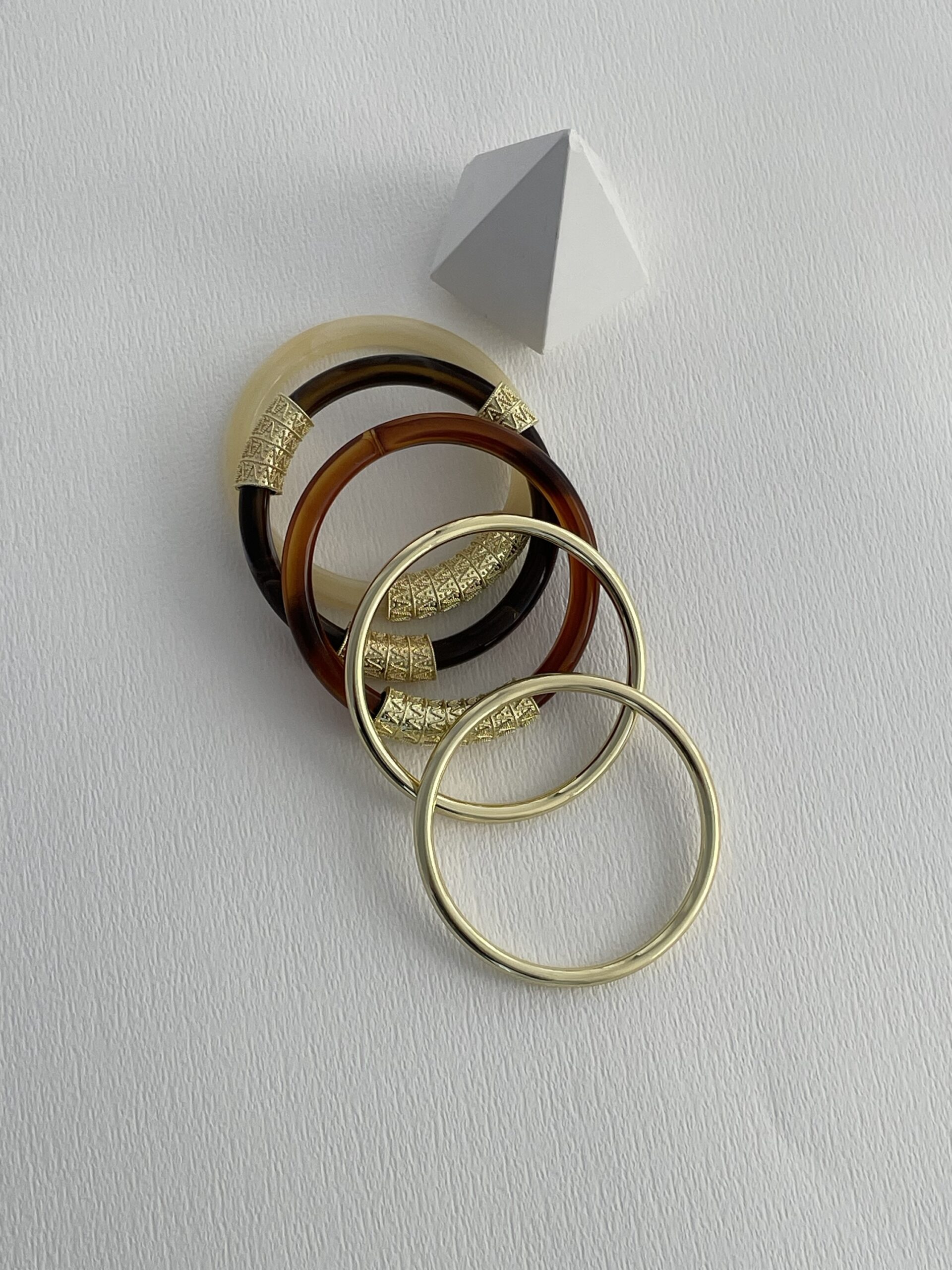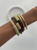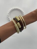 Özel Seri Kahverengi & Krem ZR model Çoklu Gold Bileklik Seti