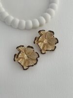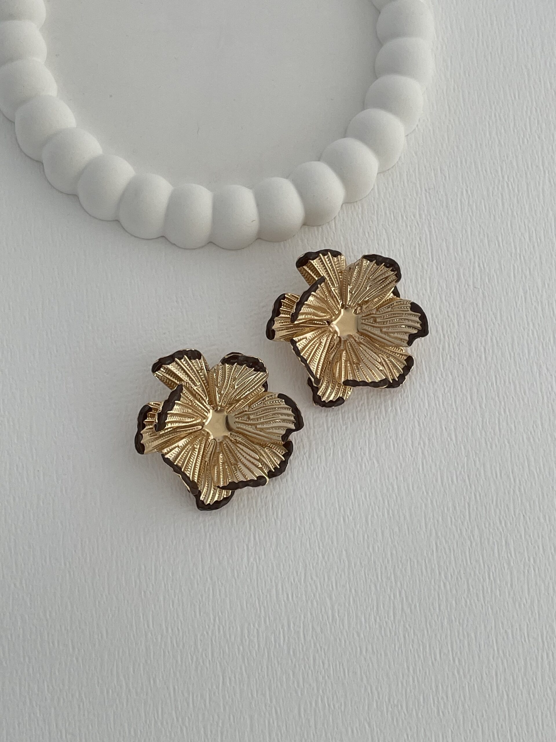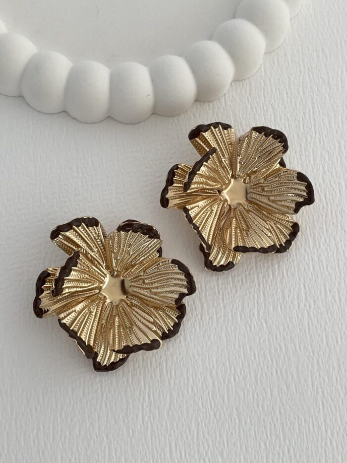 Özel Seri Kahverengi Mineli Çiçek Tasarım Gold Küpe