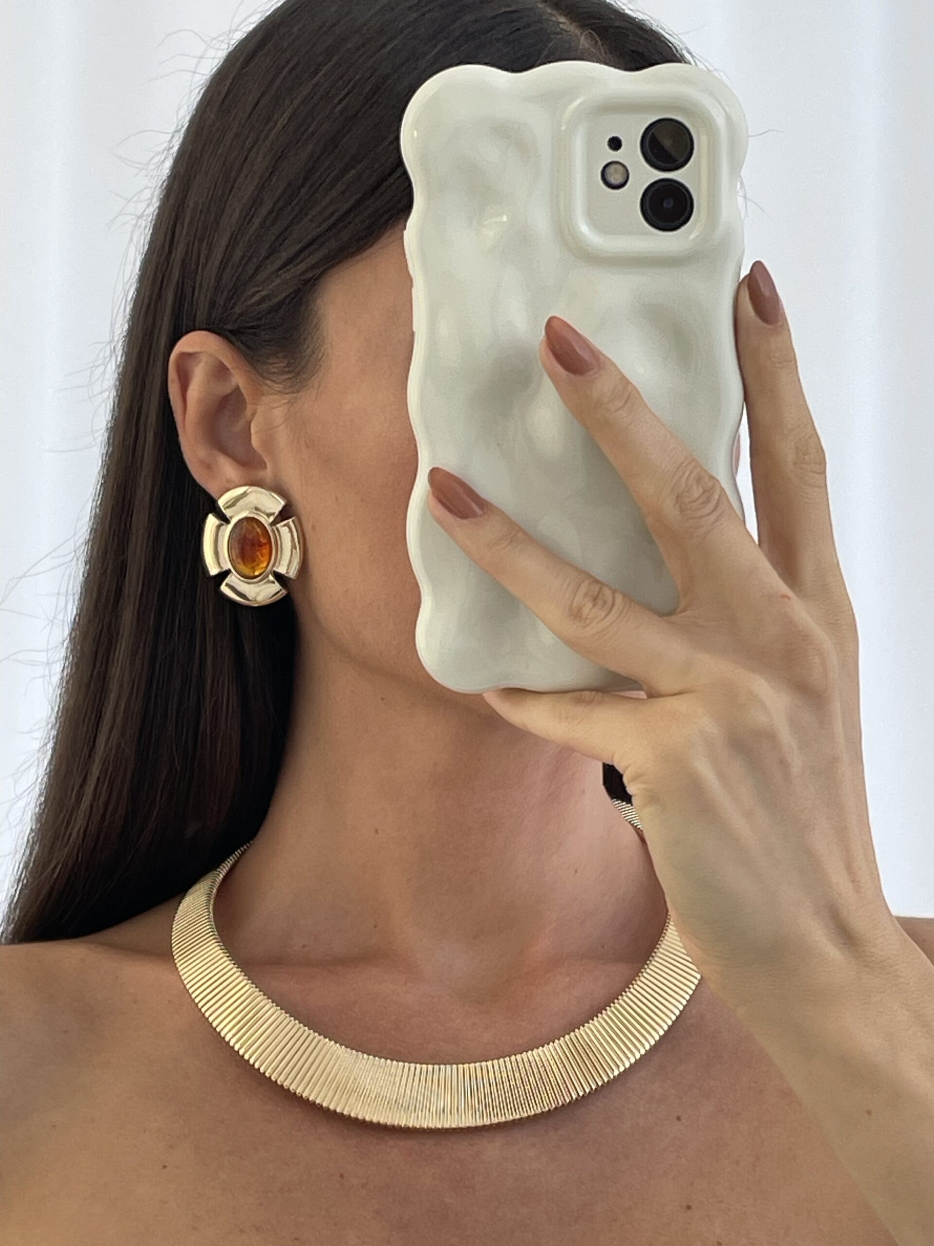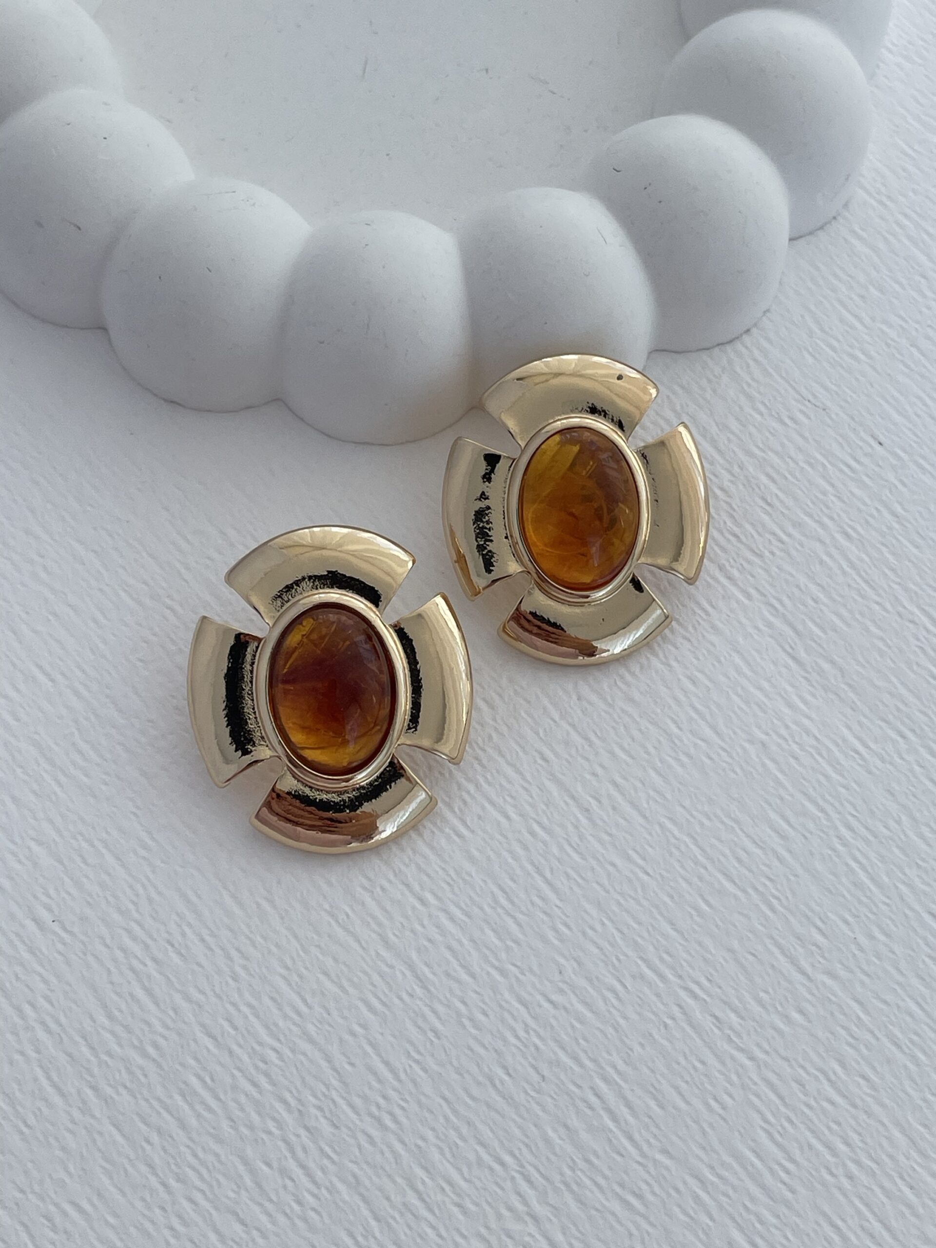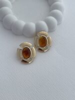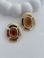 Özel Seri Kahverengi Mineli Çiçek Tasarım Gold Küpe