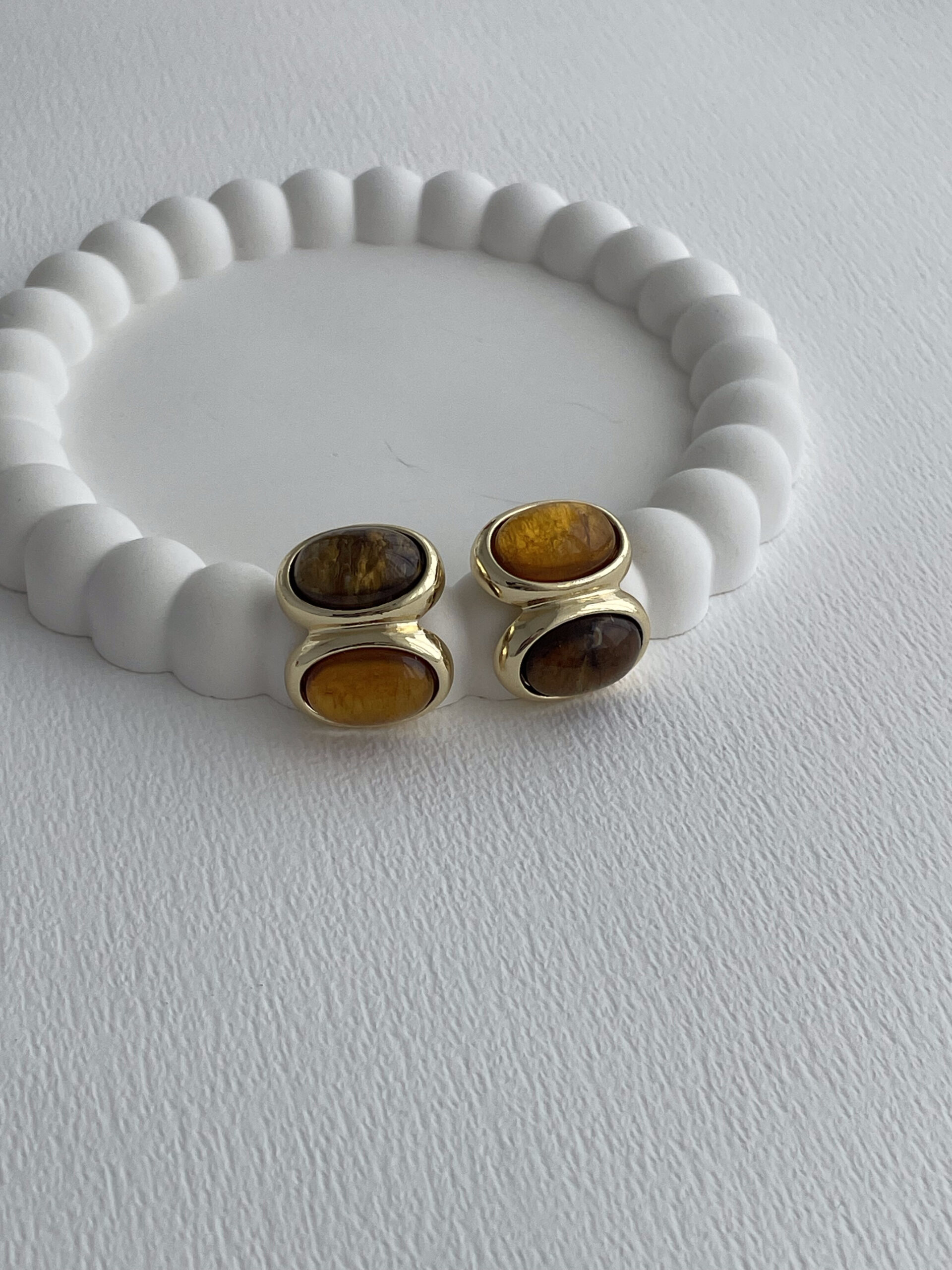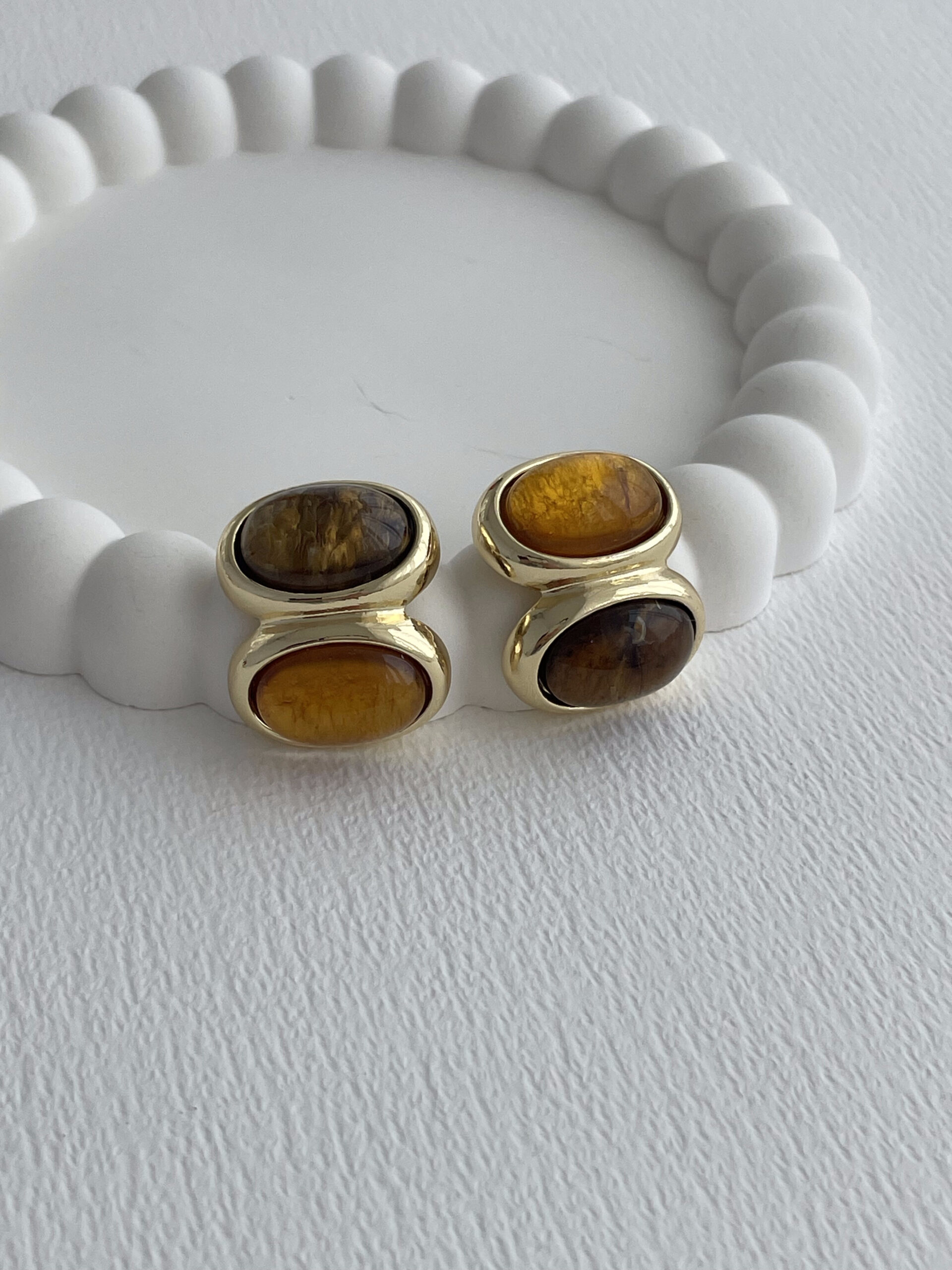 Özel Seri Kahverengi Mineli ikili Oval Tasarım Gold Küpe