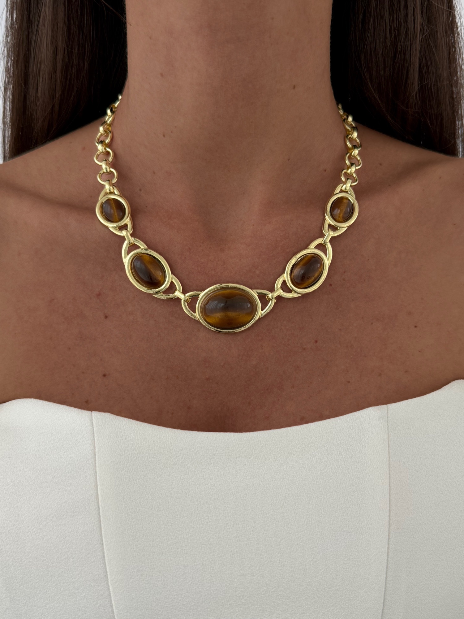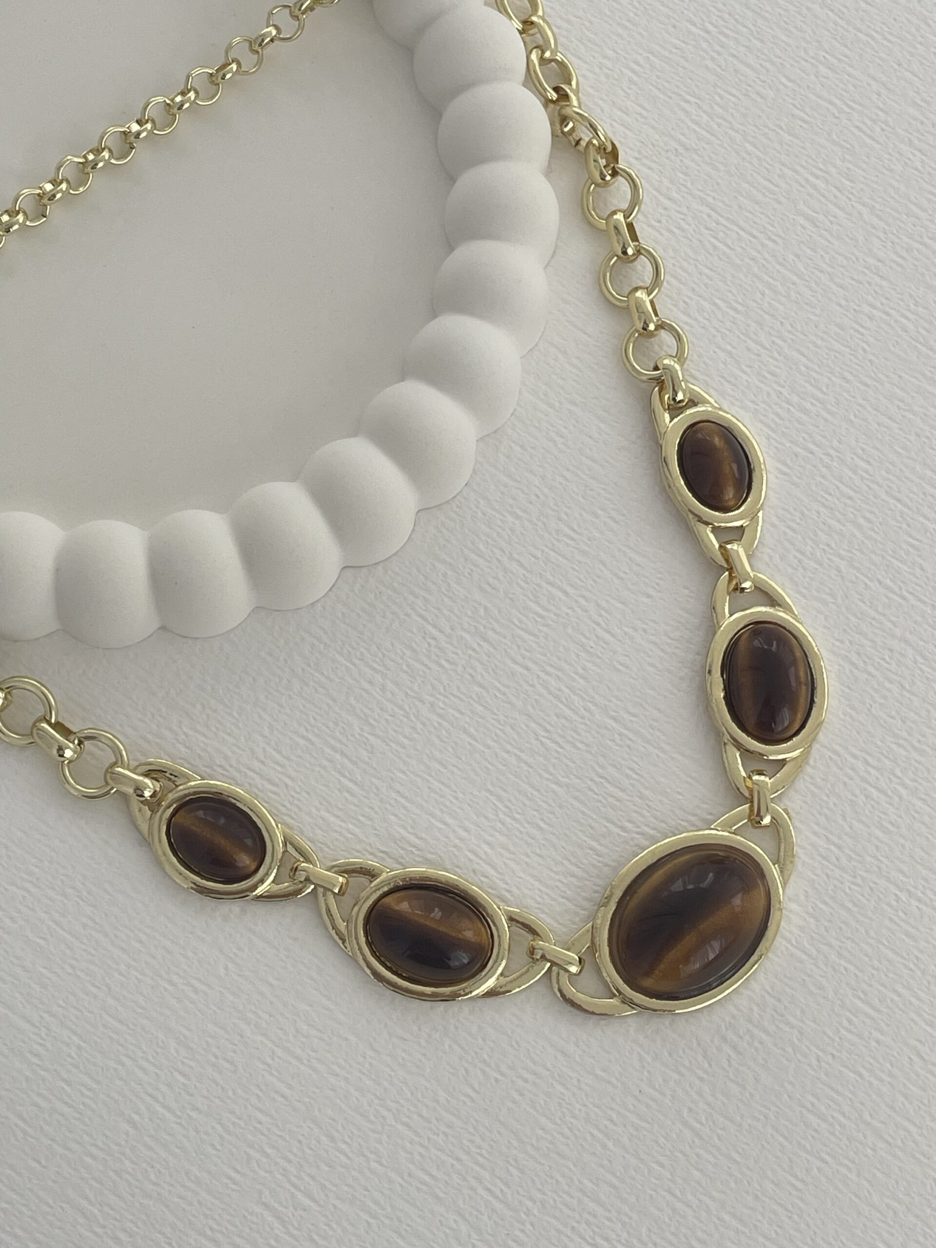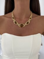 Özel Seri Kahverengi Mineli MNG Model Gold Kolye