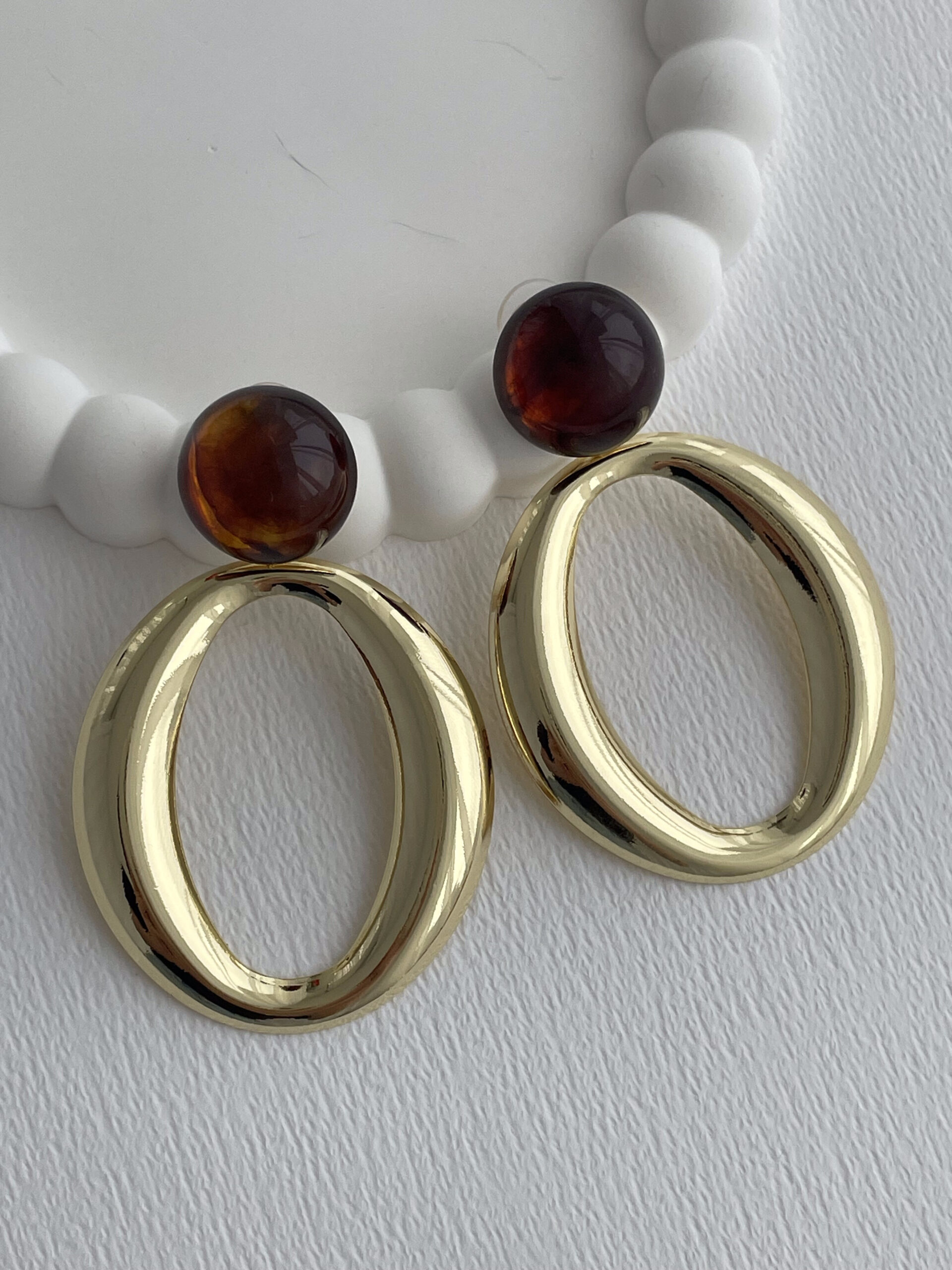 Özel Seri Kahverengi Mineli Ortası Boş Maksi Boy Gold Küpe