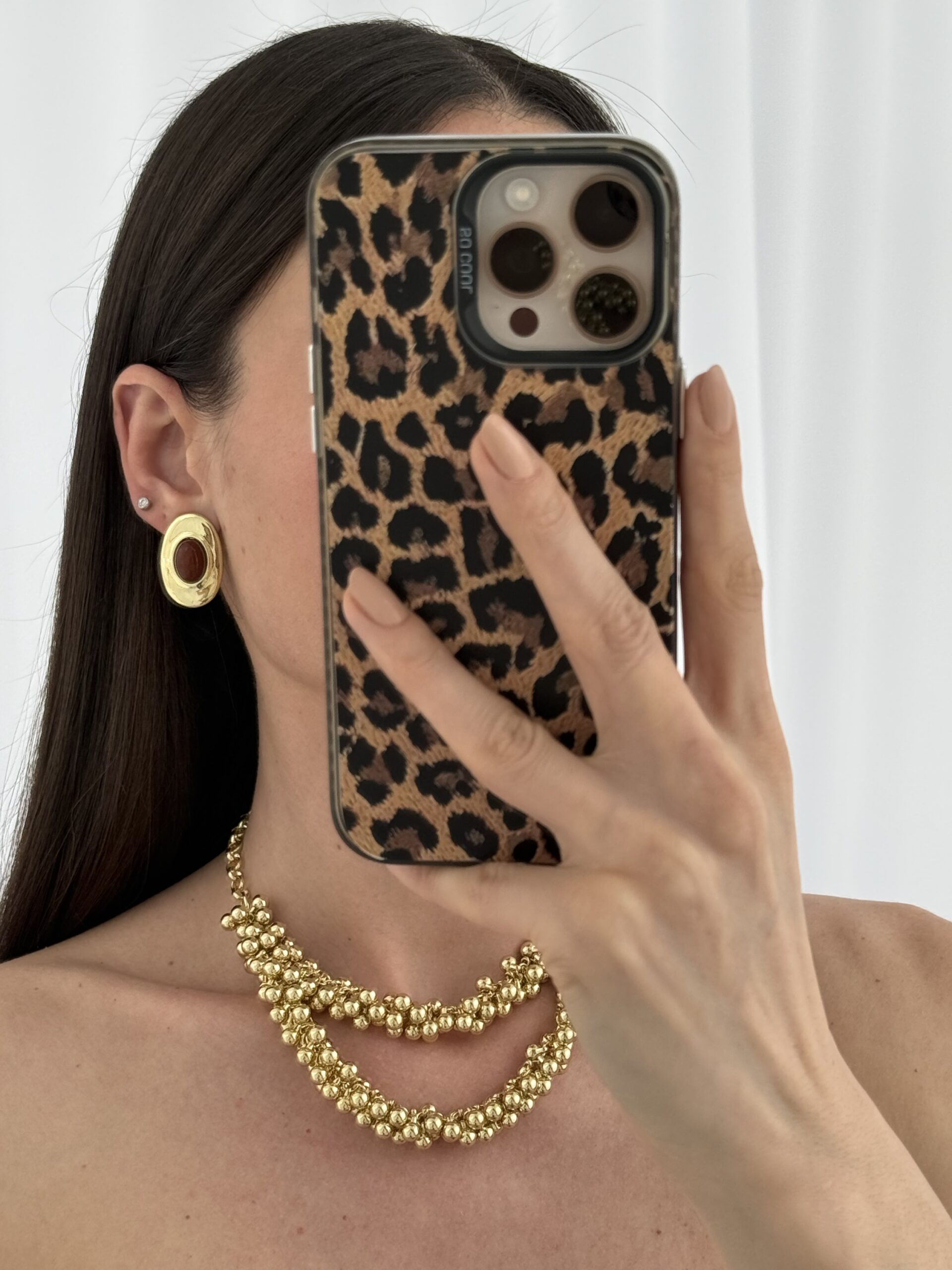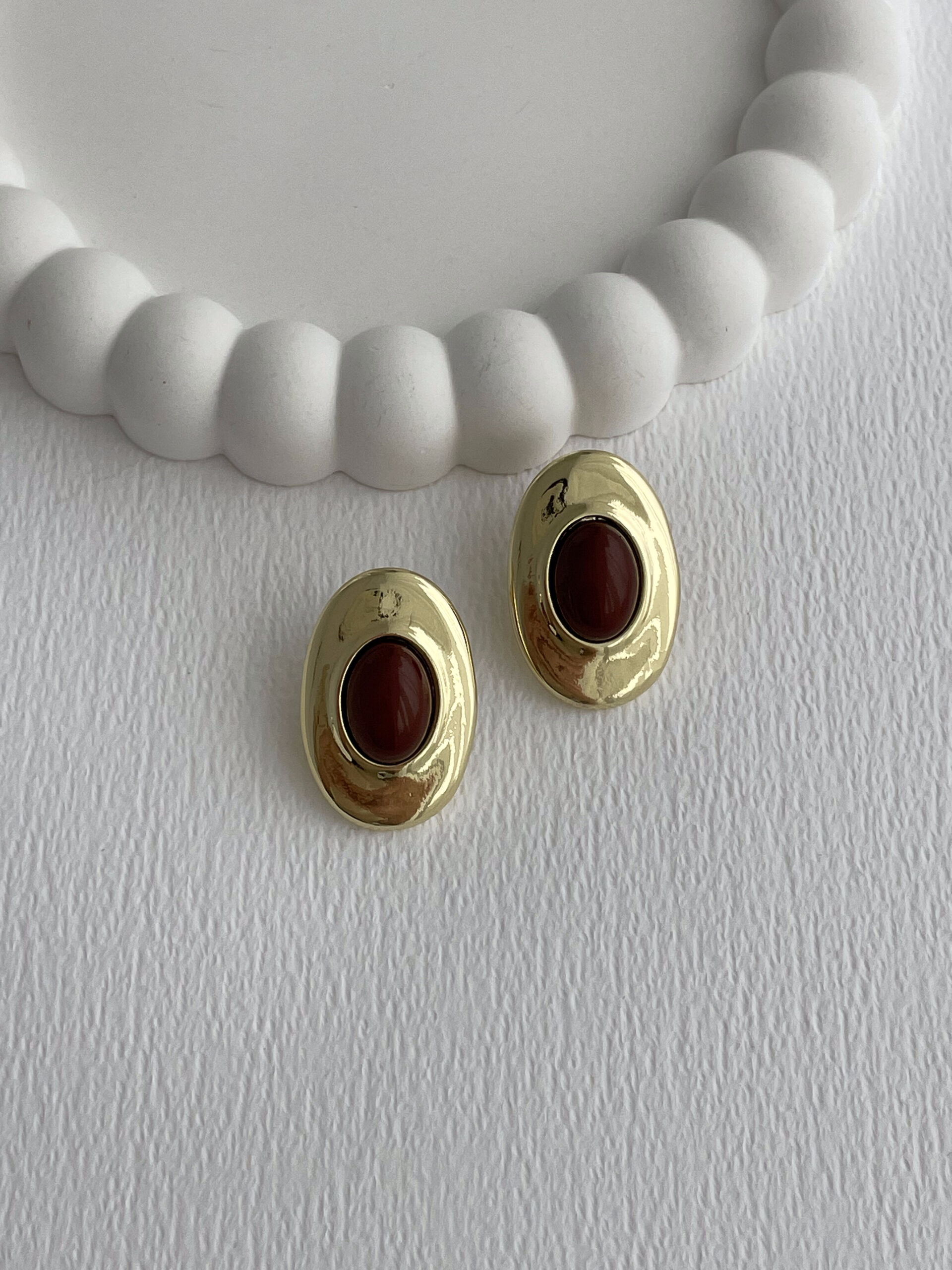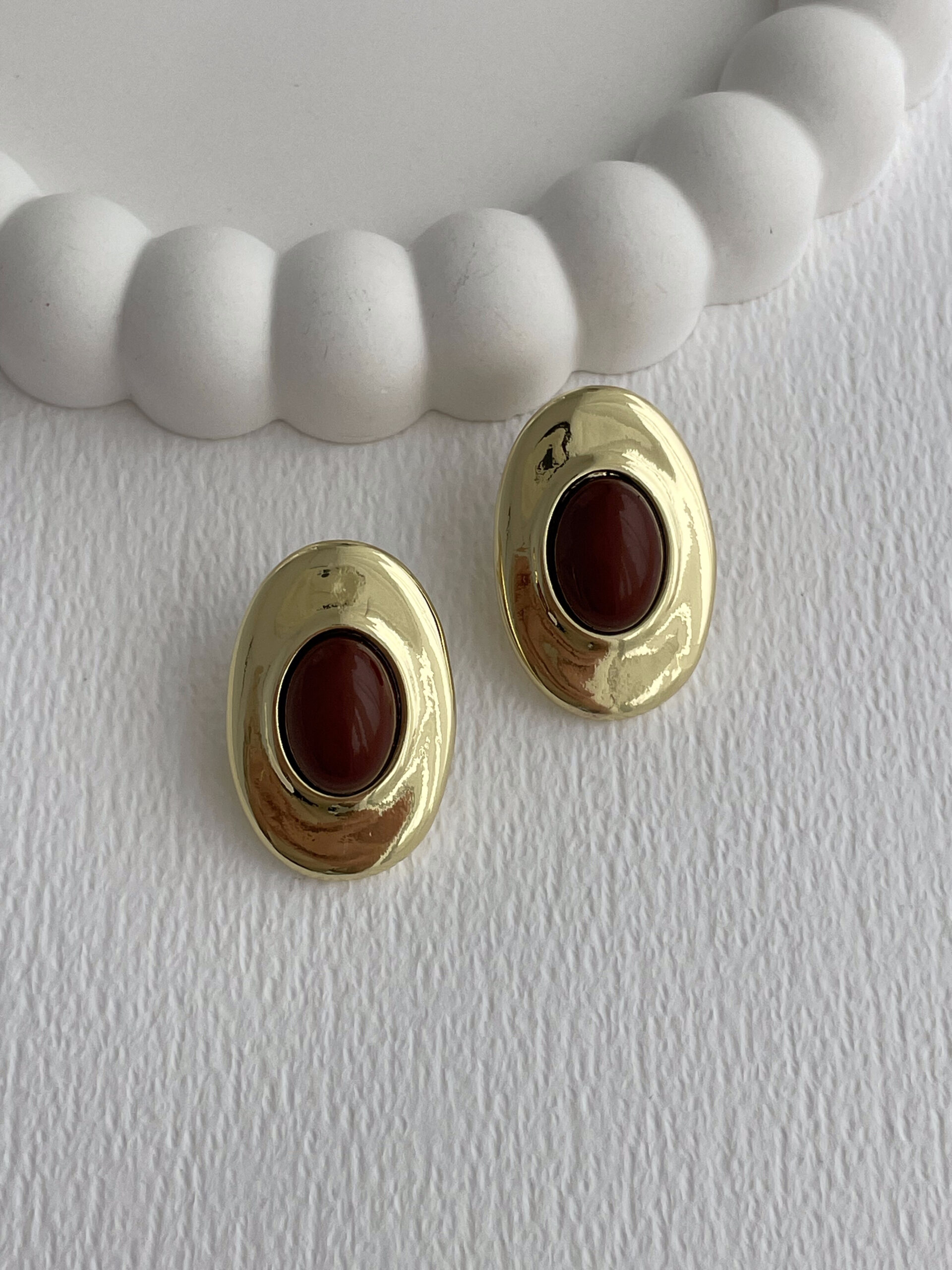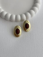 Özel Seri Kahverengi Mineli Oval Gold Küpe