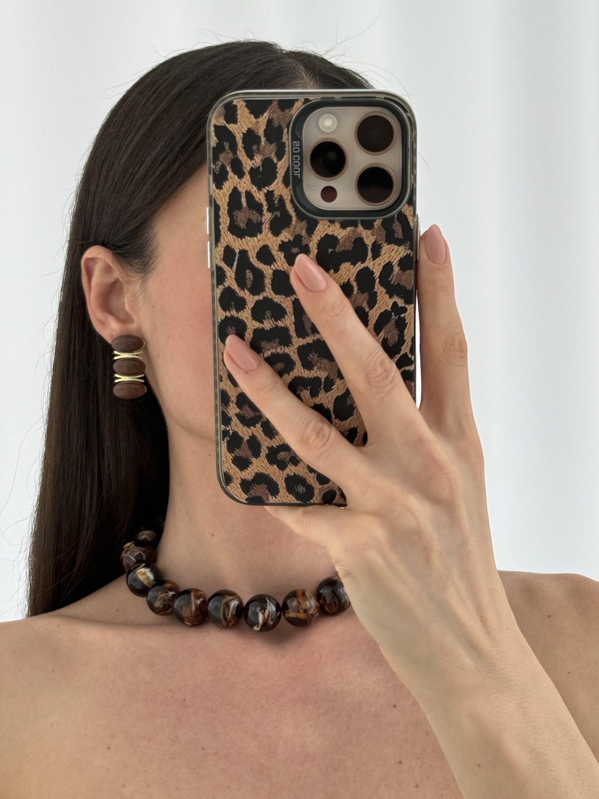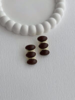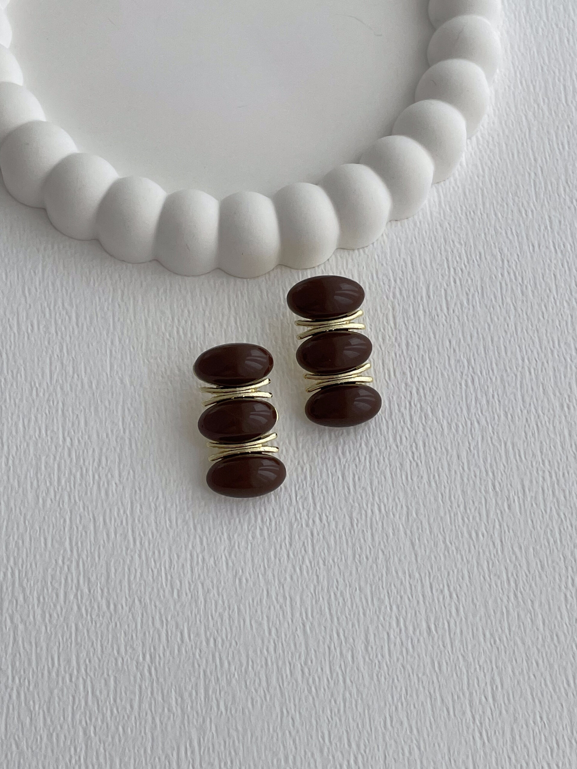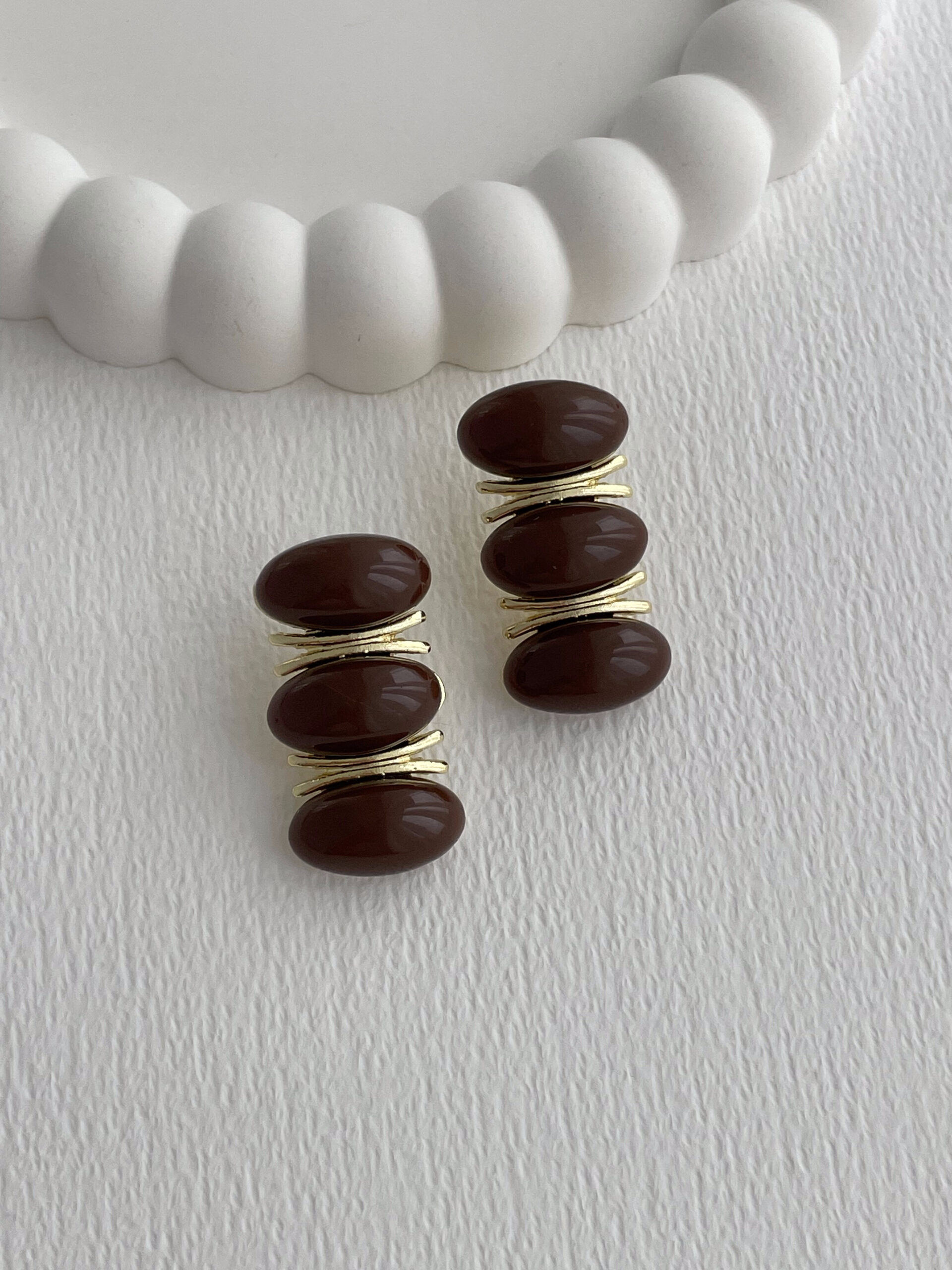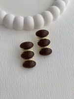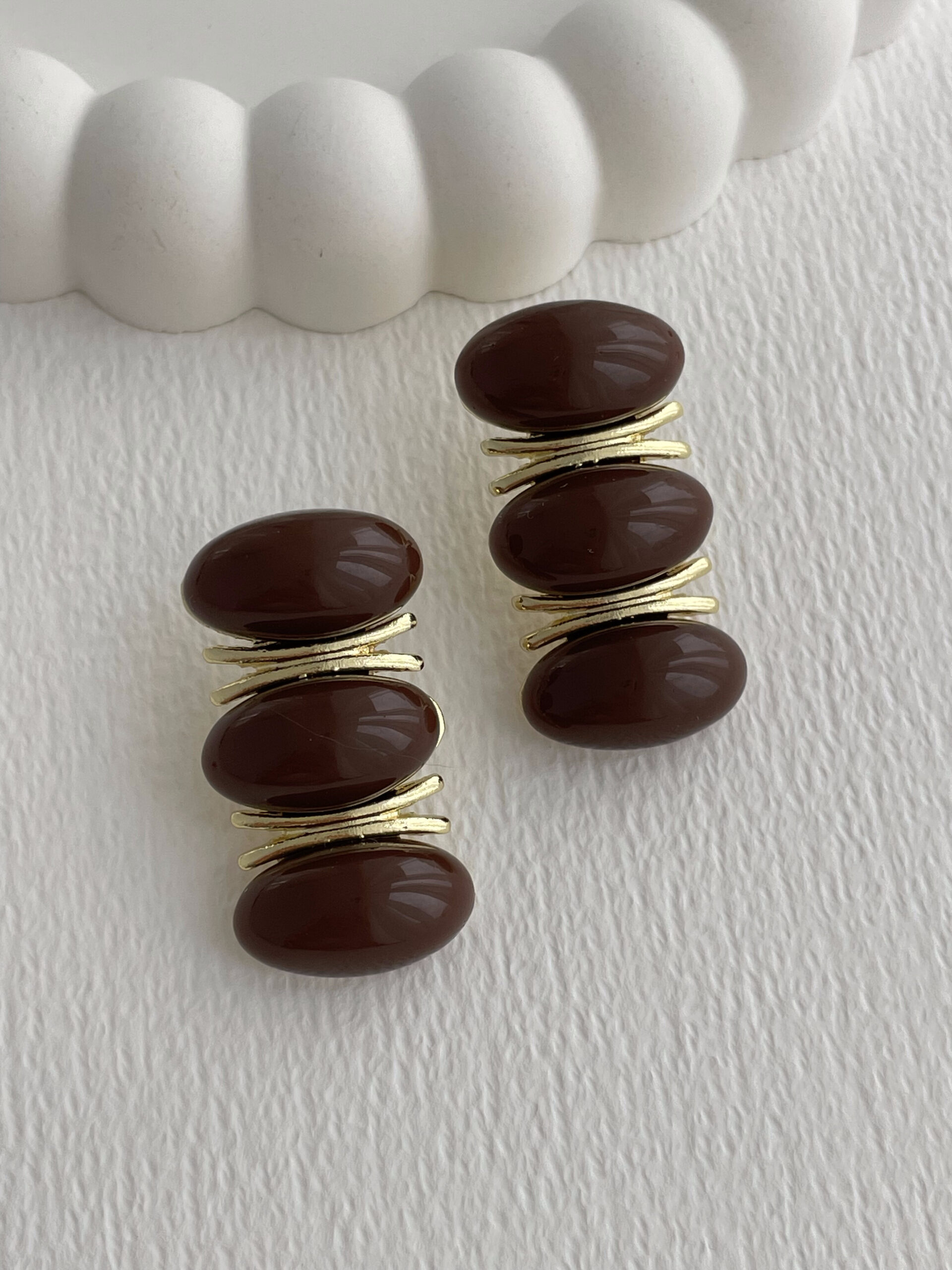 Özel Seri Kahverengi Mineli Oval Taş Tasarım Gold Küpe