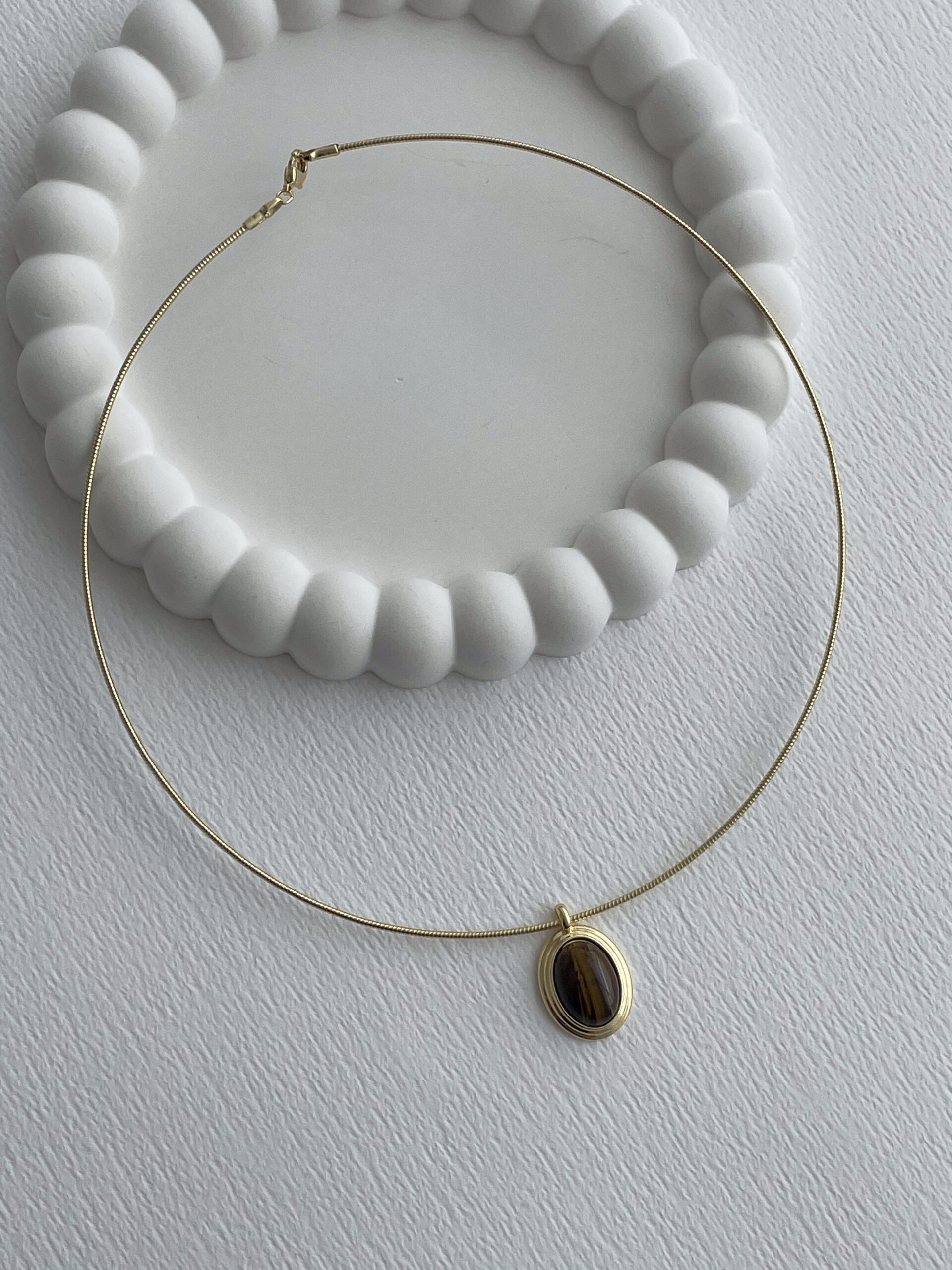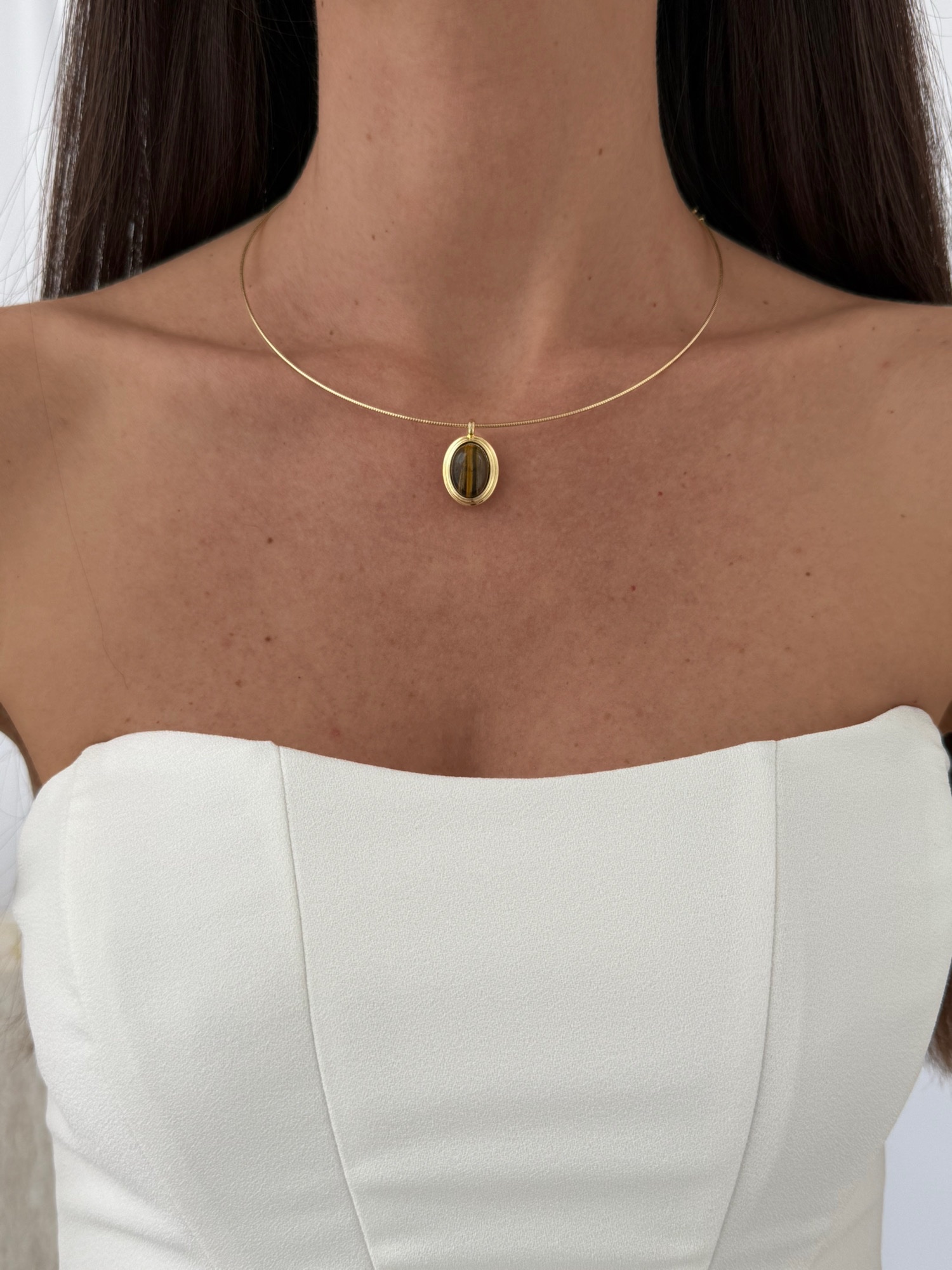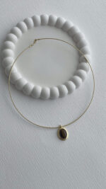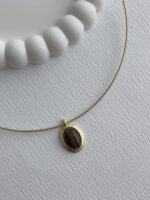 Özel Seri Kahverengi Mineli Oval Tasarım Gold Choker Kolye