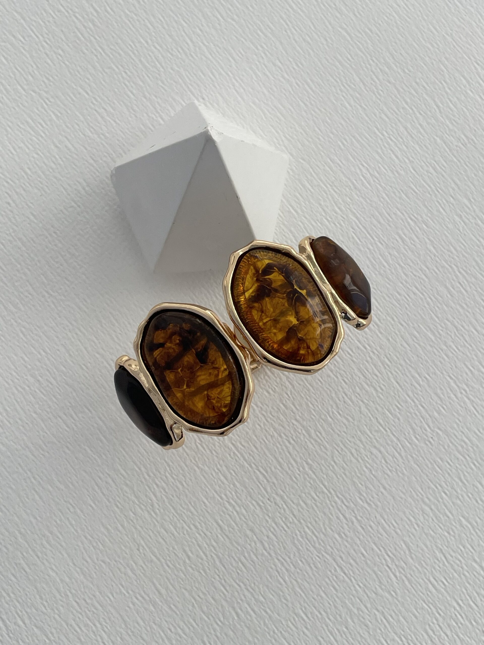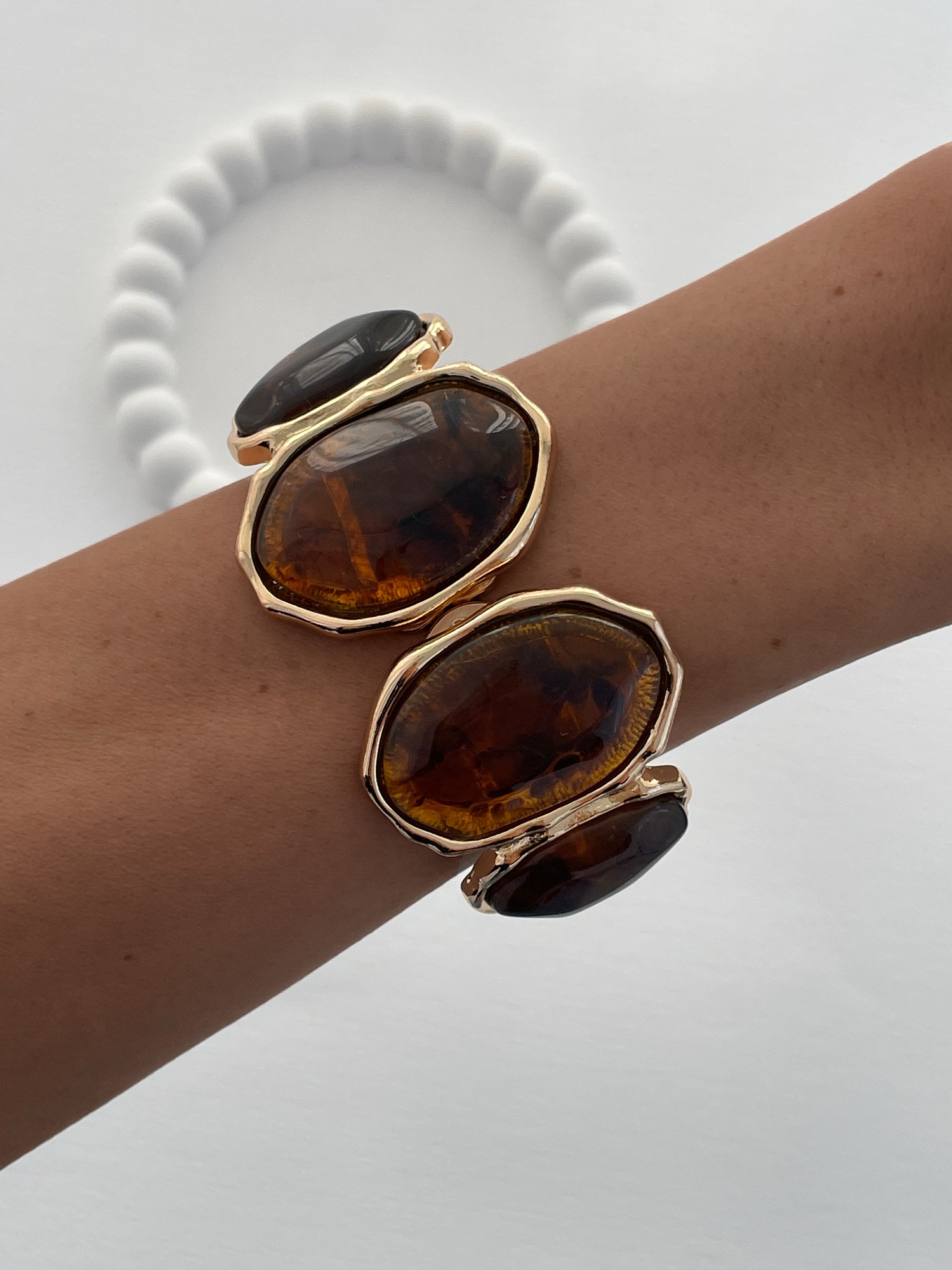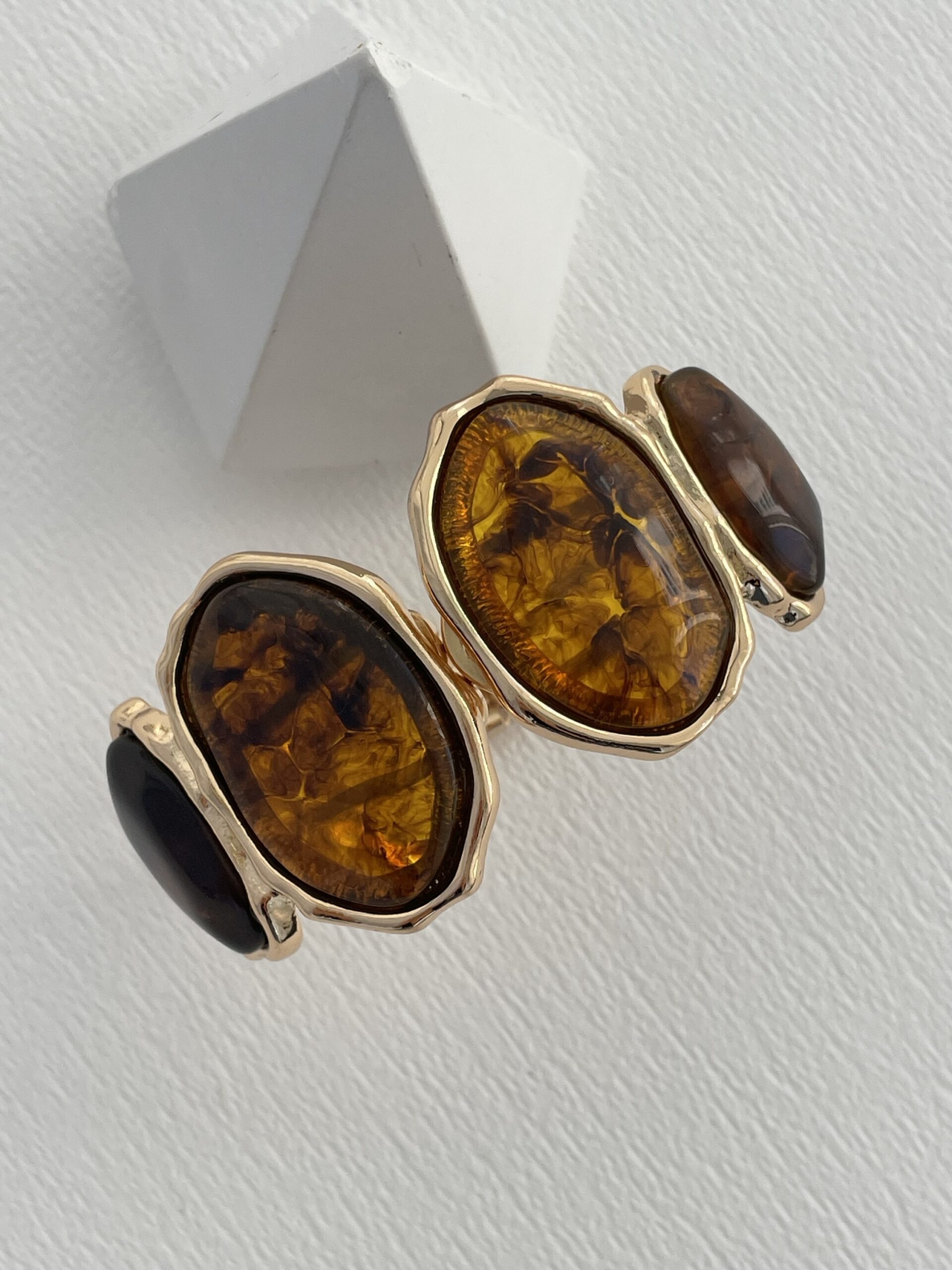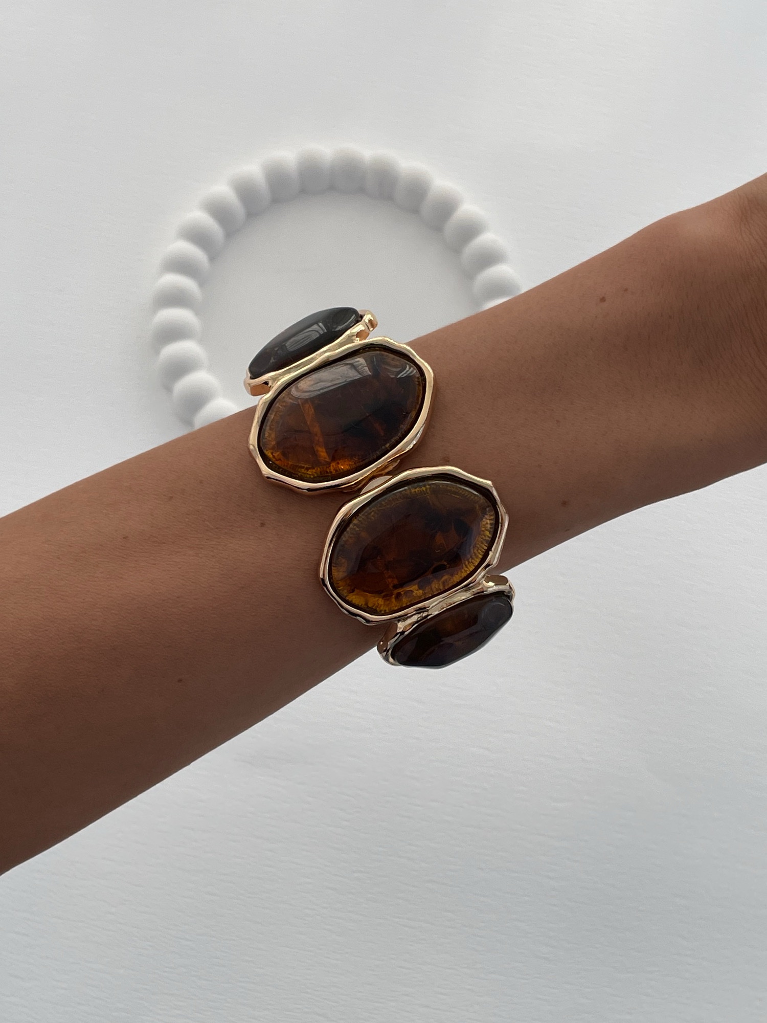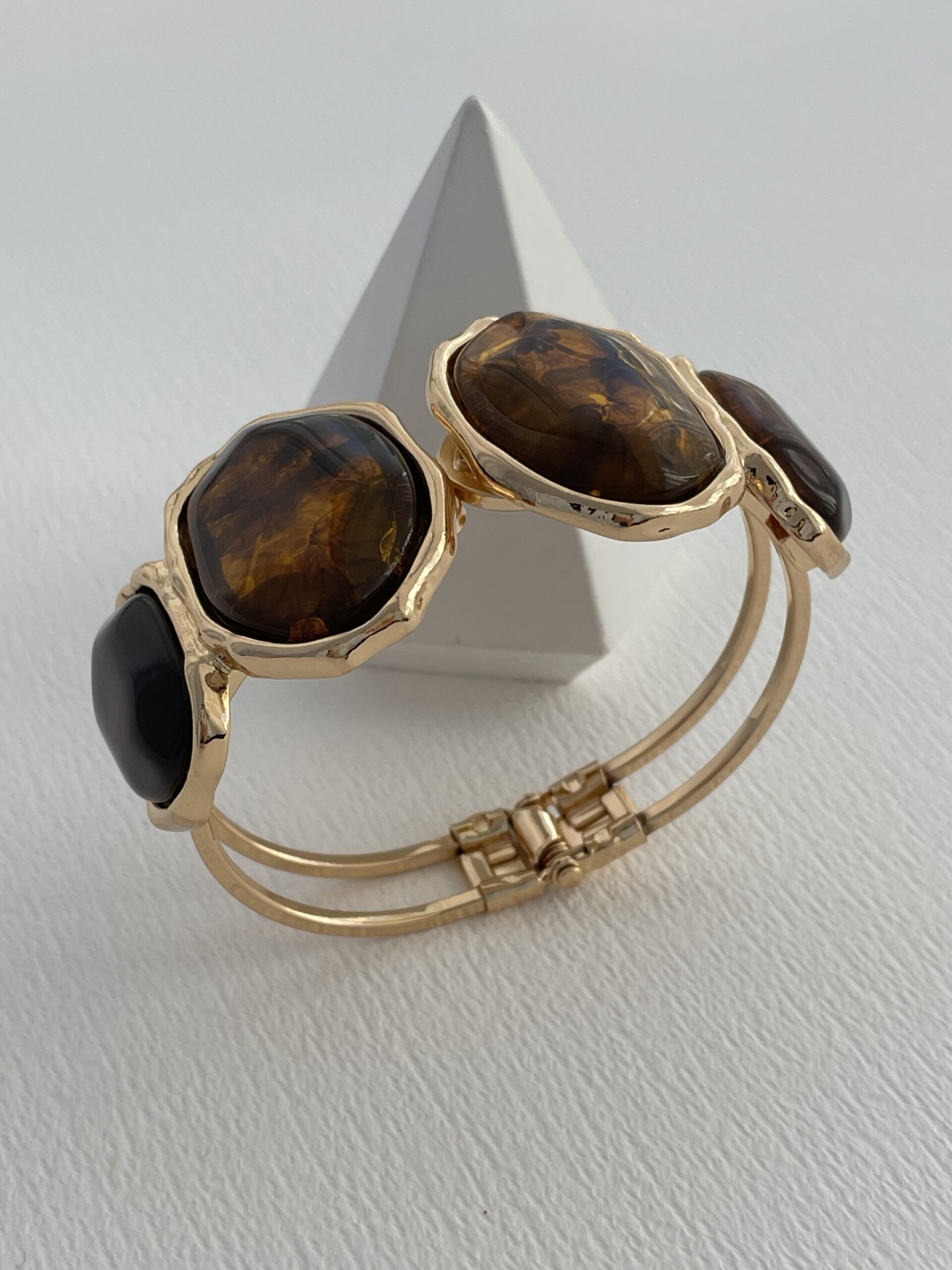 Özel Seri Kahverengi Mineli Oval Tasarım Gold Kelepçe Bileklik