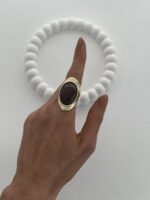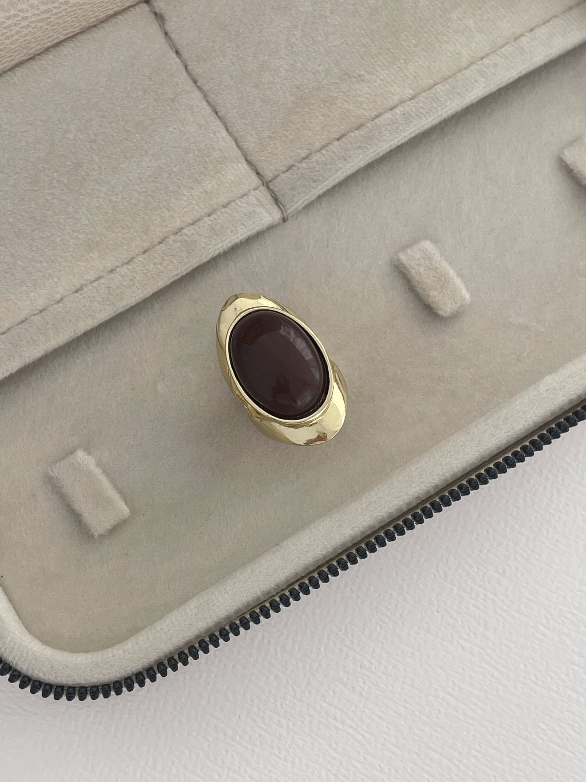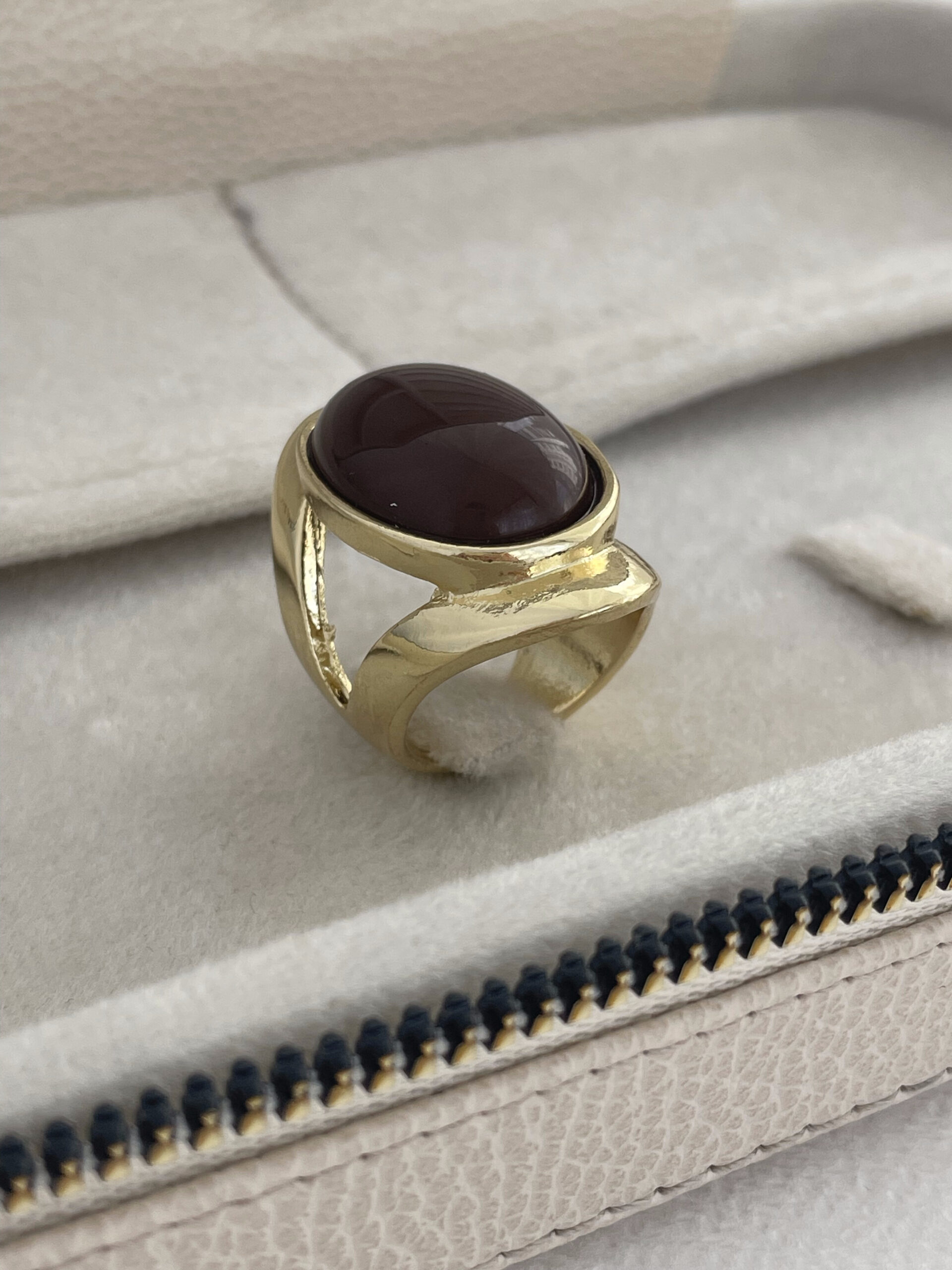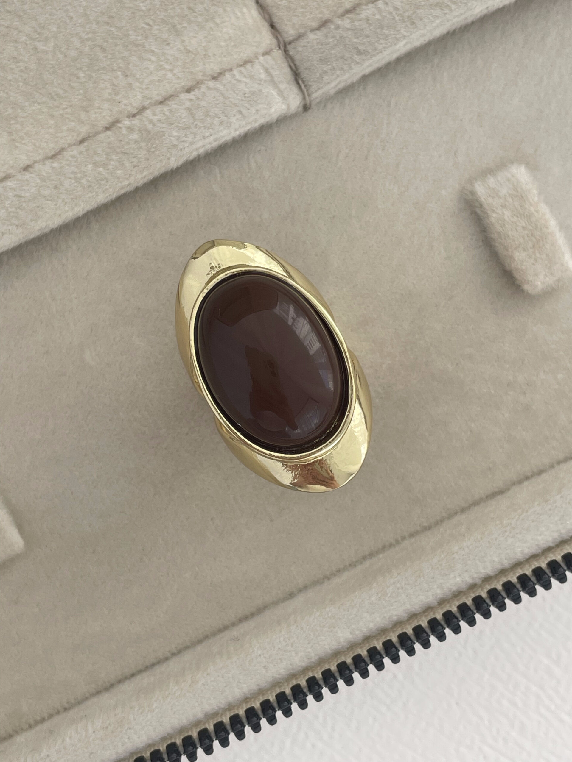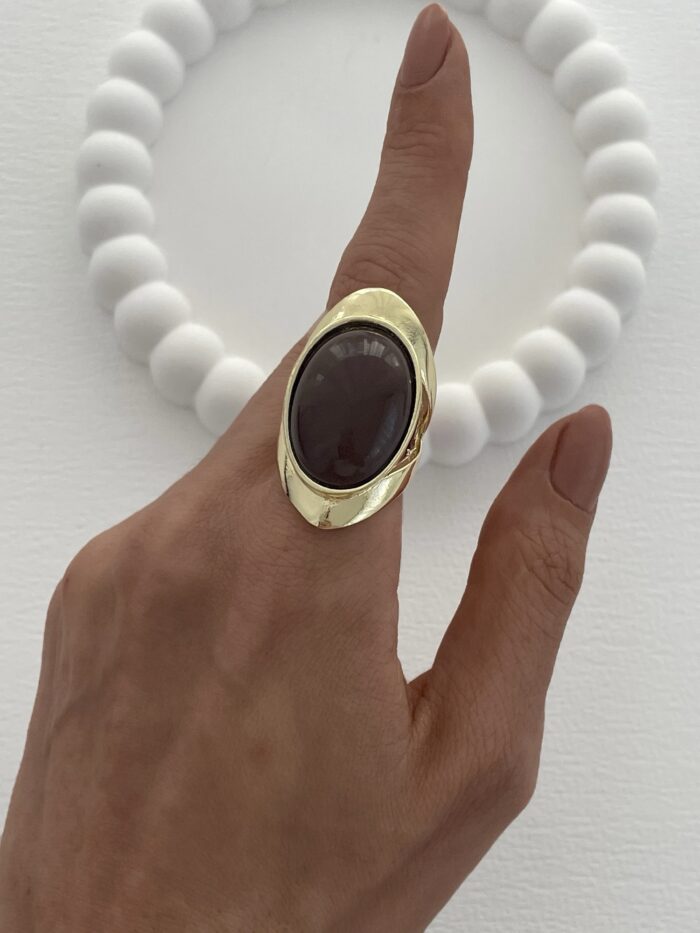 Özel Seri Kahverengi Mineli Oval Tasarım Gold Yüzük 18mm