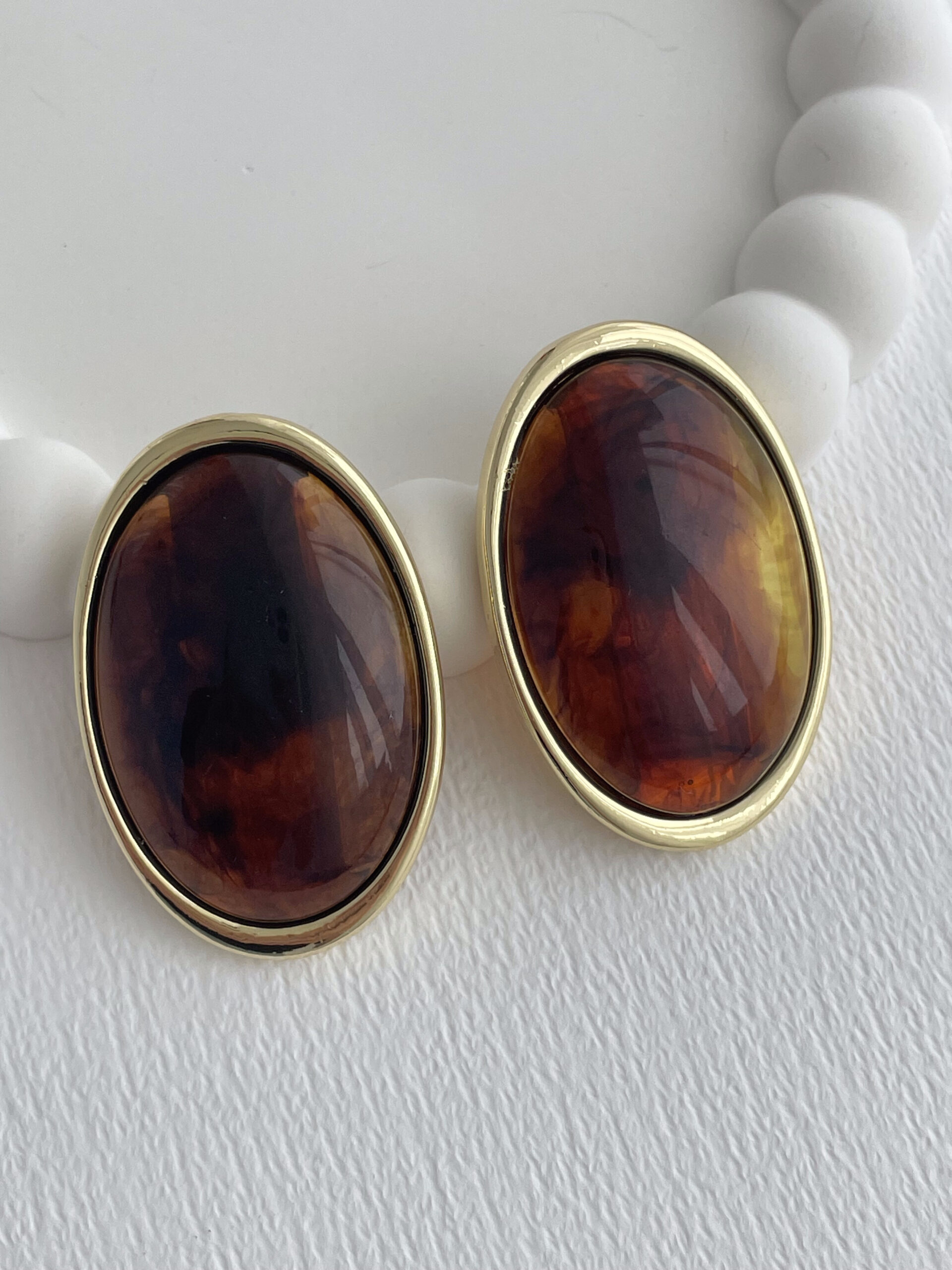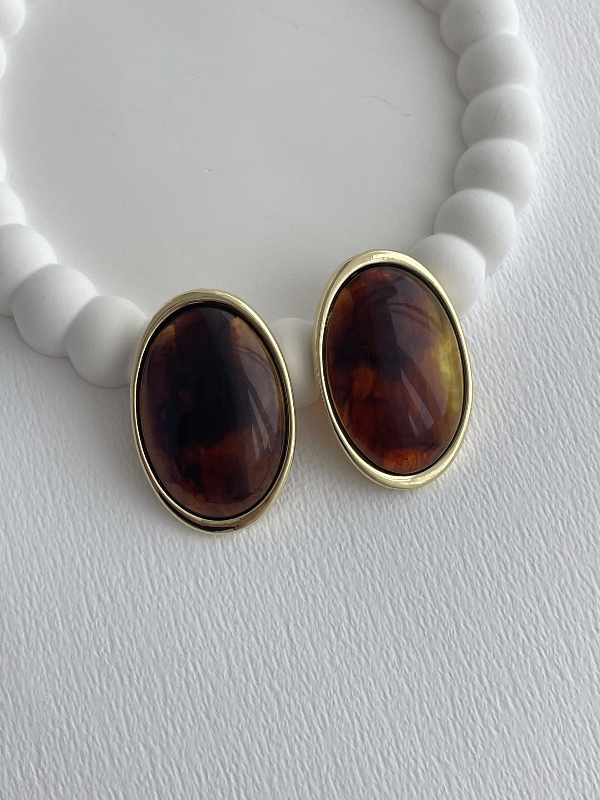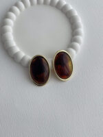 Özel Seri Kahverengi Mineli Yuvarlak Tasarım Gold Küpe