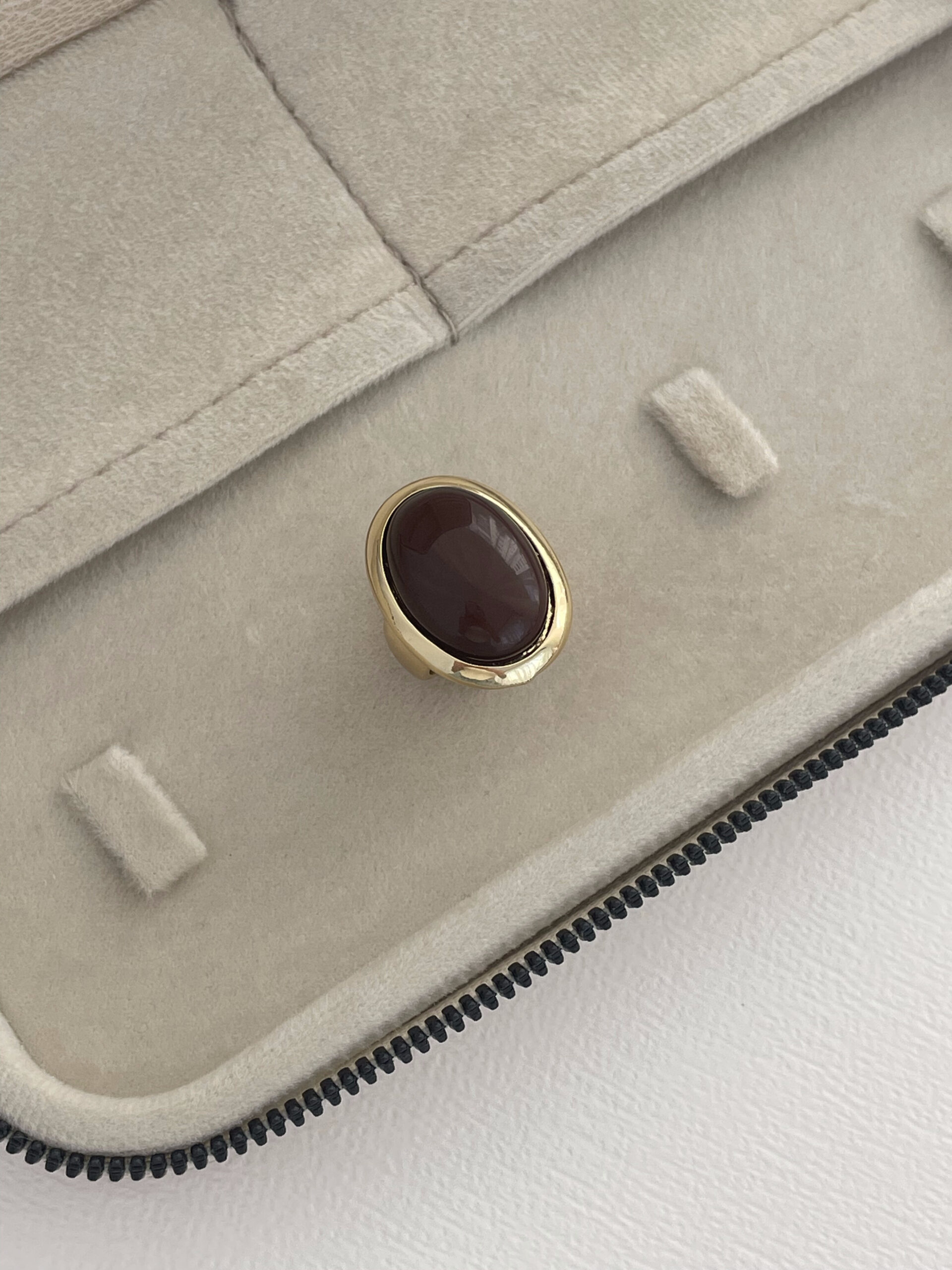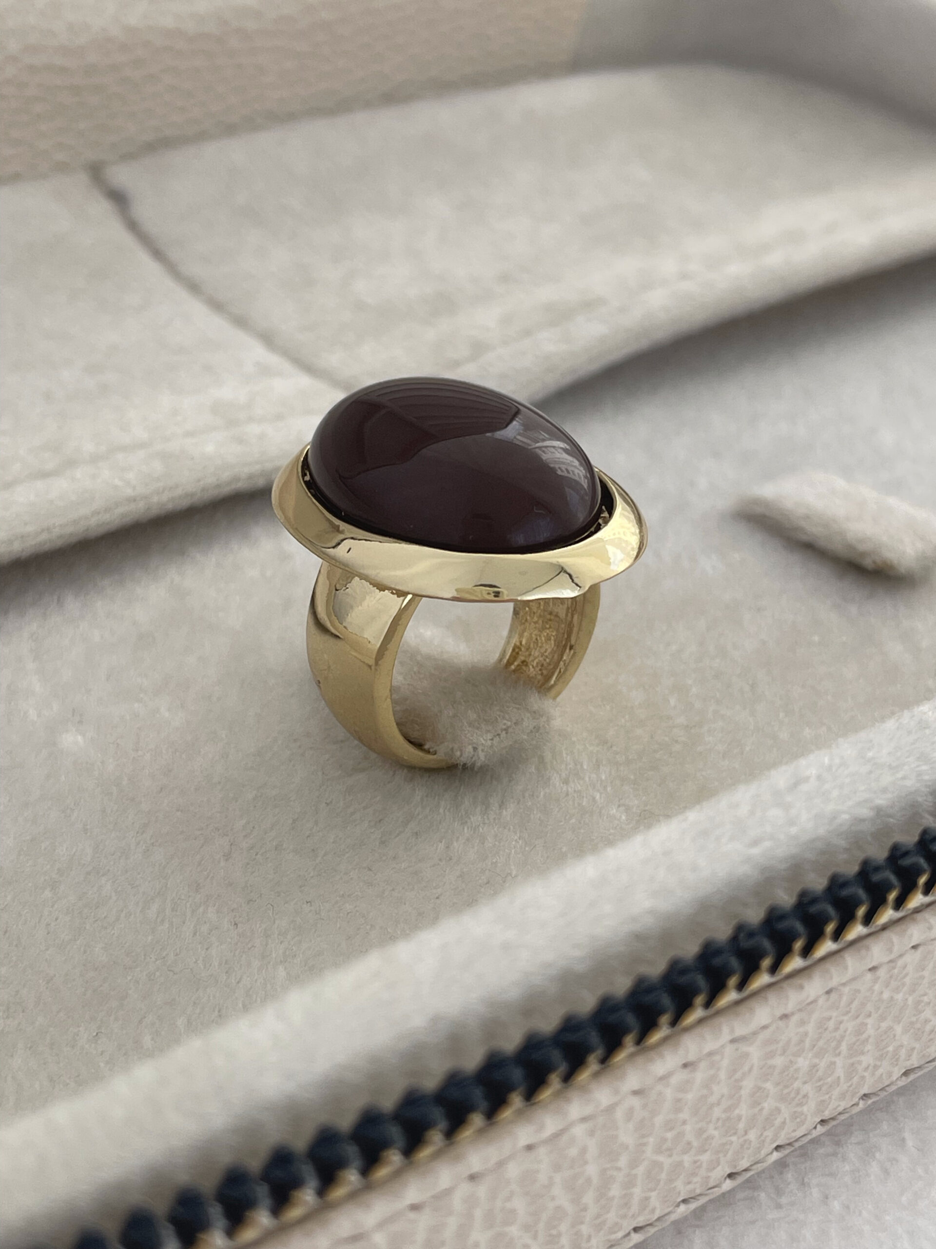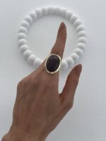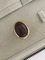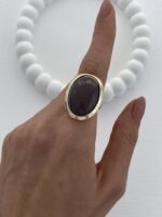 Özel Seri Kahverengi Mineli Yuvarlak Tasarım Gold Yüzük 18mm