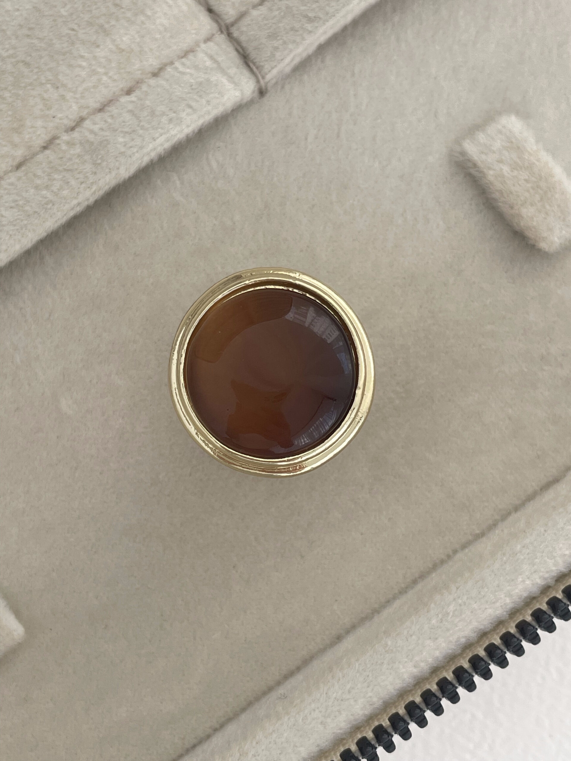 Özel Seri Kahverengi Mineli Yuvarlak Tasarım Gold Yüzük 18mm
