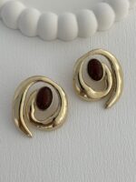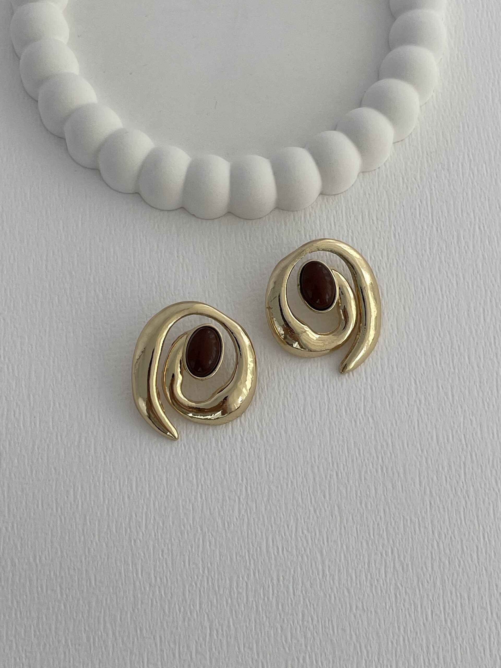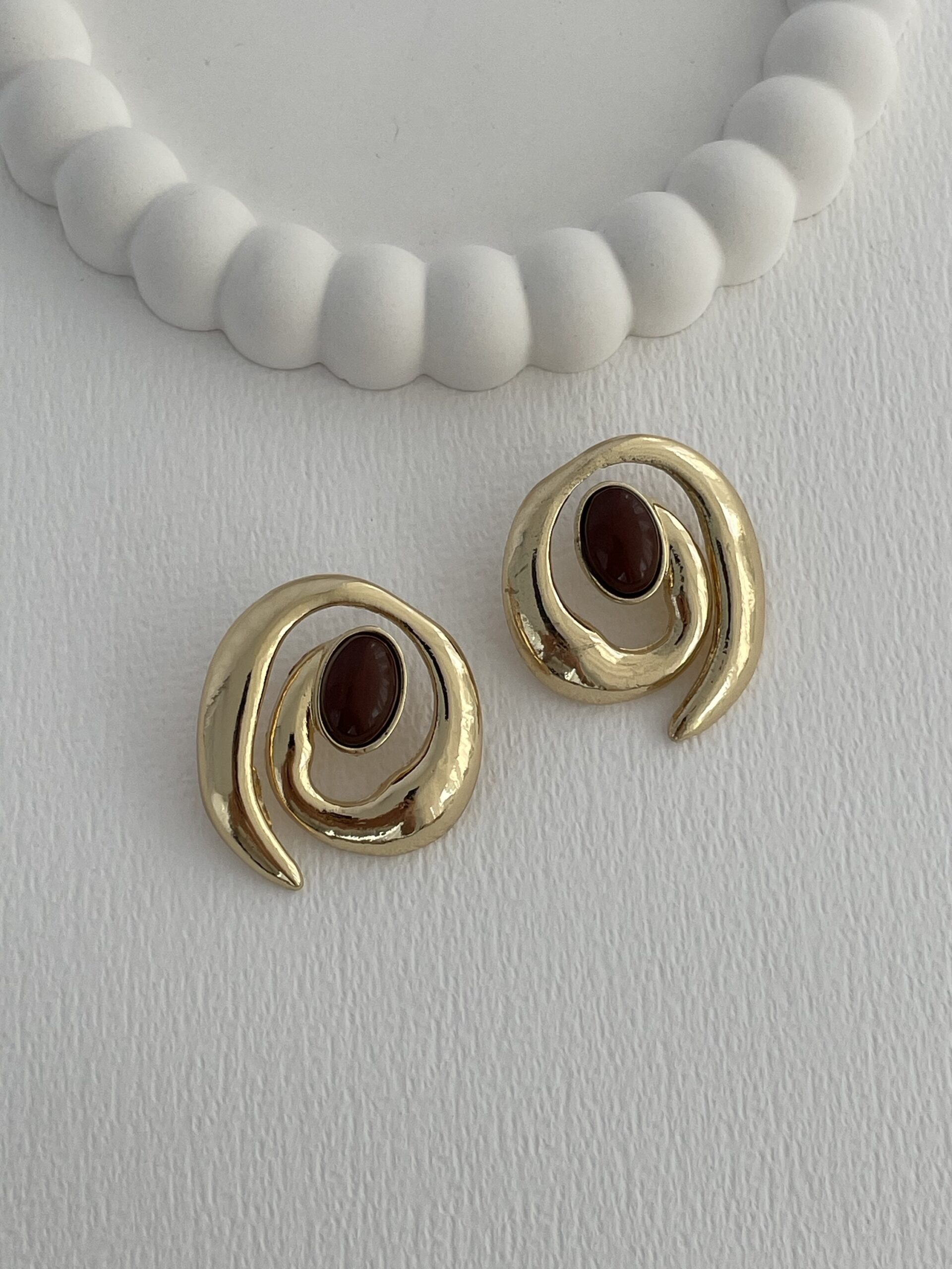 Özel Seri Kahverengi Soyut Spiral Tasarım Gold Küpe