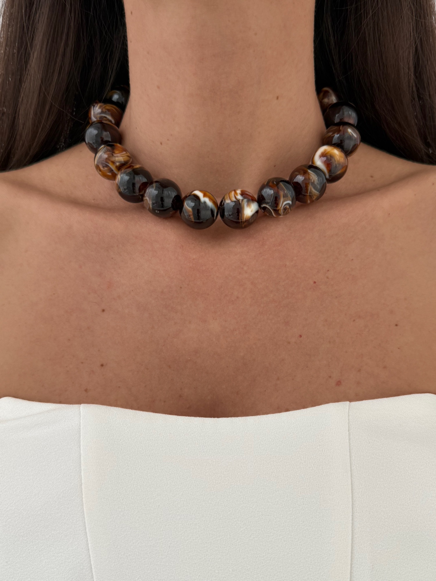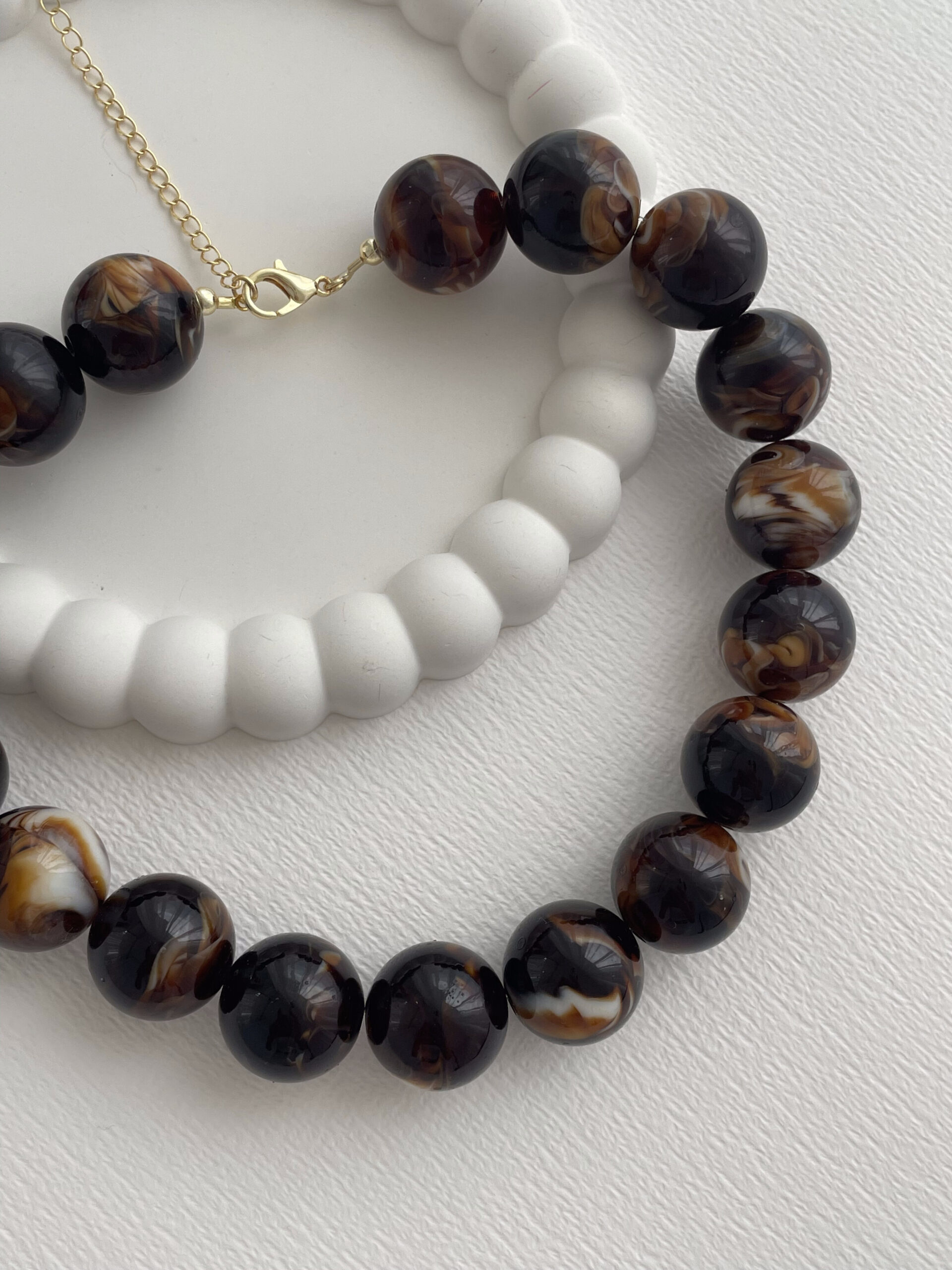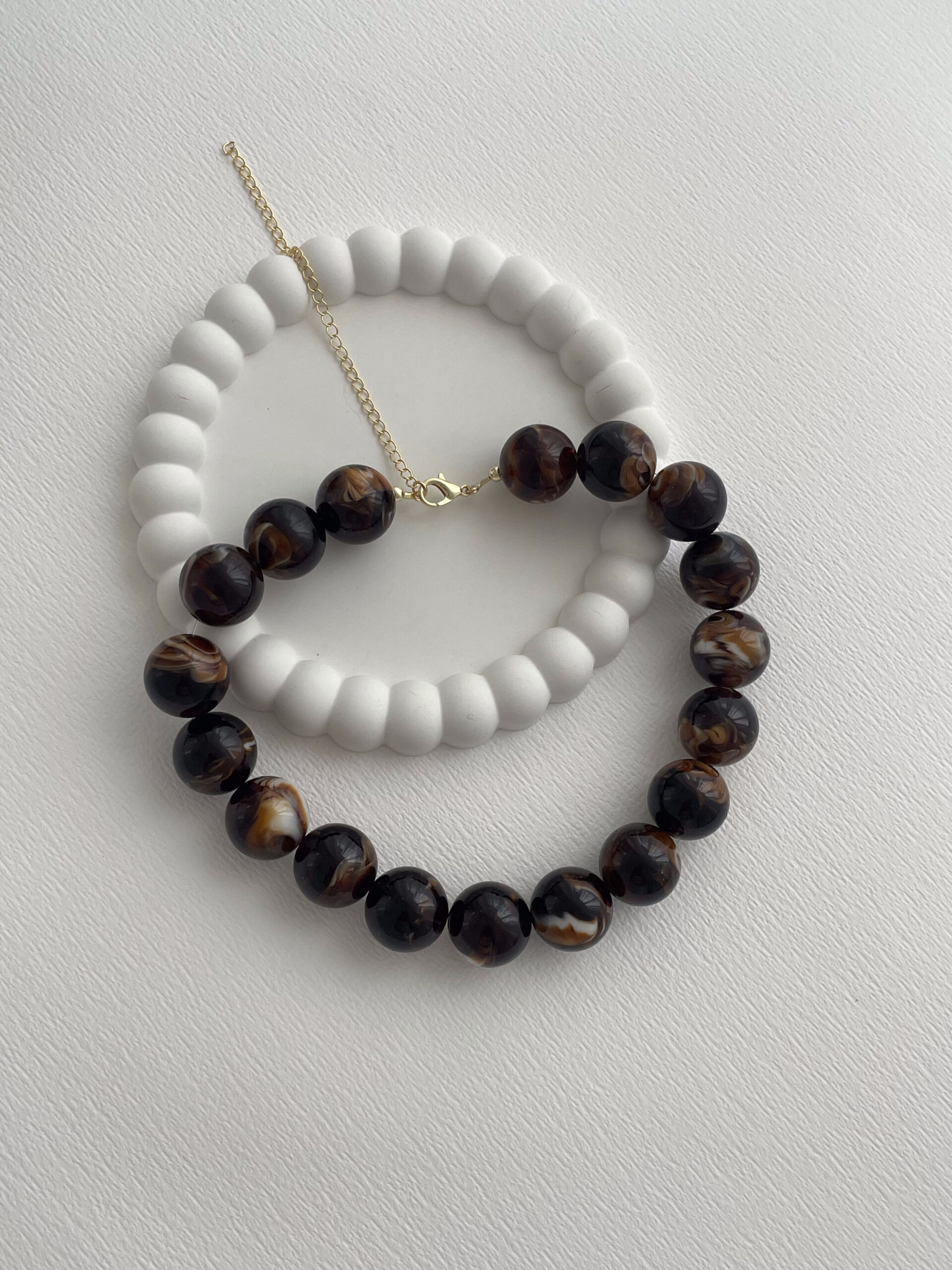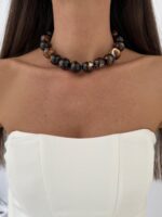 Özel Seri Kahverengi Top Tasarım Gold Choker Kolye