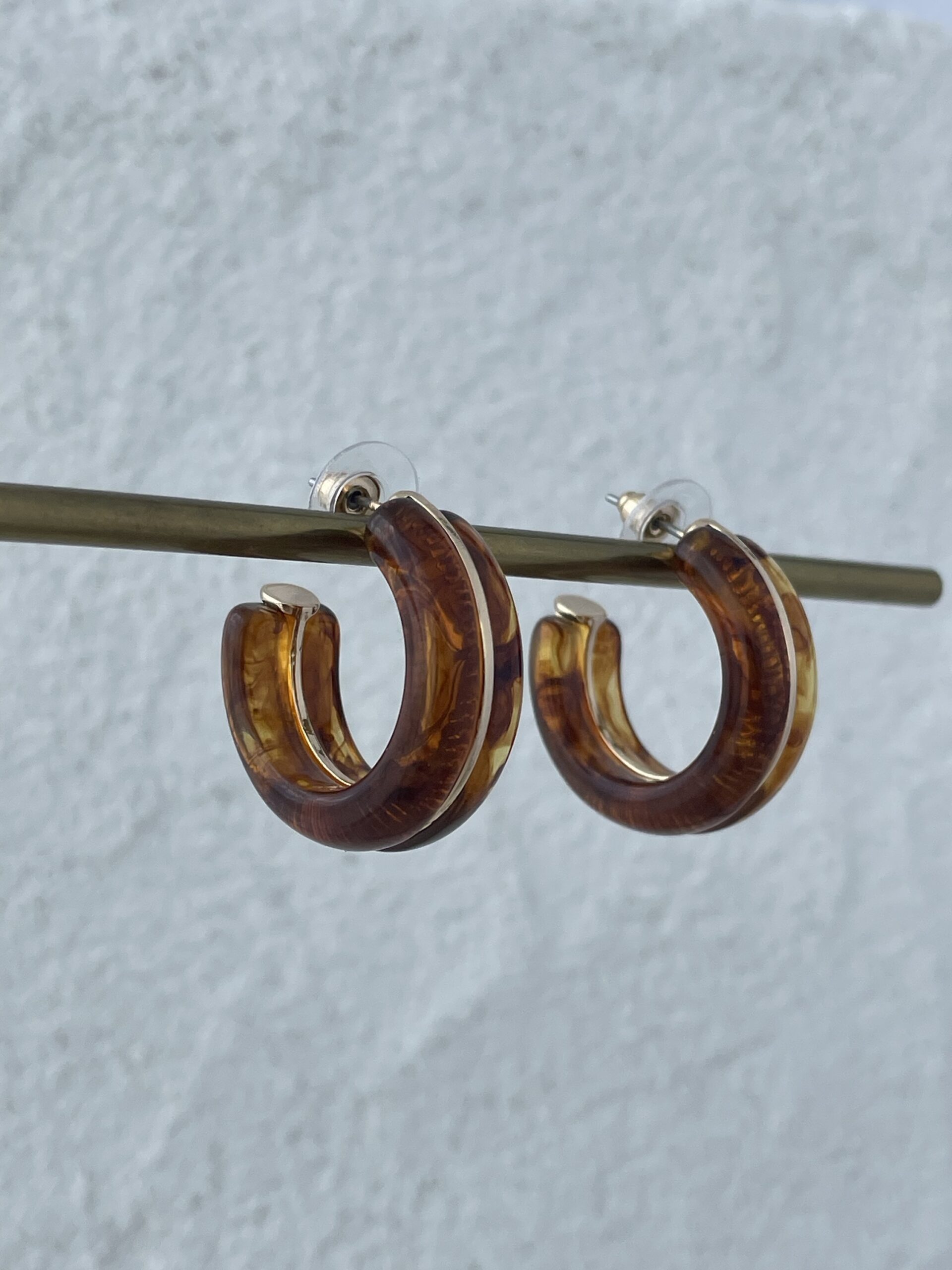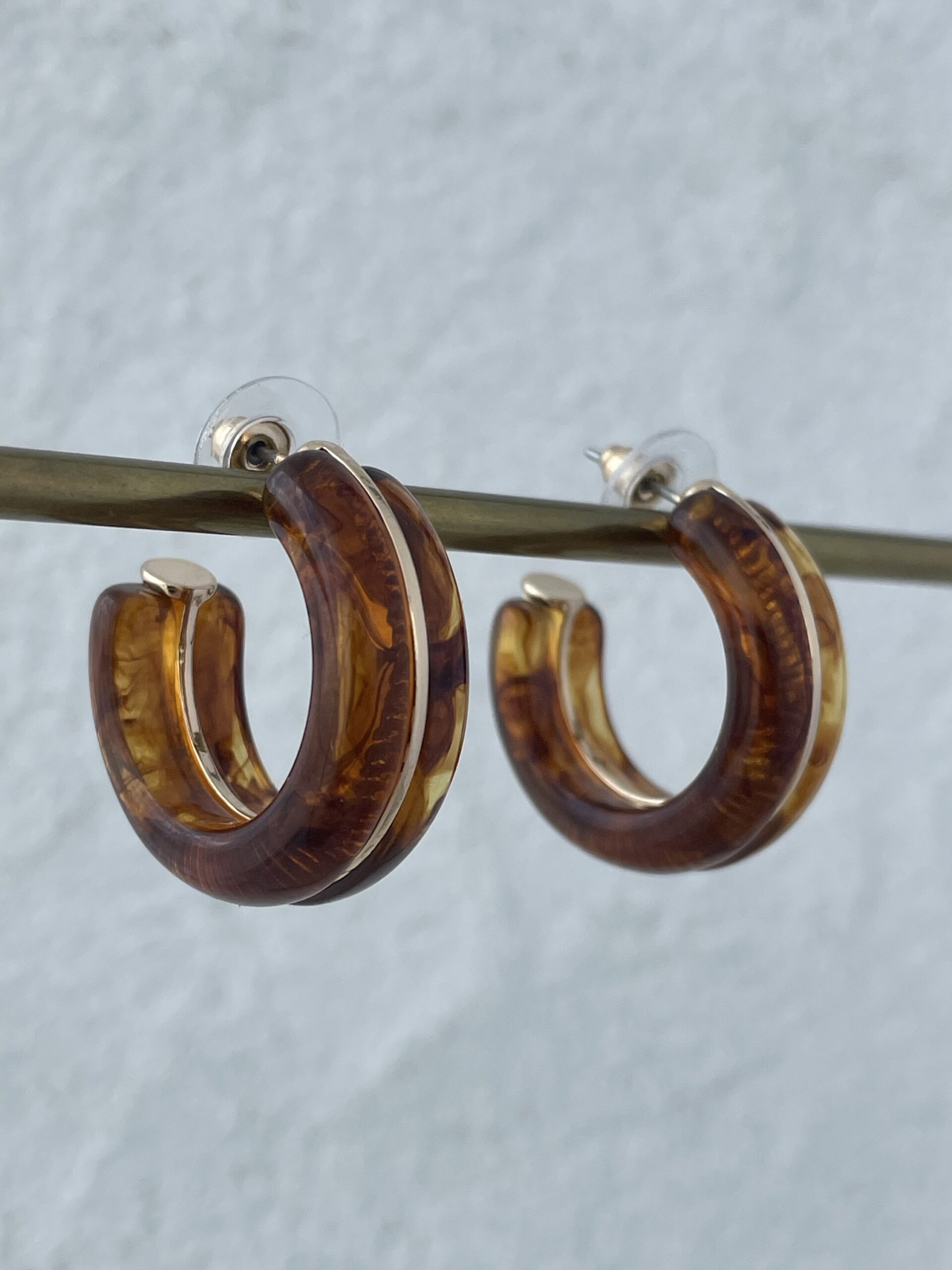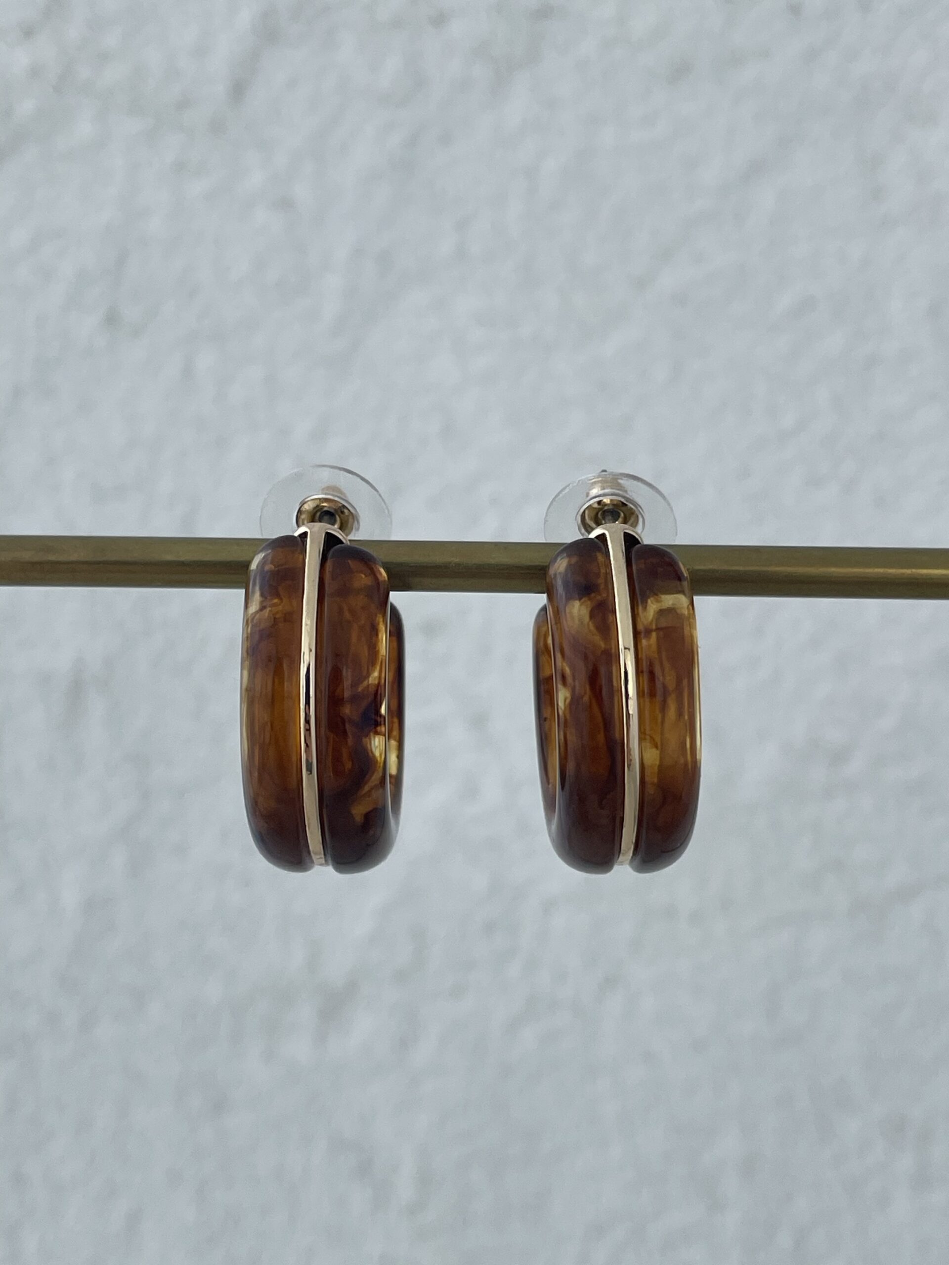 Özel Seri Kalın Halka Tasarım Kahve Kemik Gold Küpe