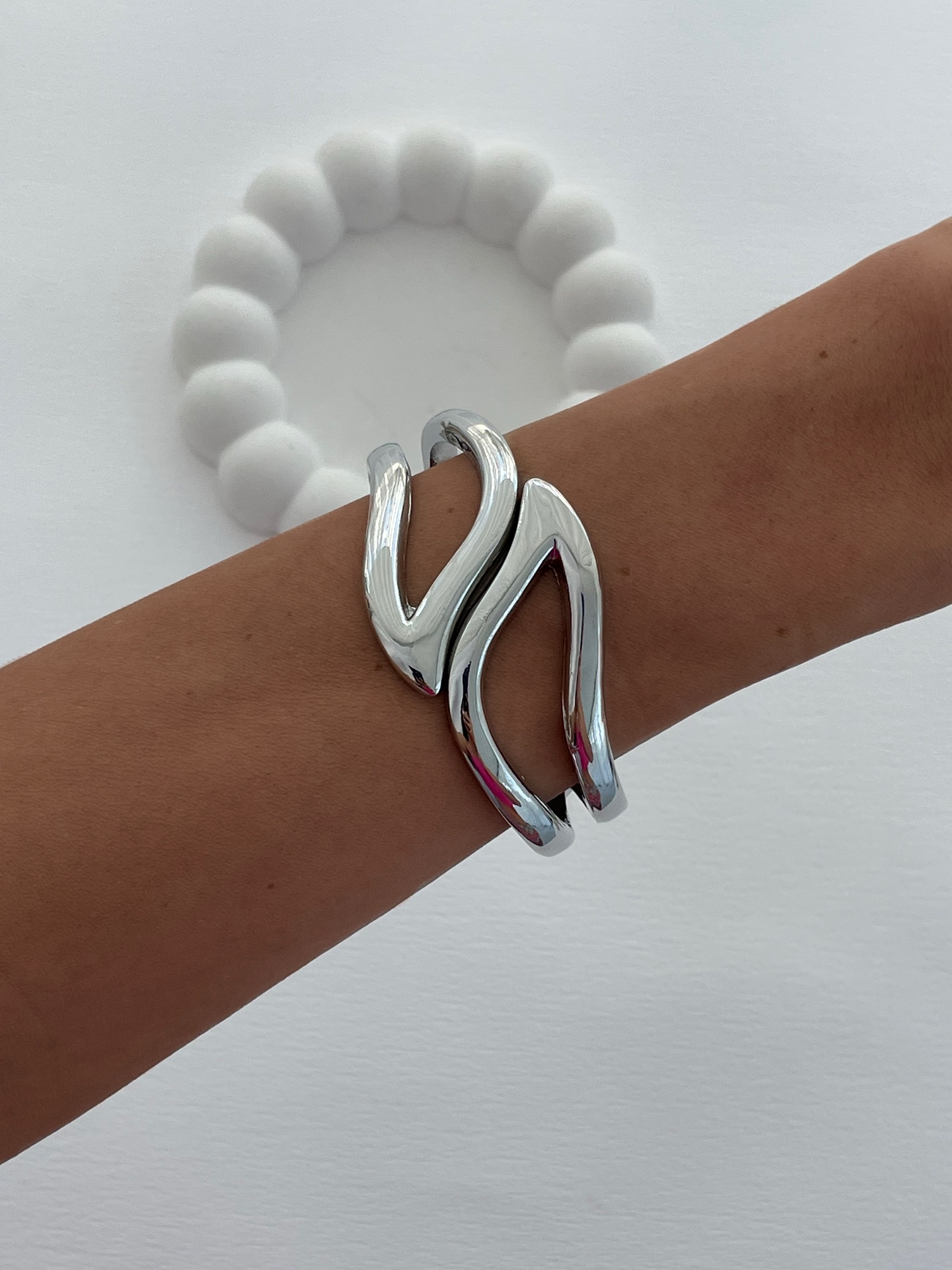 Özel Seri Kalın Kıvrım Tasarım Gümüş Kelepçe Bileklik