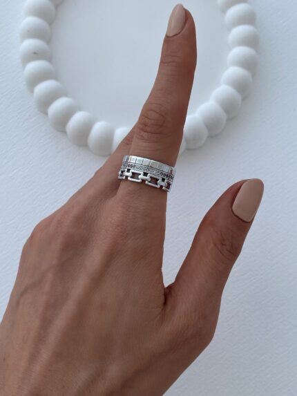 Özel Seri Kalın Oval Tasarım Ayarlanabilir Gümüş Şövalye Yüzük