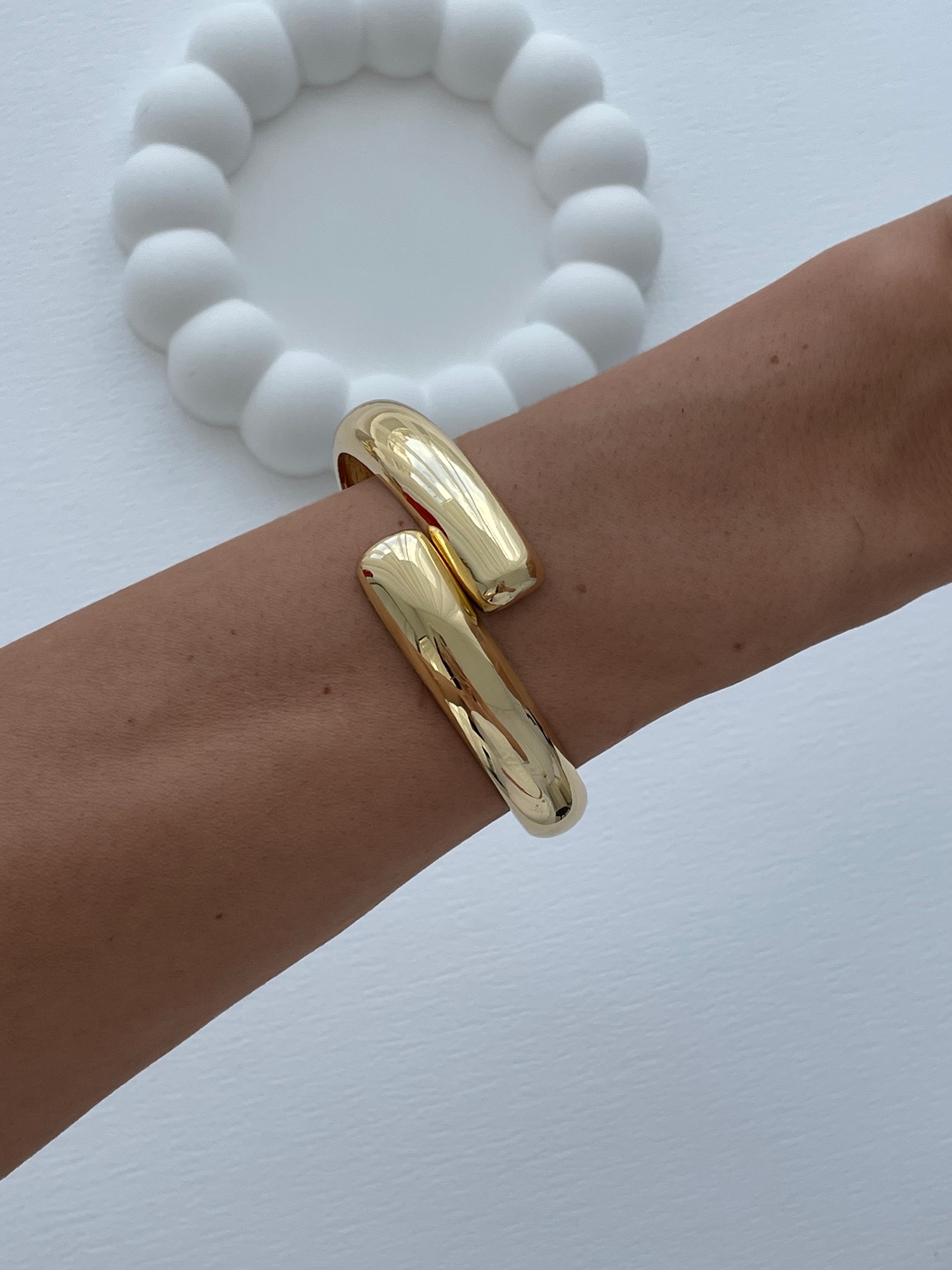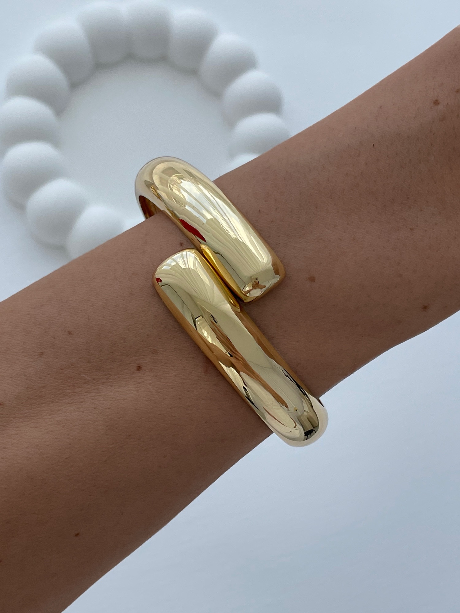 Özel Seri Kalın Sarmal Tasarım Gold Kelepçe Bileklik