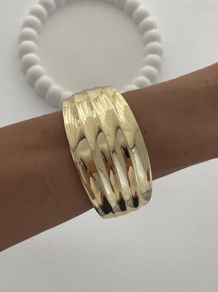Özel Seri Kalın Tırtık Tasarım Gold Kelepçe Bileklik